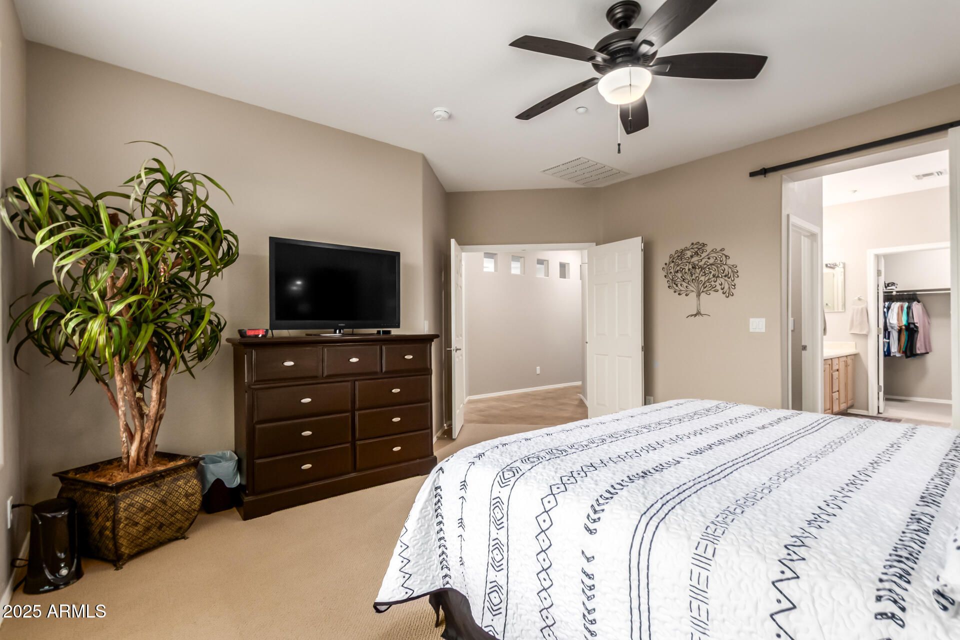 Welcome Home!!! This gorgeous 3 bedroom 2 bath home at the desirable guard gated community in Anthem is in a fantastic location. Close to restaurants, schools, parks, golf courses , stunning mountain views & easy access to the I-17 Freeway. You'll love the layout of this home. As soon as you walk into this home, you can see the pride of ownership with all that has been done. Your kitchen offers stainless steel appliances, granite counter tops, a breakfast bar, a pantry & plenty of cabinetry for storage & organization. Your spacious master suite offers a plethora of natural light, a barn door into the master bathroom, a dual vanity, a walk in closet, along with a walk in shower & soaking tub to enjoy. This gated community home also offers upgraded ceiling fans & lighting, a two car garage with a workbench & cabinets for extra organization, as well as a low maintenance backyard that offers a covered patio, extended pavers, artificial grass, a built in gas bbq & fire pit to utilize. Your community offers tennis & pickleball courts, golfing at Anthem Country Club, a clubhouse & community pool, a community center, multiple parks to enjoy, the Daisy Mountain Railroad for the little ones, as well as great trails to take advantage of & fabulous mountain views. This gem in the desert is a Great Buy & a Must See!!! **Furniture is available on a separate bill of sale.