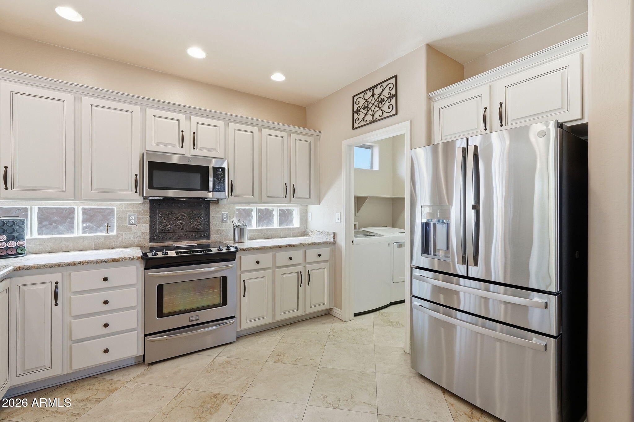 - Dryer, Washer, Water Softener Owned, Reverse Osmosis, Refrigerator, Built-in Microwave, Dishwasher, Disposal, Electric Range