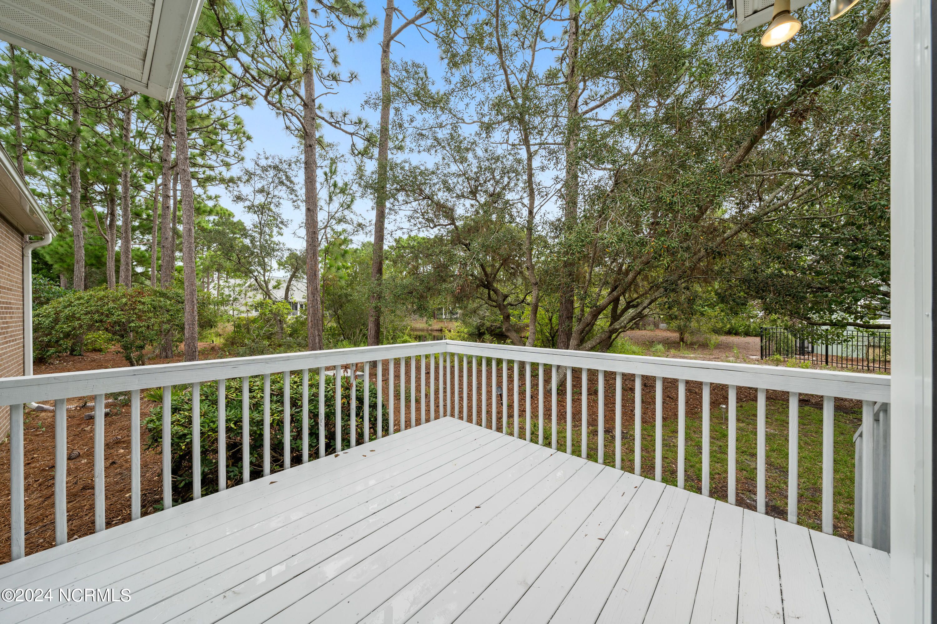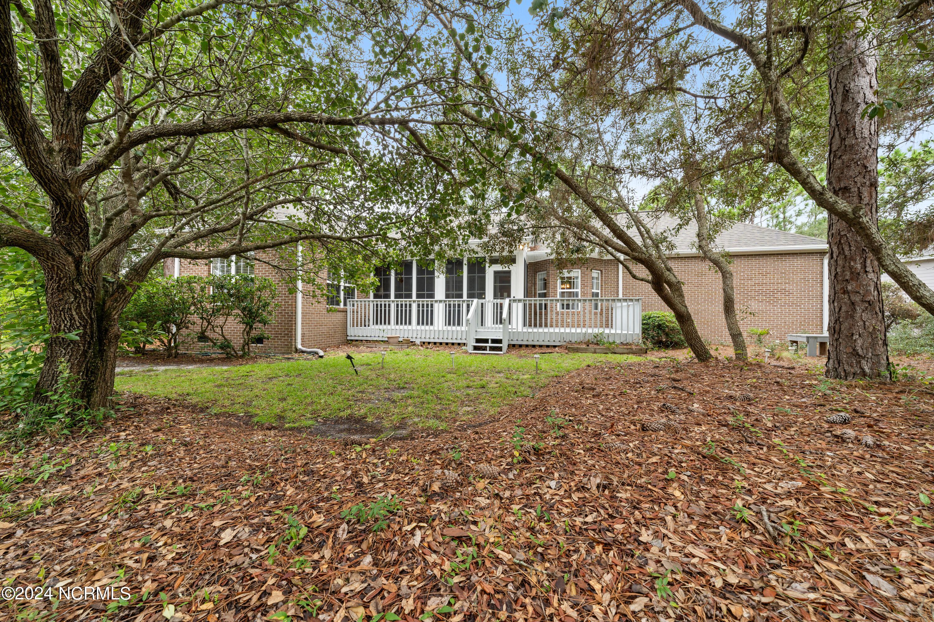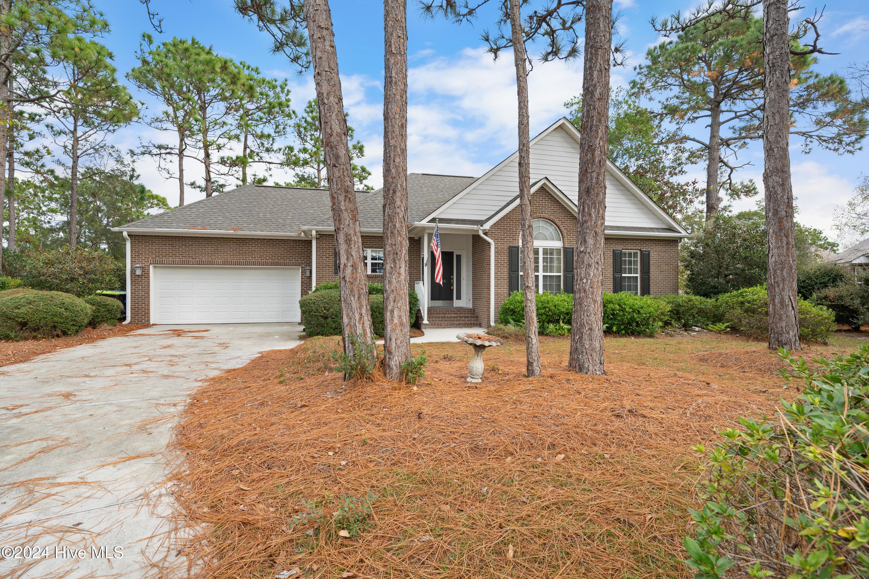 This well-maintained home feature a new roof in 2020 and new HVAC in 2019. Welcome to this spacious single-story all brick home, offering an open concept layout that connects great room, dinning, and kitchen area in an inviting spacious design. Standing at 1744 heated sq. ft. this home features 3 bedrooms, 2-bathrooms, and is perfect for casual living and entertaining. The home is privately located at the end of a quiet cul-de-sac with the long driveway leading to a charming cottage home. This home borders a nature berm and serene pond adding a picturesque setting for the residence. As you enter, the quaint foyer welcomes you with handsome cherry hardwood floors leading to the main living areas. The great room features a vaulted ceiling and cozy corner electric fireplace, and the dining area is set with a bay window overlooking the backyard. The sizable kitchen has been updated with stainless steel appliances, a tiled backsplash, and plenty of cabinet storage. A sliding glass door leads to a heated/cooled three season sunroom offering a relaxing settling to take in a sunny day or gaze onto nature and the pond. This versatile room can easily be converted into a screened porch by sliding the 3 season panels up or down. For the outdoor enthusiast enjoy the mild Carolina weather from the sizable back deck perfect for relaxing or grilling. The master bedroom is a spacious 12.5 X 14.6 ft. space and features the same hardwood flooring as the main living area with a large walk-in closet with built-in shelving. The recently updated en-suite bathroom showcases an attractive tiled walk-in shower with a bench, niche storage, and Barn door shower door, dual vanity sinks, and a quality tiled floor. Two guest bedrooms continue the home's elegant theme with hardwood floors and share a new renovated full bathroom that upholds the residence's comfort and style. Additionally, the garage is neatly organized with shelving for storage and an attic above the garage provides ample space