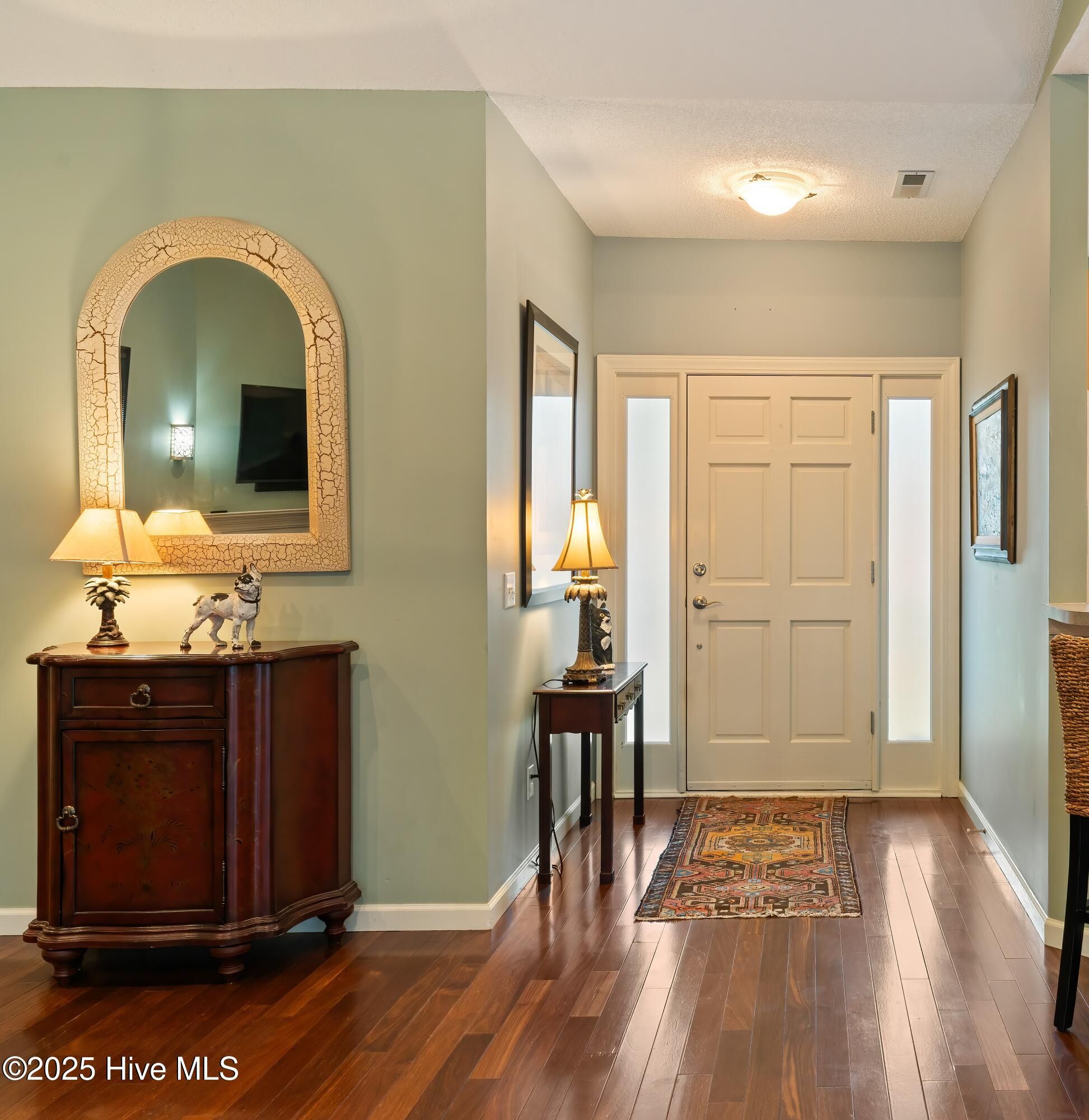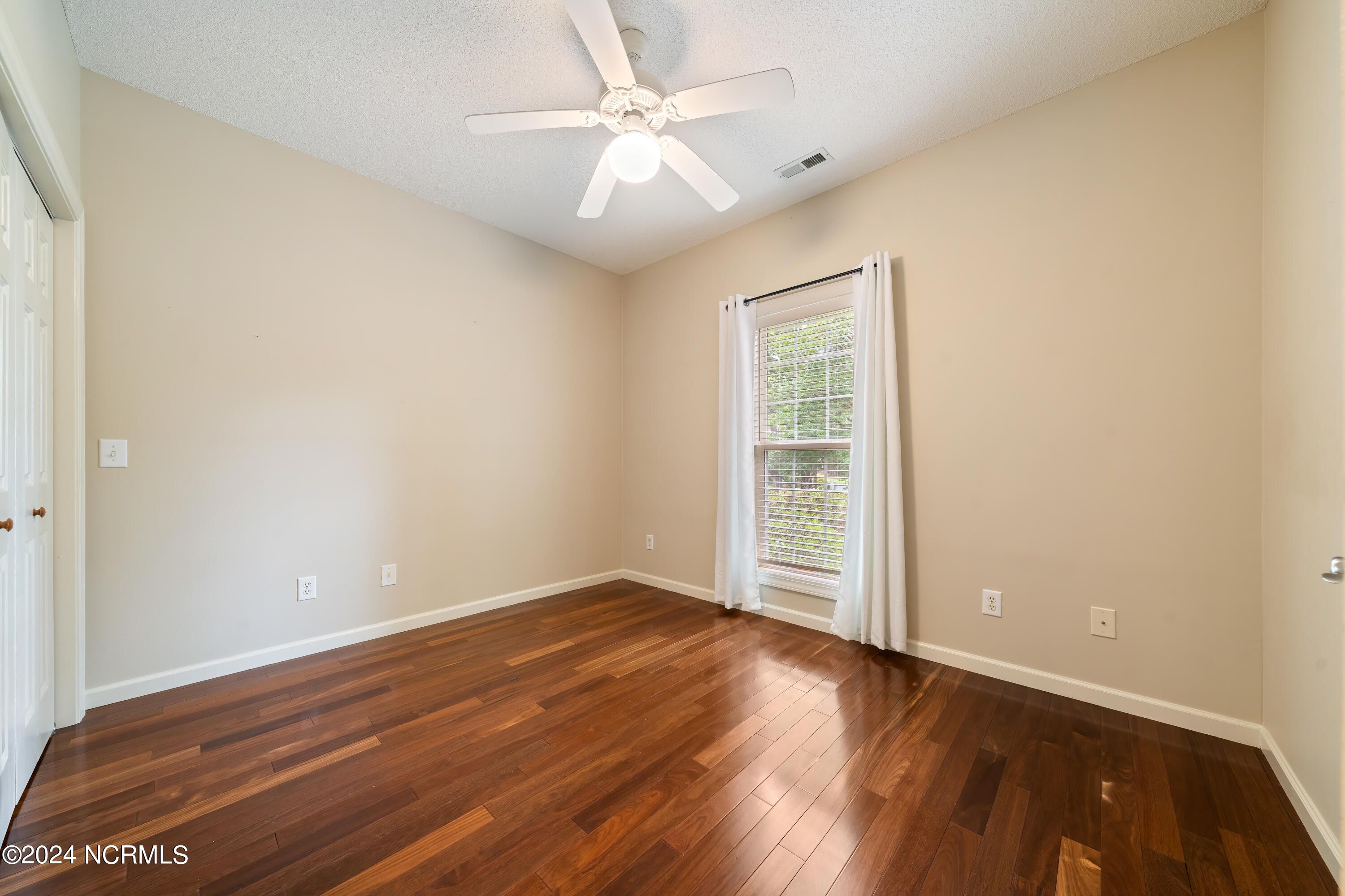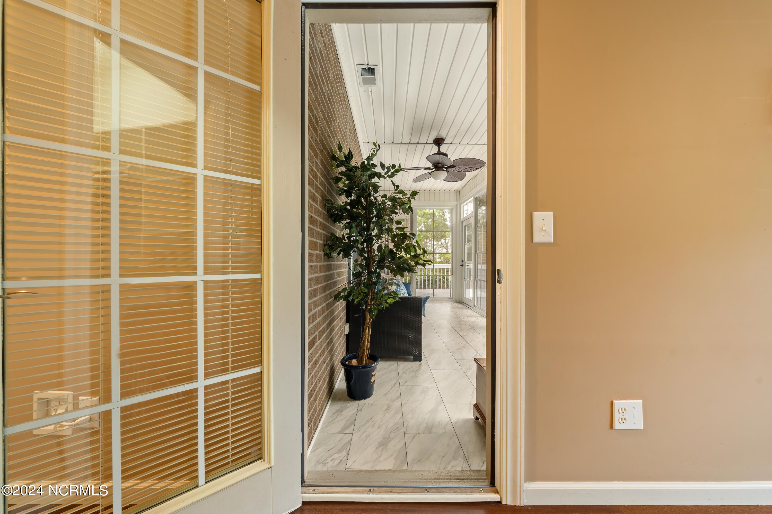 This well-maintained home feature a new roof in 2020 and new HVAC in 2019. Welcome to this spacious single-story all brick home, offering an open concept layout that connects great room, dinning, and kitchen area in an inviting spacious design. Standing at 1744 heated sq. ft. this home features 3 bedrooms, 2-bathrooms, and is perfect for casual living and entertaining. The home is privately located at the end of a quiet cul-de-sac with the long driveway leading to a charming cottage home. This home borders a nature berm and serene pond adding a picturesque setting for the residence. As you enter, the quaint foyer welcomes you with handsome cherry hardwood floors leading to the main living areas. The great room features a vaulted ceiling and cozy corner electric fireplace, and the dining area is set with a bay window overlooking the backyard. The sizable kitchen has been updated with stainless steel appliances, a tiled backsplash, and plenty of cabinet storage. A sliding glass door leads to a heated/cooled three season sunroom offering a relaxing settling to take in a sunny day or gaze onto nature and the pond. This versatile room can easily be converted into a screened porch by sliding the 3 season panels up or down. For the outdoor enthusiast enjoy the mild Carolina weather from the sizable back deck perfect for relaxing or grilling. The master bedroom is a spacious 12.5 X 14.6 ft. space and features the same hardwood flooring as the main living area with a large walk-in closet with built-in shelving. The recently updated en-suite bathroom showcases an attractive tiled walk-in shower with a bench, niche storage, and Barn door shower door, dual vanity sinks, and a quality tiled floor. Two guest bedrooms continue the home's elegant theme with hardwood floors and share a new renovated full bathroom that upholds the residence's comfort and style. Additionally, the garage is neatly organized with shelving for storage and an attic above the garage provides ample space