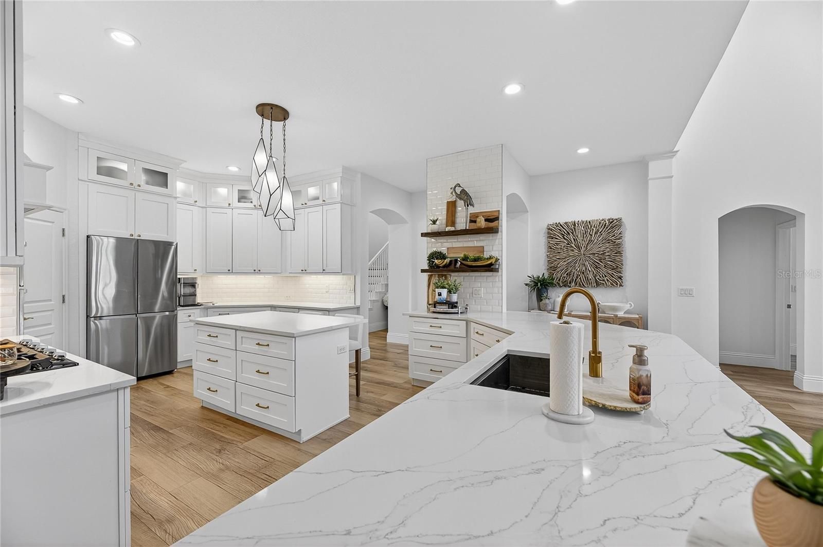 415 Islebay Drive | Apollo Beach, FL 4 Bedrooms | 4 Bathrooms | 3,400+ Sq Ft | 3-Car Garage | Fully Renovated | Private Dock & Boat Lift Wake up to calm water views and end your days cruising directly out to Tampa Bay. Located on a saltwater canal in MiraBay, 415 Islebay Drive offers elevated waterfront living with direct boating access and the added confidence of a home that sits approximately 11 feet above sea level within a community known for its extensive stormwater mitigation system and strong performance during major storms. This four-bedroom, four-bath Sand Dollar floor plan by David Weekley Homes spans more than 3,400 square feet and has been completely renovated to meet today’s expectations for coastal living. From the moment you enter, the home feels light, open, and intentionally designed, with high ceilings, generous room sizes, and a layout that flows naturally from indoor living to the water beyond. The Sand Dollar—originally a Showcase of Homes award-winning floor plan—is known for its flexibility and thoughtful design. Formal office and dining spaces on the main floor allow the home to adapt easily to a variety of lifestyles, while soaring 24-foot ceilings, an oversized family room, and a spacious primary suite create an impressive yet comfortable living environment. Every finish and update has been carefully selected, resulting in a home that feels both refined and inviting. At the center of the home, the oversized kitchen is designed for both everyday living and entertaining. Updates include 42-inch soft-close wood cabinetry, quartz countertops, double ovens, Samsung appliances, premium Moen fixtures, and a pot filler. The kitchen opens seamlessly to the main living area, where a modern tile accent wall, electric fireplace, and custom-fit TV create a relaxed, polished gathering space. The primary suite serves as a true retreat, offering direct access to the outdoor living area and a fully redesigned spa-style bath. Porcelain tile floors and walls, a freestanding soaking tub, dual vanities with quartz countertops, soft-close cabinetry, and a custom walk-in closet create a space that feels calm, functional, and thoughtfully finished. Outdoor living is a defining feature of this home. The backyard offers ample room to add a pool and design a personalized waterfront oasis, while the private dock with a 10,000-lb boat lift provides quick and easy access to Tampa Bay for boating, fishing, and waterfront dining—without trailering or tidal concerns. Additional improvements include fresh interior, exterior, and ceiling paint; updated flooring throughout; designer lighting and hardware; LED ceiling lighting; a newer roof; water softener; and a three-car garage. Every update was completed with intention, resulting in a home that is truly move-in ready. MiraBay is a gated, golf-cart-friendly waterfront community offering a 24hr fitness center, clubhouse, resort-style pools, café, tennis and pickleball courts, basketball courts, multiple parks, and community kayaks and paddleboards. Residents enjoy an active lifestyle with access to amenities by foot, bike, or golf cart. Homes in MiraBay that combine elevation, private boating access, and full modern renovation are increasingly rare—and when they come to market, they tend to move quickly. 415 Islebay Drive presents a unique opportunity to secure a waterfront home that requires no updating and delivers the lifestyle today’s buyers are actively seeking.