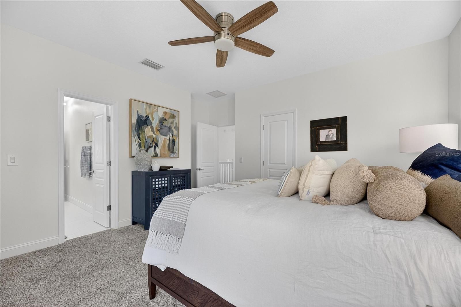 - Built-in Features, Cathedral Ceiling(s), Ceiling Fan(s), Chair Rail, Crown Molding, Eat-in Kitchen, High Ceilings, Kitchen/Family Room Combo, Open Floorplan, Main Level Primary, Solid Surface Counters, Solid-Wood Cabinets, Split Bedrooms, Stone Counters, Thermostat, Tray Ceiling(s), Vaulted Ceiling(s), Walk-In Closet(s), Window Treatments