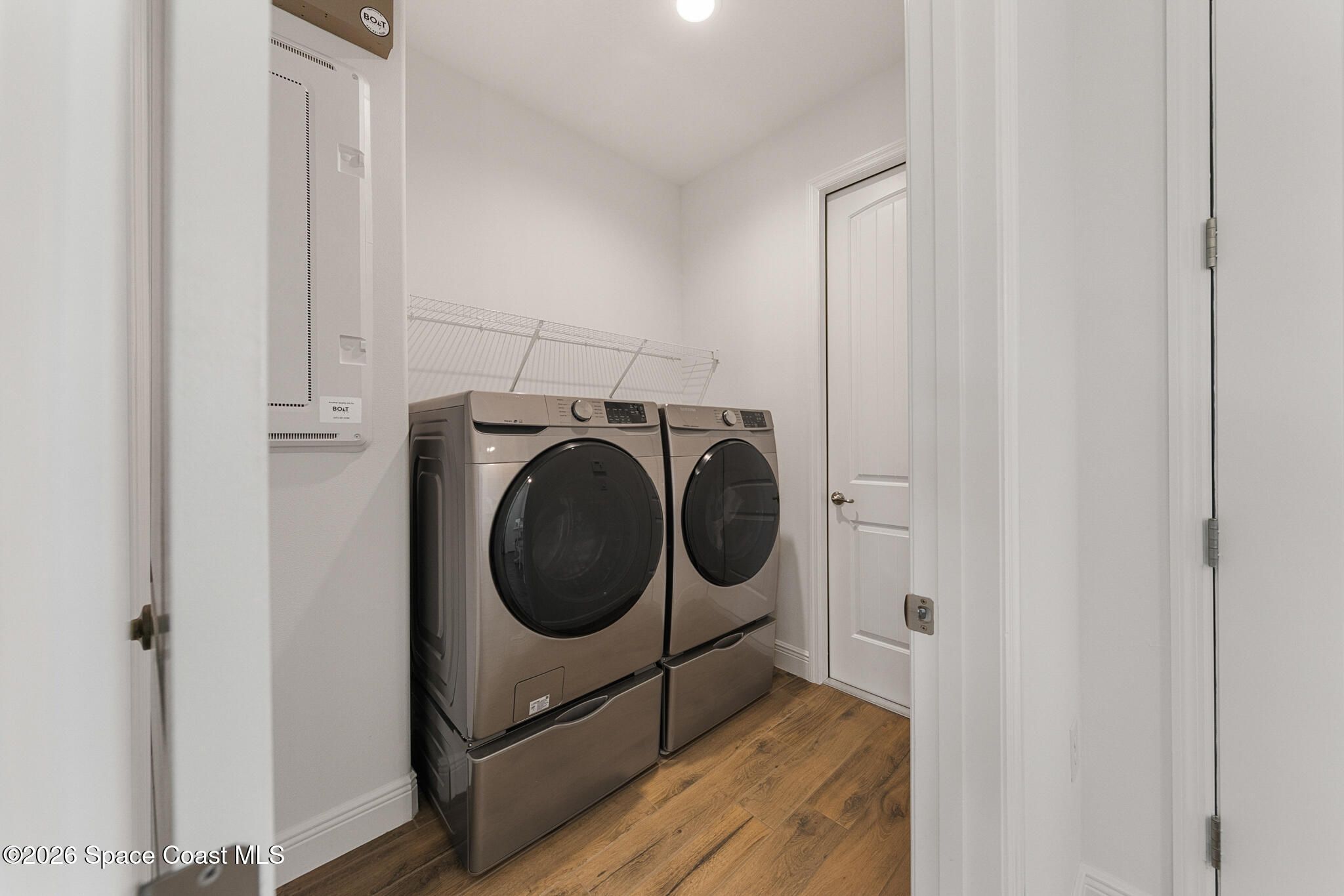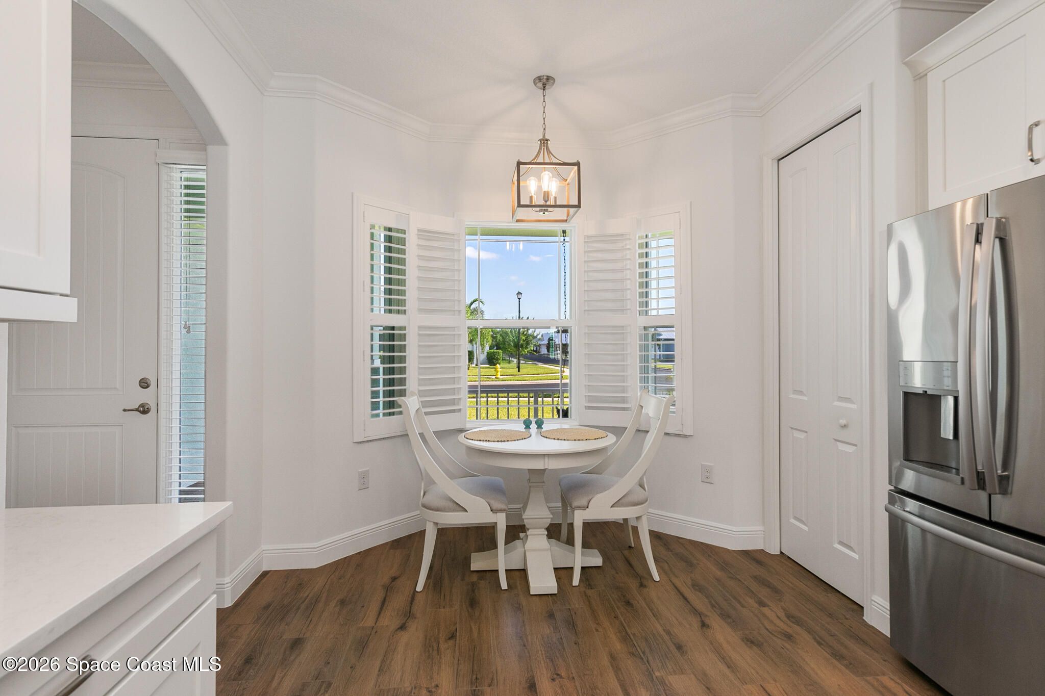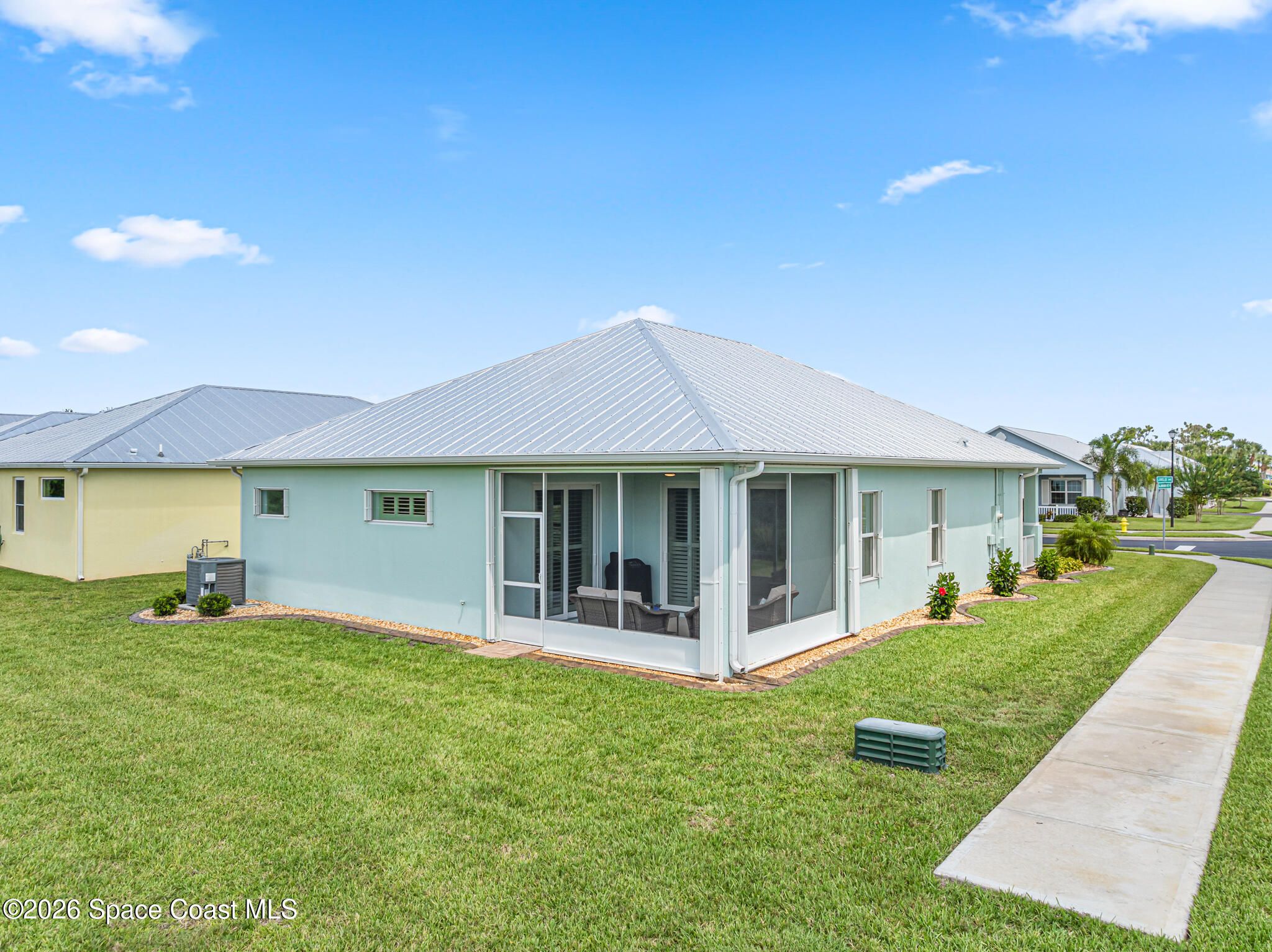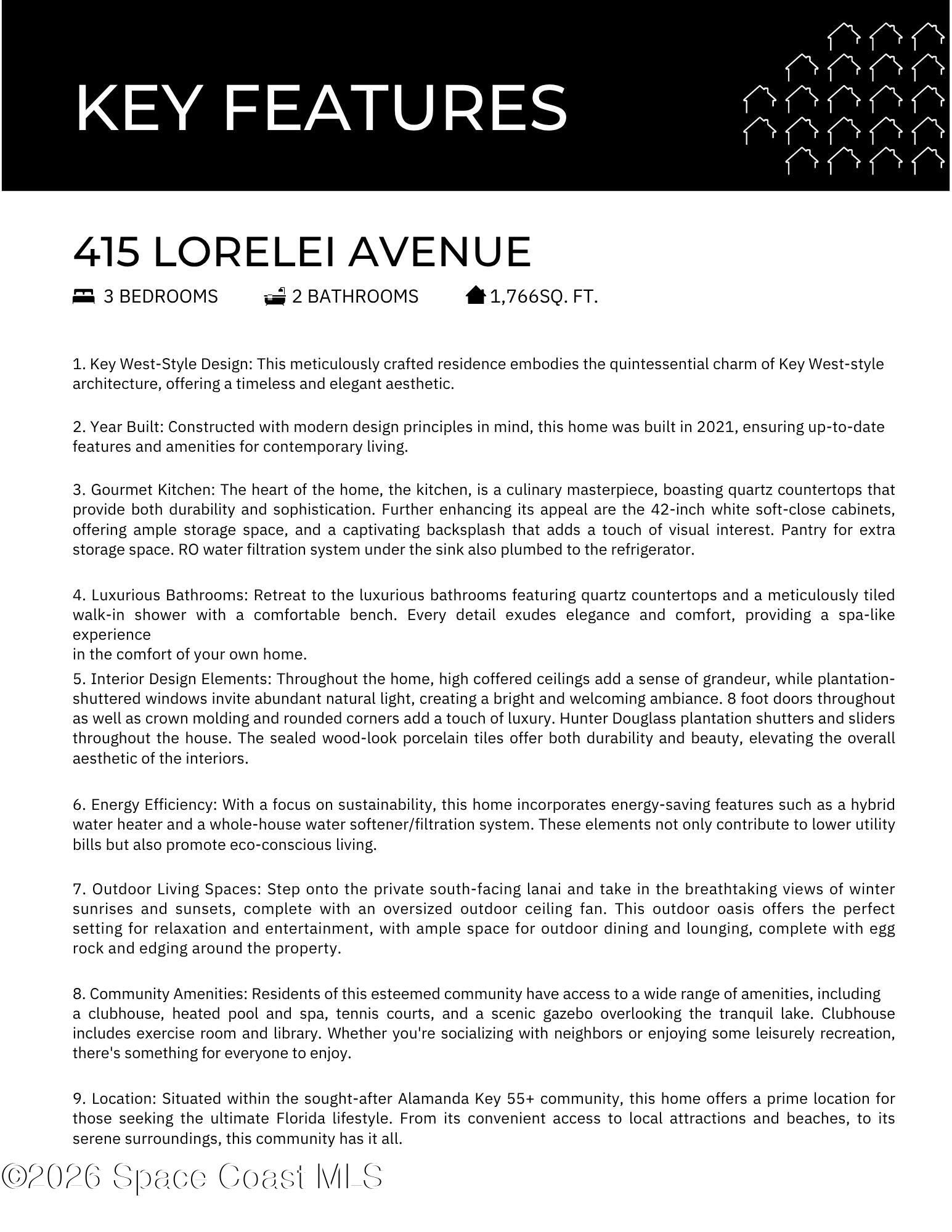 Experience luxury living in this immaculate move in ready, custom built by Lifestyle homes, in the highly sought after active Key West style 55+ community, Alamanda Key. NO CDD! Built in 2021, this smart, energy-efficient home boasts a stunning kitchen with quartz countertops, 42in white soft-close cabinets. The bathrooms feature quartz countertops and a tiled walk-in shower with comfortable built in seat. High coffered ceilings and plantation-shuttered windows flood the home with natural light, while sealed wood-look porcelain tiles add a touch of sophistication. The lockable hurricane shutters add security and peace of mind. Enjoy energy-saving features like the hybrid water heater and whole-house water softener and filtration system with reverse osmosis. Outside, enjoy a wealth of amenities including a clubhouse with spa, gym, library, heated pool, tennis courts, pool table, and lakeside gazebo! This home is the essence of Florida living being less than 10 minutes from the beach.