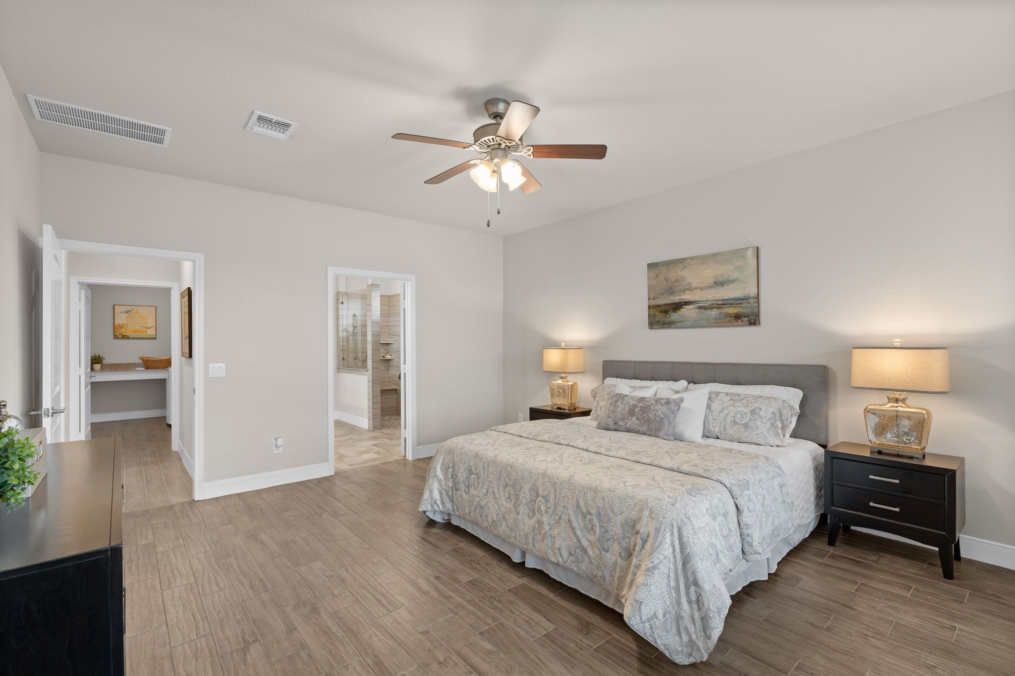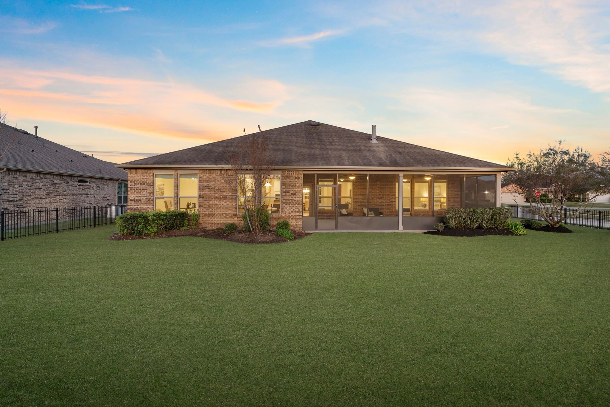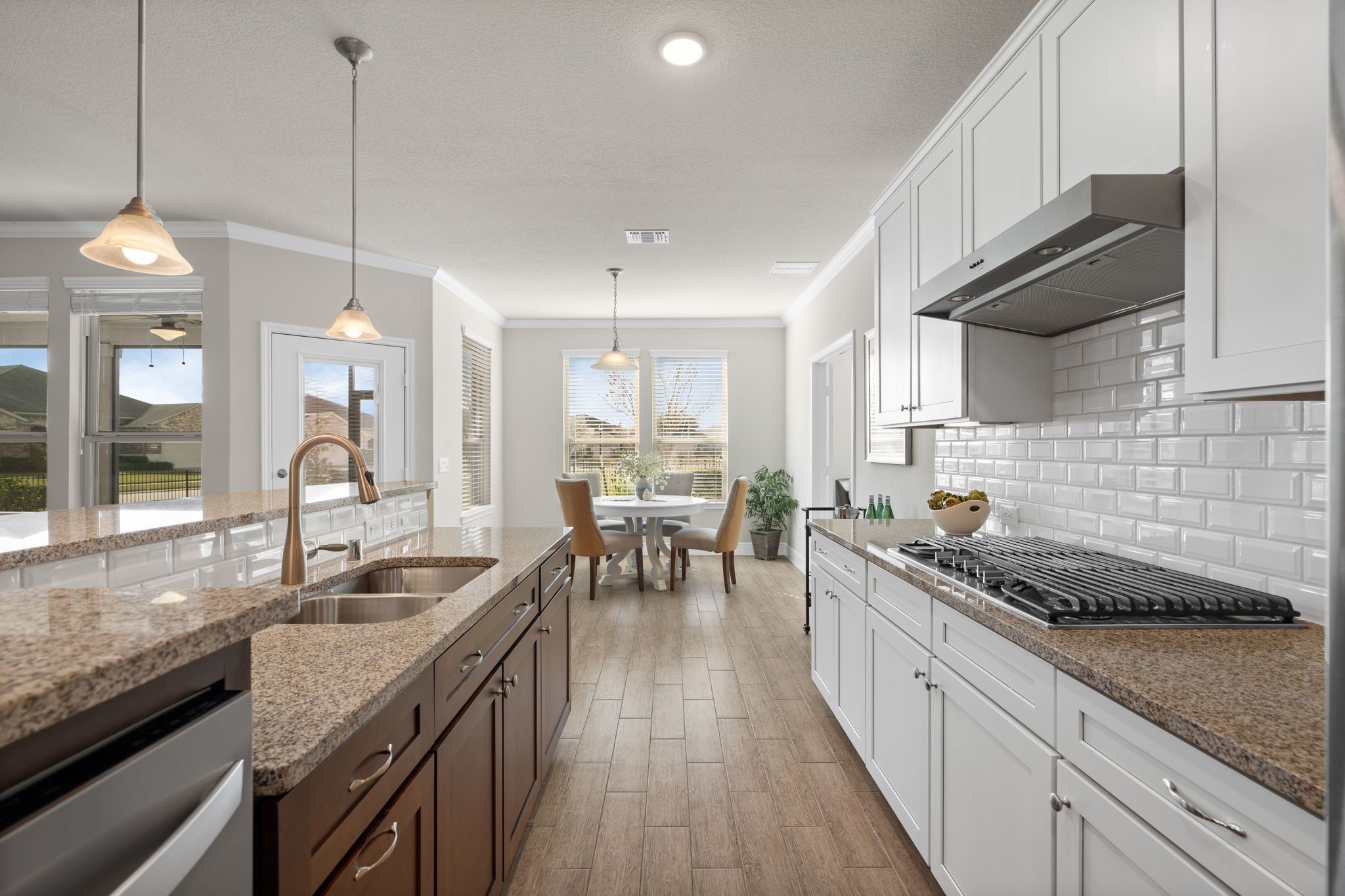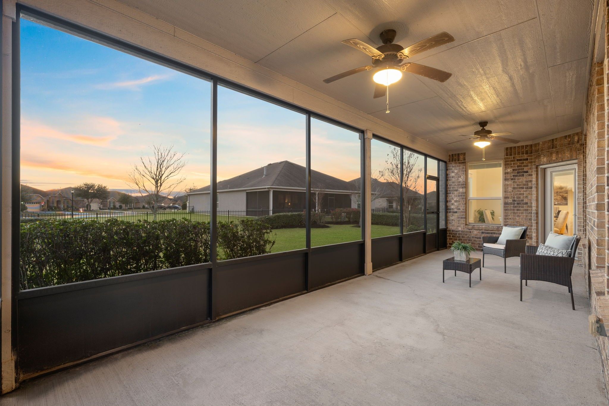 Napa Valley on premium corner lot framed by lush, manicured landscaping creates standout curb appeal. No carpet, ceramic tile throughout. Entry opens to formal dining area ideal for entertaining. Kitchen features upgraded crisp white cabinetry throughout, w/pull-outs, soft close drawers, all appliances convey, seamless flow to living space anchored by corner fireplace. Study w/glistening French doors offers ideal flex space for office. Owner’s suite provides private access through luxury bath w/flush-entry spa shower, dual sinks, pass-through into expansive walk-in closet w/Calif. Closet organized system featuring abundant shelving & soft-close drawers. Guest BRs positioned separately share bath w/dual sinks & tiled tub/shower. Laundry room includes cabinetry plus functional drop zone. 30x8 screened-in patio overlooks tranquil outdoor oasis, perfect for morning coffee. Energy-smart upgrades include Generac generator & tankless water heater providing efficiency, comfort & peace of mind.