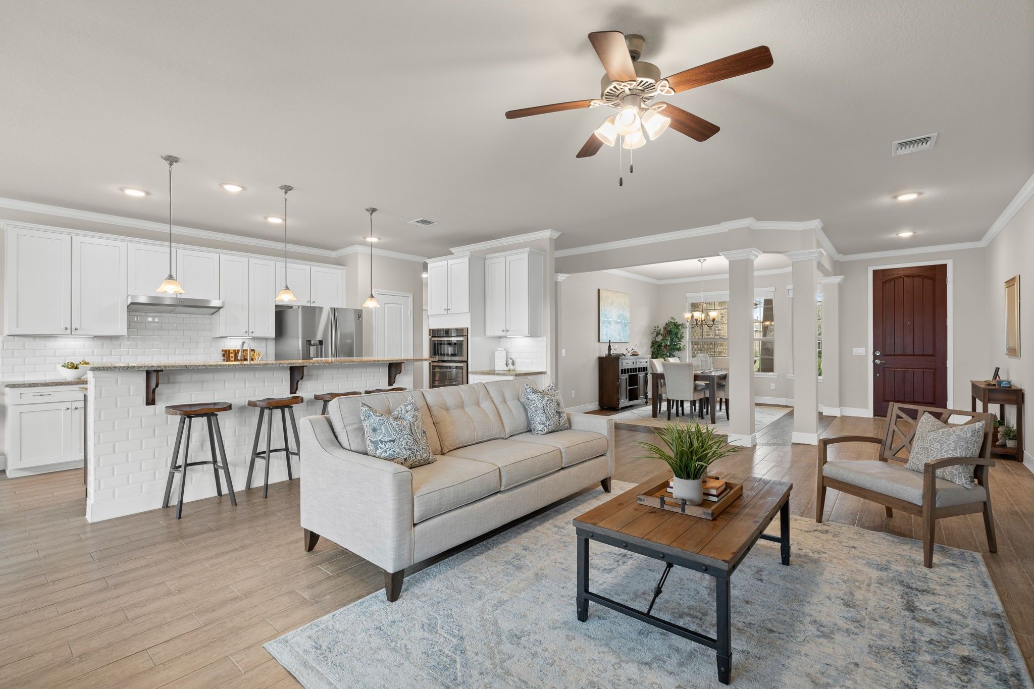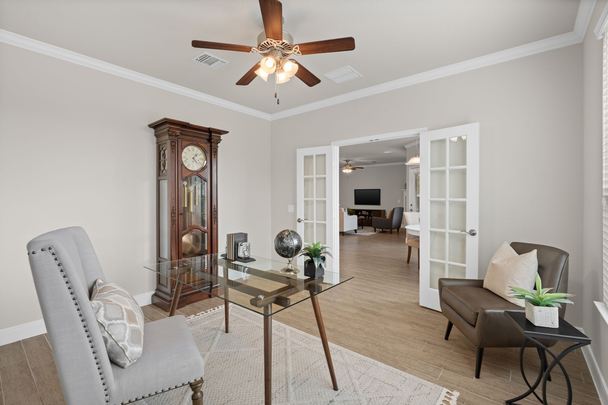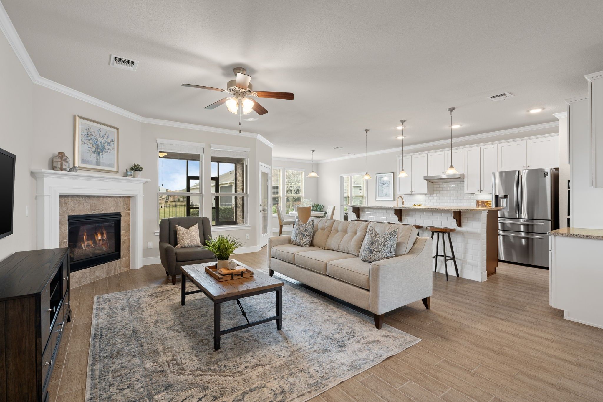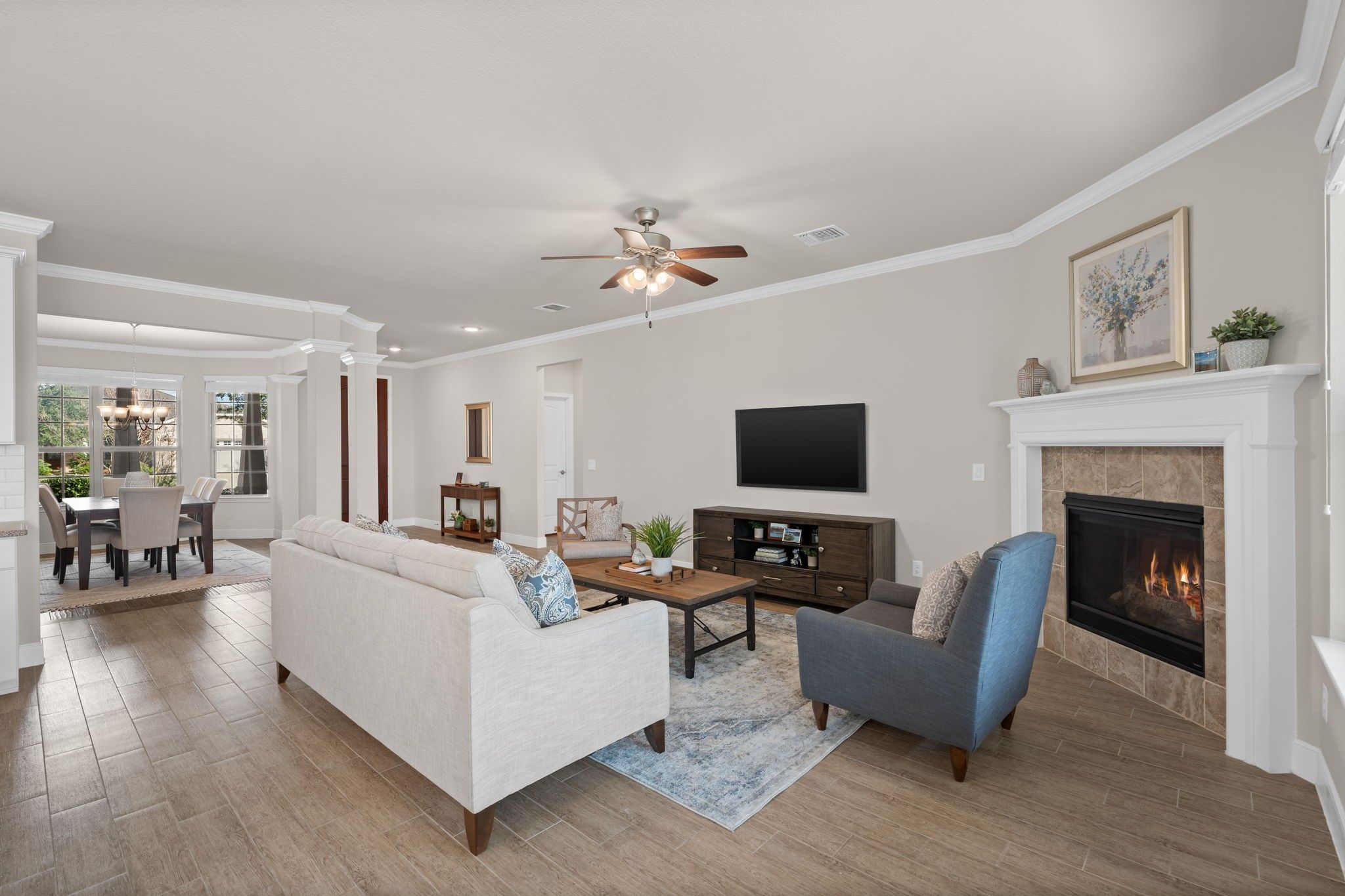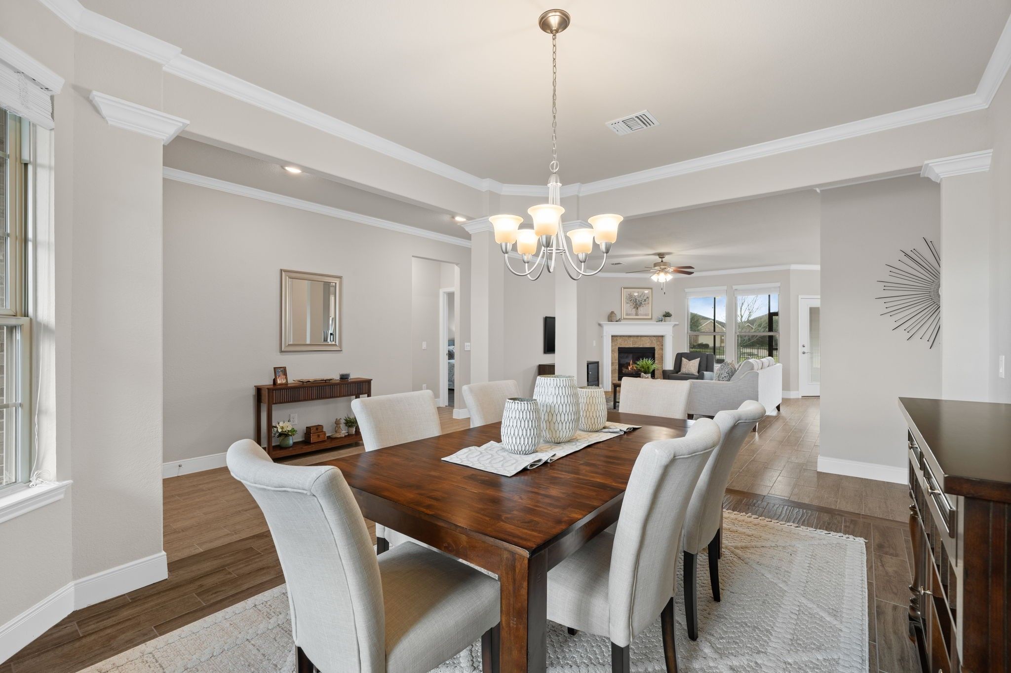 - Crown Molding, Double Vanity, Handicap Access, Kitchen Island, Kitchen/Family Room Combo, Pantry, Tub Shower, Ceiling Fan(s), Programmable Thermostat