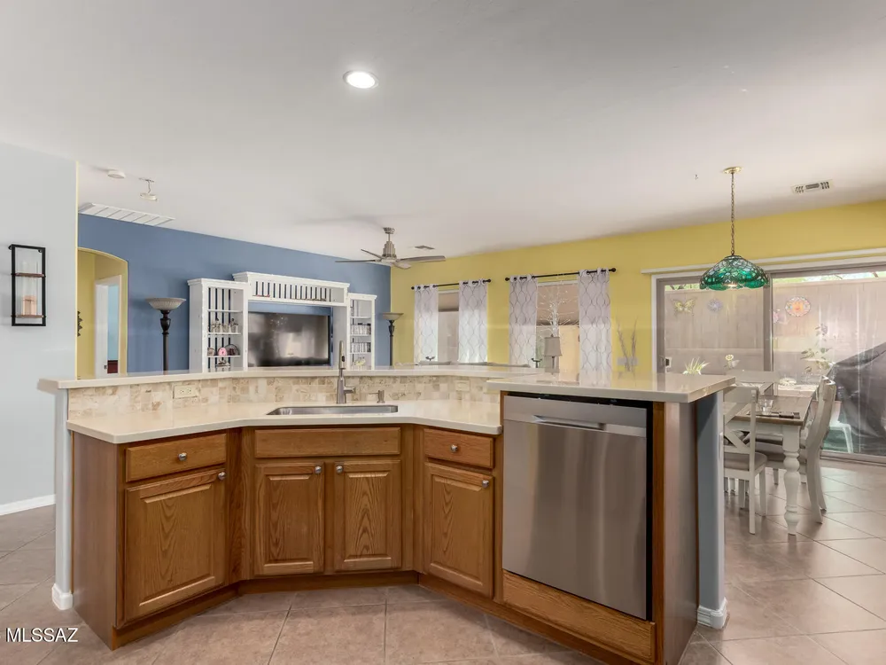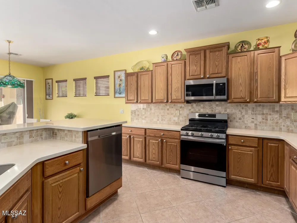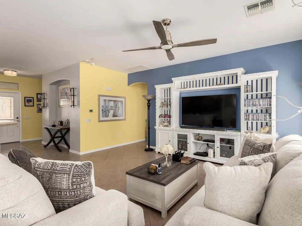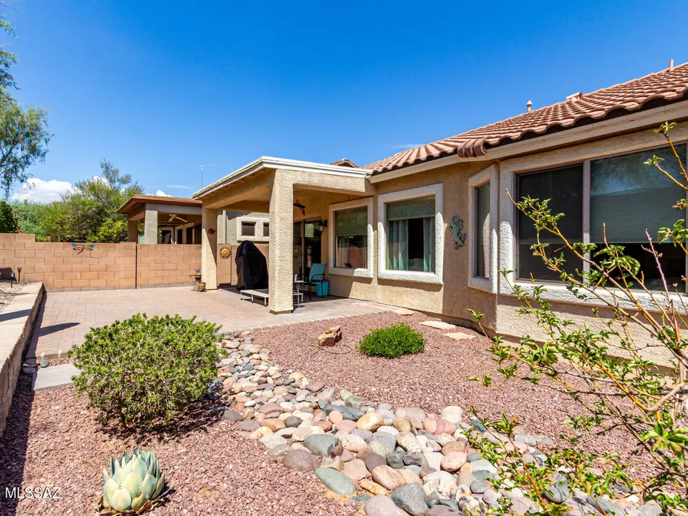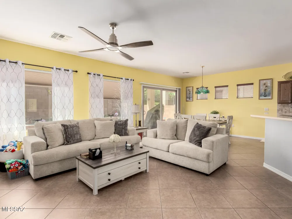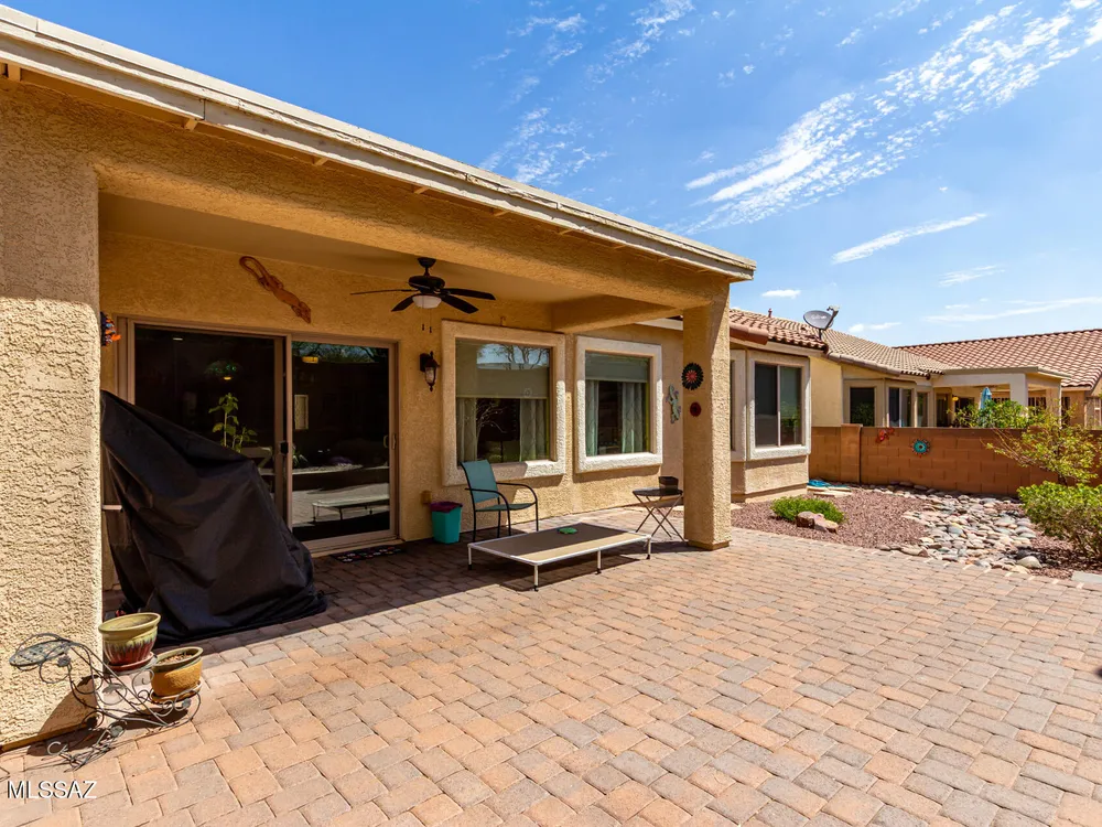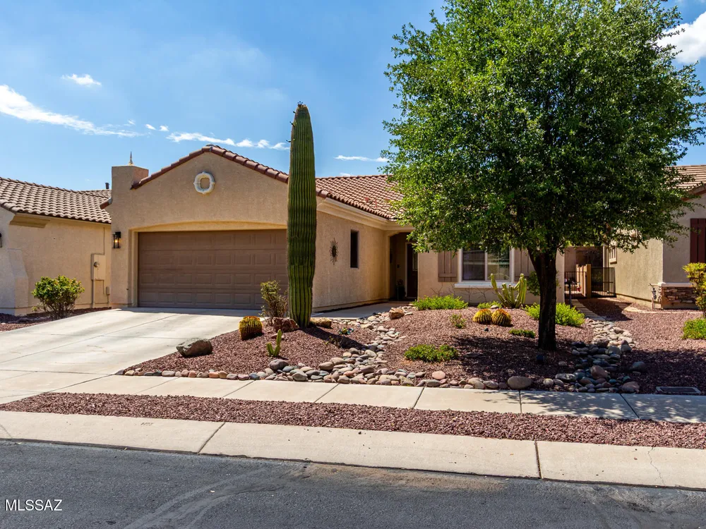 Well-maintained 3-bedroom, 2-bath home in the desirable Sonora at Rancho Sahuarita neighborhood. This 1,615 sq ft home offers a spacious great room layout, neutral tile in main areas, and in bedrooms. The kitchen features Corian countertops, a stone backsplash, and stainless steel appliances. Enjoy a private backyard with no rear neighbors, mature desert landscaping, roses, saguaros, and an extended paver patio. Additional highlights include ceiling fans, epoxy-coated garage floors, and access to nearby community amenities. Schedule your showing today--this one won't last!