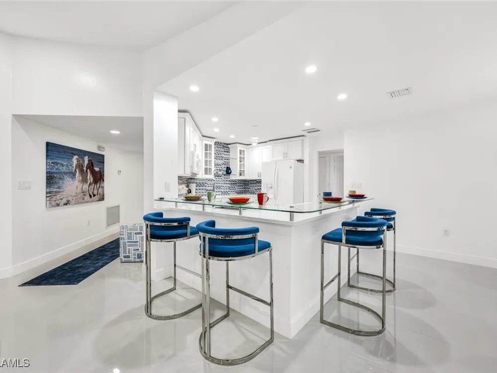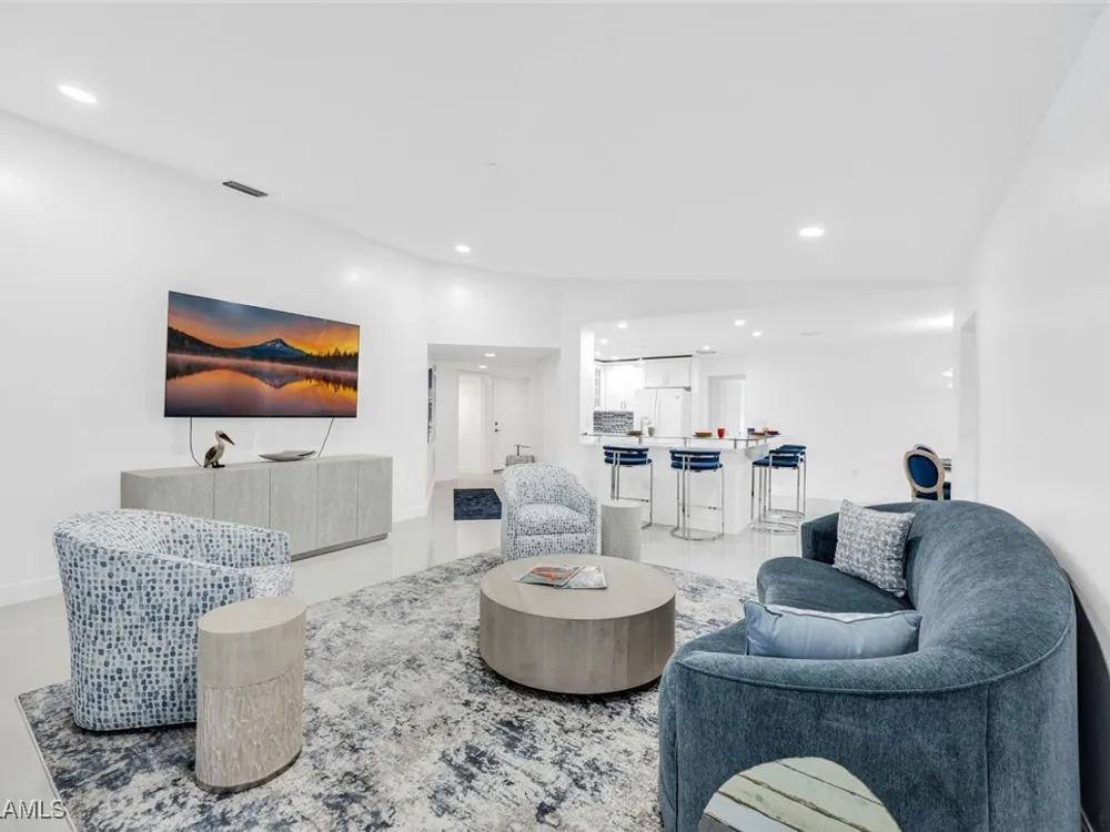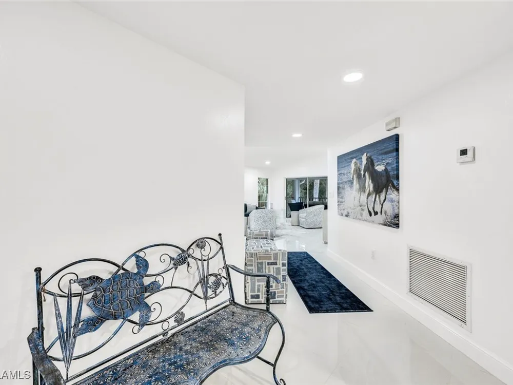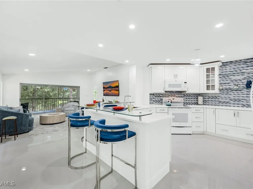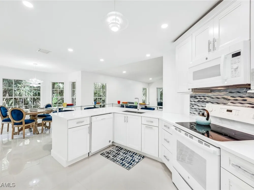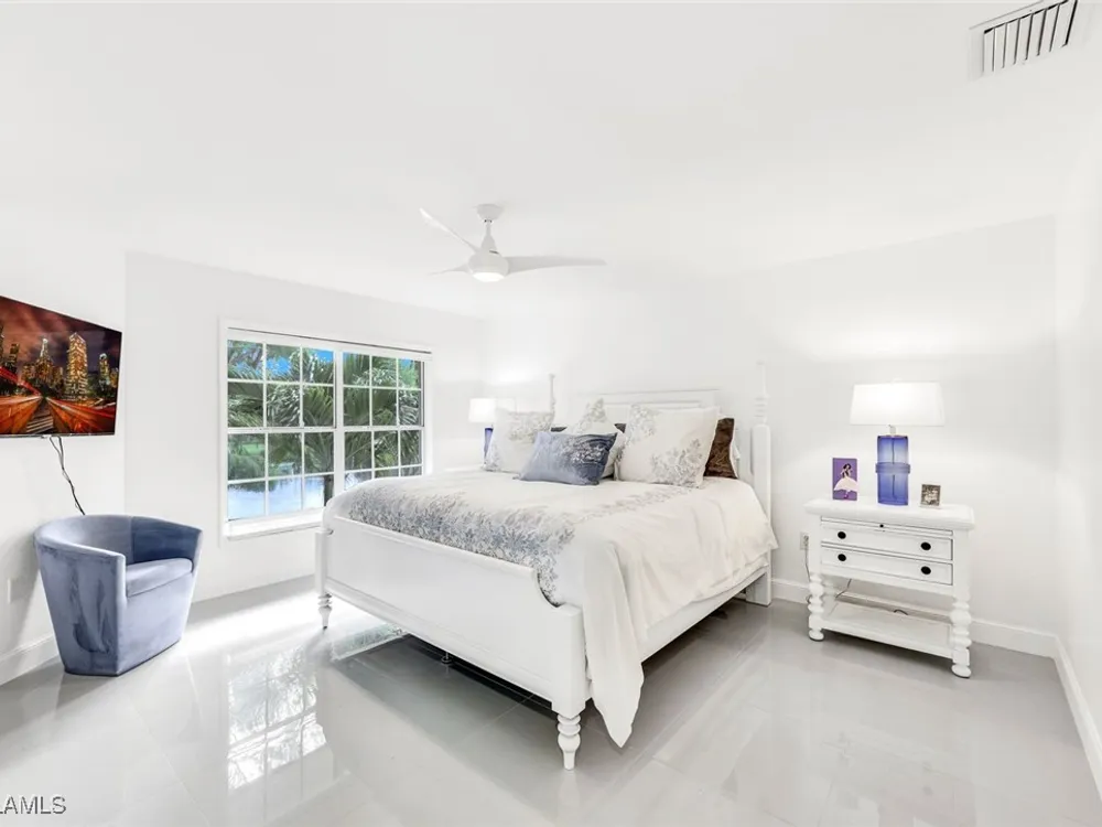 Discover your dream haven in Florida with this beautifully furnished 3BR/2BA condo, perfectly positioned overlooking a serene pond in the exclusive gated community of Bonita Bay. With this corner residence, you’ll enjoy maximum privacy while soaking in the peaceful water view. Bonus news: a professional interior designer owns and remodeled much of the condo! Step inside to find brand-new porcelain floors flowing throughout, complemented by stylish, lighted fans in every central room, and elegant newer furnishings in all three bedrooms and the living room. Newer dining room chairs and counter stools complement the updated kitchen, which boasts new quartz countertops, a chic backsplash, modern faucets, and contemporary lighting—ideal for both cooking and entertaining. The inviting guest bathroom, newly furnished lanai, and trendy decor come together to create your personal slice of paradise. This community offers an array of amenities, including 12 miles of scenic walking and biking trails, as well as sandy beaches just three miles away. Engage in a friendly match on the tennis courts or unwind by the pool at the community center, conveniently located just a two-minute stroll from your private condo. This home isn’t just a tranquil retreat; it’s also a fantastic investment opportunity! Currently leased from November 1, 2025, to May 2, 2026, for $5,100 per month, this condo ensures immediate rental income that will go directly to you as the new buyer. Don’t miss out on this unique blend of luxury living and financial potential!