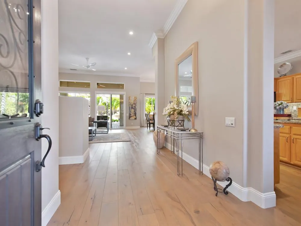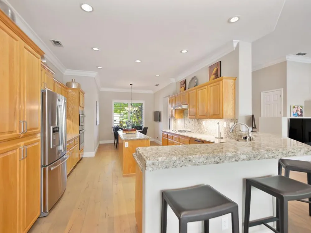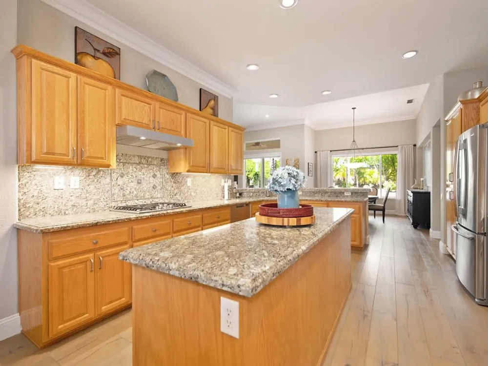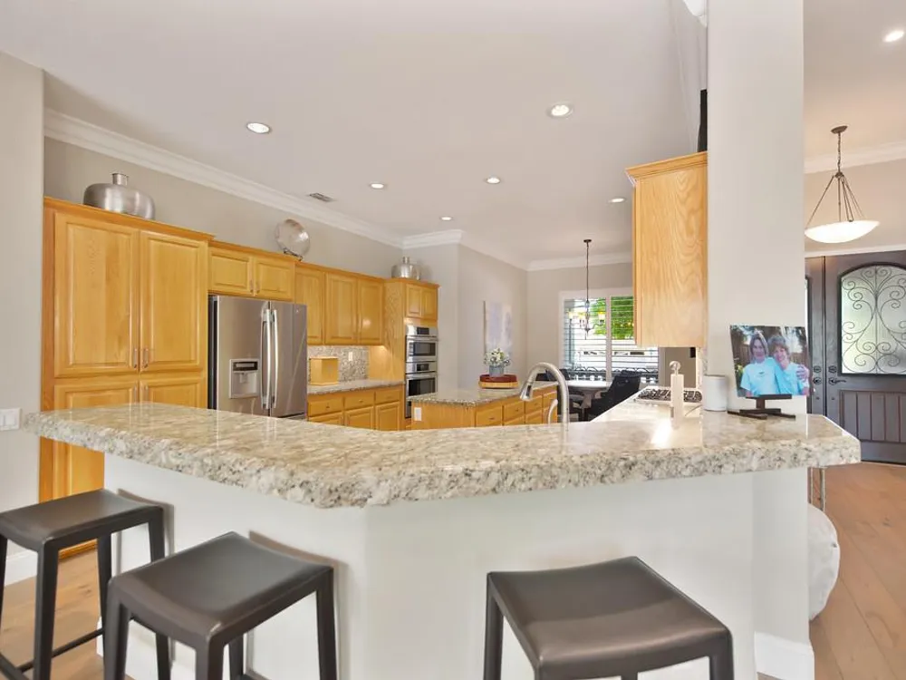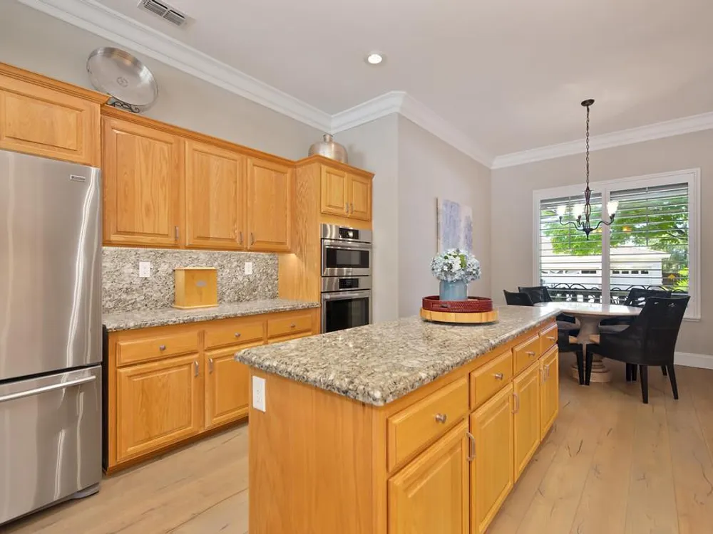 Sitting on a beautifully landscaped 0.33 acre lot in the gated 55+ community of Springfield, at Whitney Oaks. This stunning and sought after Grayson model home is 2,164 square feet designers dream home with hardwood flooring, crown molding, 12 and 10 foot ceilings, sleek recessed lighting in the family room and kitchen, custom paint in and new paint out. The kitchen shines with granite countertops, deluxe appliances (2024), and a sola tube to bring in more natural light. Both bathrooms have been thoughtfully remodeled with beautiful stonework and wheelchair accessible shower in the expansive master suite. The backyard is a private oasis with full landscaping, a spacious paver patio topped by a pergola, and a convenient gas line for grilling. More features include shutters throughout, an abundance of natural light via solar tubes, and a fully finished three car garage with epoxy flooring and built in cabinets. Residents at Springfield enjoy a low‑maintenance lifestyle with an HOA covering common area upkeep, lush community grounds, a sparkling pool, pickle ball courts, a fitness center, walking trails, and privacy gates delivering resort style conveniences and the safety you desire.