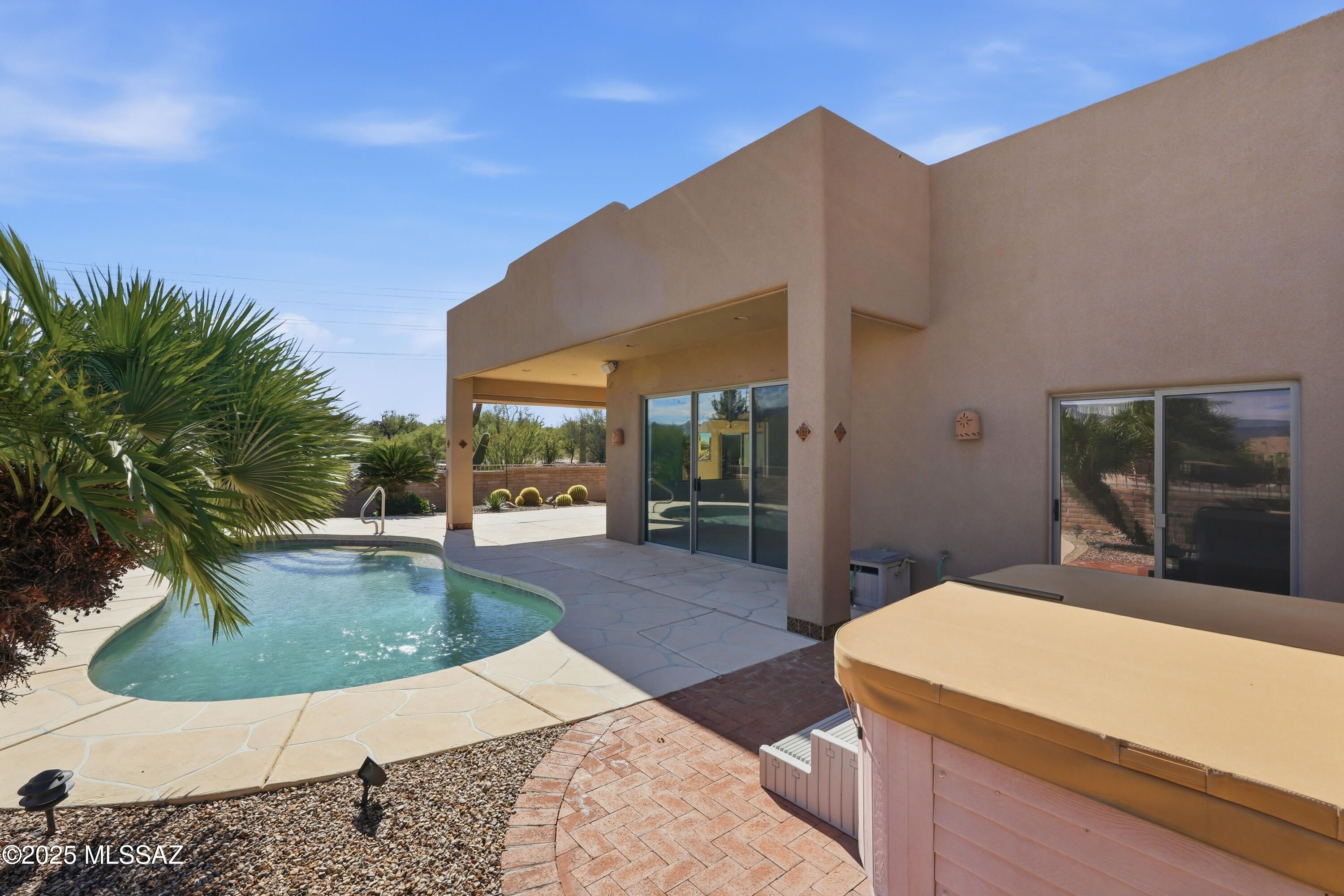Enjoy stunning mountain views from inside and out in this 2-bedroom + den home with a private 1-bed/1-bath casita, located in the gated Springs community of Green Valley, AZ. This 1,972 sq ft retreat sits on an oversized lot with large common areas to the west and south. Relax in the heated pool, jacuzzi, spacious walled backyard, or large private courtyarda"perfect for entertaining or quiet moments. Inside, high ceilings, large windows, granite countertops, an eat-in kitchen, and an updated walk-in shower in the primary suite offer comfort and style. Includes GVR membership with access to 13 recreation centers and 60+ clubs.