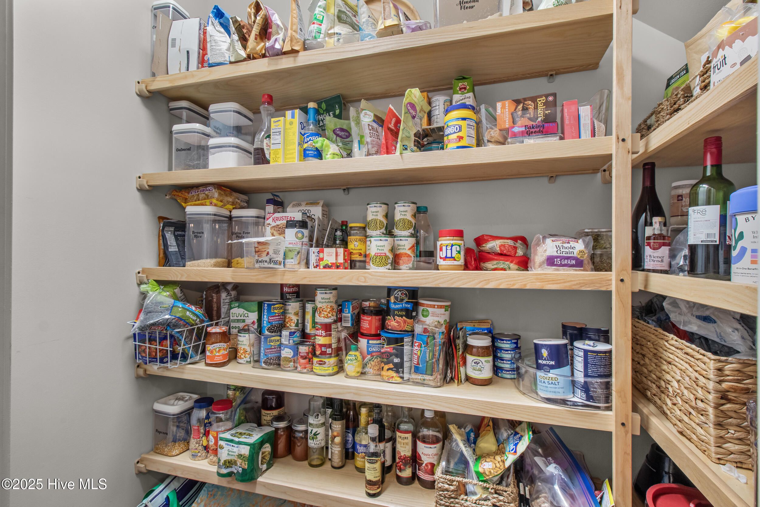 - Blinds/Shades, Gas Log, Walk-In Closet(s), Walk-in Shower, Tray Ceiling(s), Solid Surface, Pantry, Master Downstairs, Kitchen Island, High Ceilings, Ceiling Fan(s)