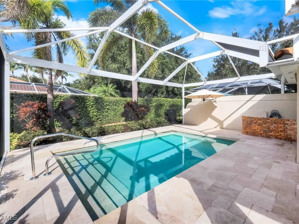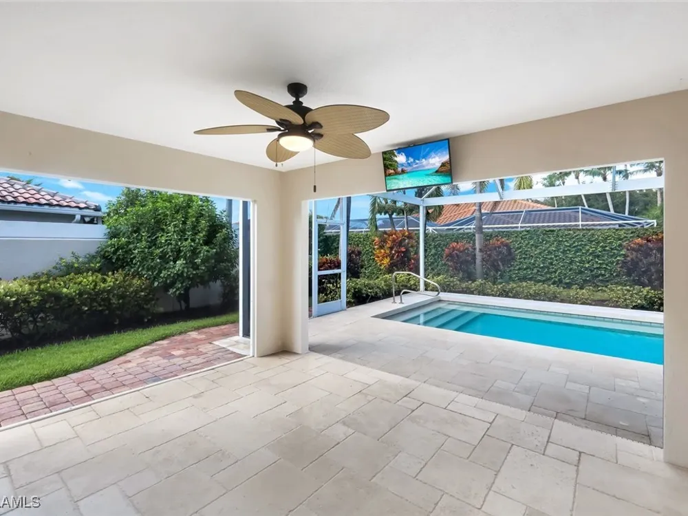 **ISLANDWALK**NEW ROOF 2020** Looking for Peace and Tranquility away from traffic noise? DON’T MISS THIS ONE! Savor the peacefulness of your 2 Bedroom plus open Den 2 Bathroom and 2 Car Garage Capri Villa located in a very quiet and private corner of Island Walk. Your exceptionally lot gives you the privacy you deserve. Your popular Open Floor Plan is great for entertaining and offers easy maintenance including a Newer Roof. This Bright Open Kitchen includes Quartz Countertops and Stainless Steel Appliances, Updates Quartz and Cabinets in Bathrooms, Updates Quartz in Laundry room, Tile & Wood Flooring, Plantation Shutters. Relax and enjoy your time both indoors and outdoors around your Heated Pool. This energy-efficient home is part of the Guard-Gated Award-Winning community of Island Walk. Amenities include heated Resort & Lap Pools, State-of-the-Art Fitness Center, lighted Tennis, Pickleball and Bocce Courts, Putting Green, Fantastic Casa Cotzelli Restaurant, Post Office, Car Wash, Gas Pumps and Nail and Hair Salon. This exceptional buy includes Lawn/Landscaping/Irrigation Care and HDTV & High-Speed Internet in the LOW FEES. All this and located a short drive to Naples white sand Beaches and exceptional Dining and Shopping. Come and make this Dream Home your address in paradise!!