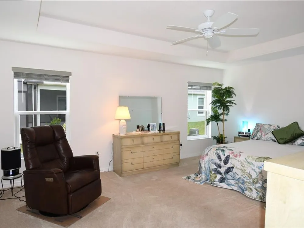Check out this fabulous BEGONIA in THE VILLAGE OF DELUNA and priced at a price you can't refuse. This home sits on a CORNER HOMESITE that is OFFSET from the home behind it. So, there are NO KISSING LANAI here although you can enjoy looking at the neighbor's pool as if it was your own. A 2 1/2 CAR GARAGE will fit all your toys and take the place of that basement you would so sorely miss. HIGH END LUXURY VINYL PLANKING is throughout most of the home. There are QUARTZ COUNTER TOPS in the kitchen and bathrooms. You will love the extra space you get with the BAY WINDOW in the front guest bedroom that you don't see anymore in the New Homes due to the mass production of homes now with poured walls. This really adds to the size of this bedroom as well as to the aesthetics of the front of this home. THE LOCATION IS FANTASTIC. You are very close to all kinds of amenities. Edna's On The Green provides entertainment and food close by, The Magnolia Shopping Center is only minutes away, Water Lily Recreation Center has amenities galore. The golf cart bridge over the turnpike is only minutes away by golf cart and will get you to Brownwood Paddock Square in short order. Call today to make an appointment to see this home before it is gone. You won't regret it. See our video of this home on YouTube. https://youtu.be/svUF_h__UGo