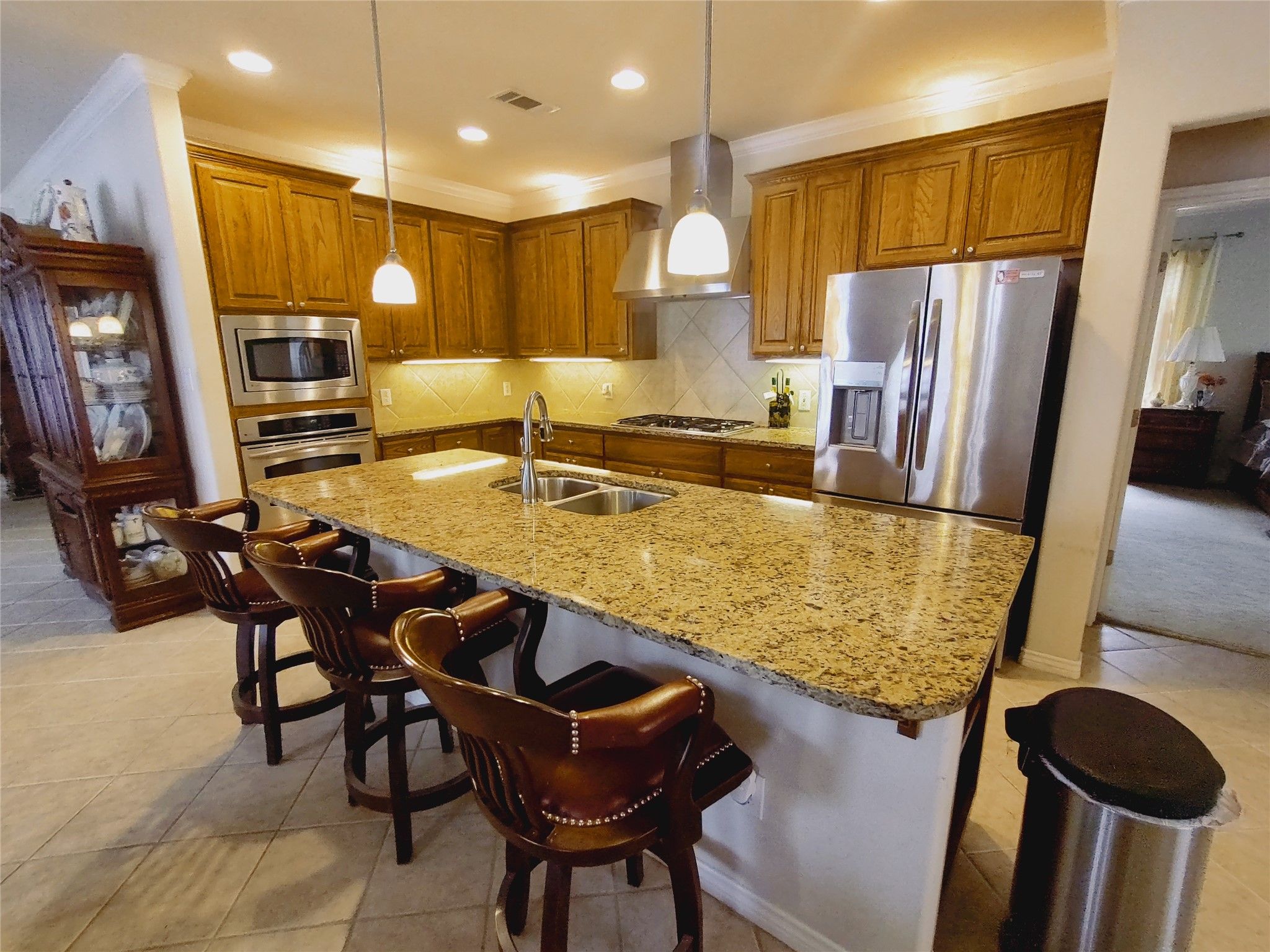 - Breakfast Bar, Separate/Formal Dining Room, Granite Counters, Kitchen Island, Multiple Living Areas, Multiple Dining Areas, Main Level Primary, Open Floorplan, Pantry, Stone Counters, Recessed Lighting, Study
