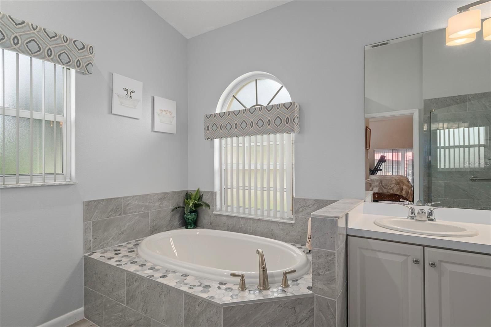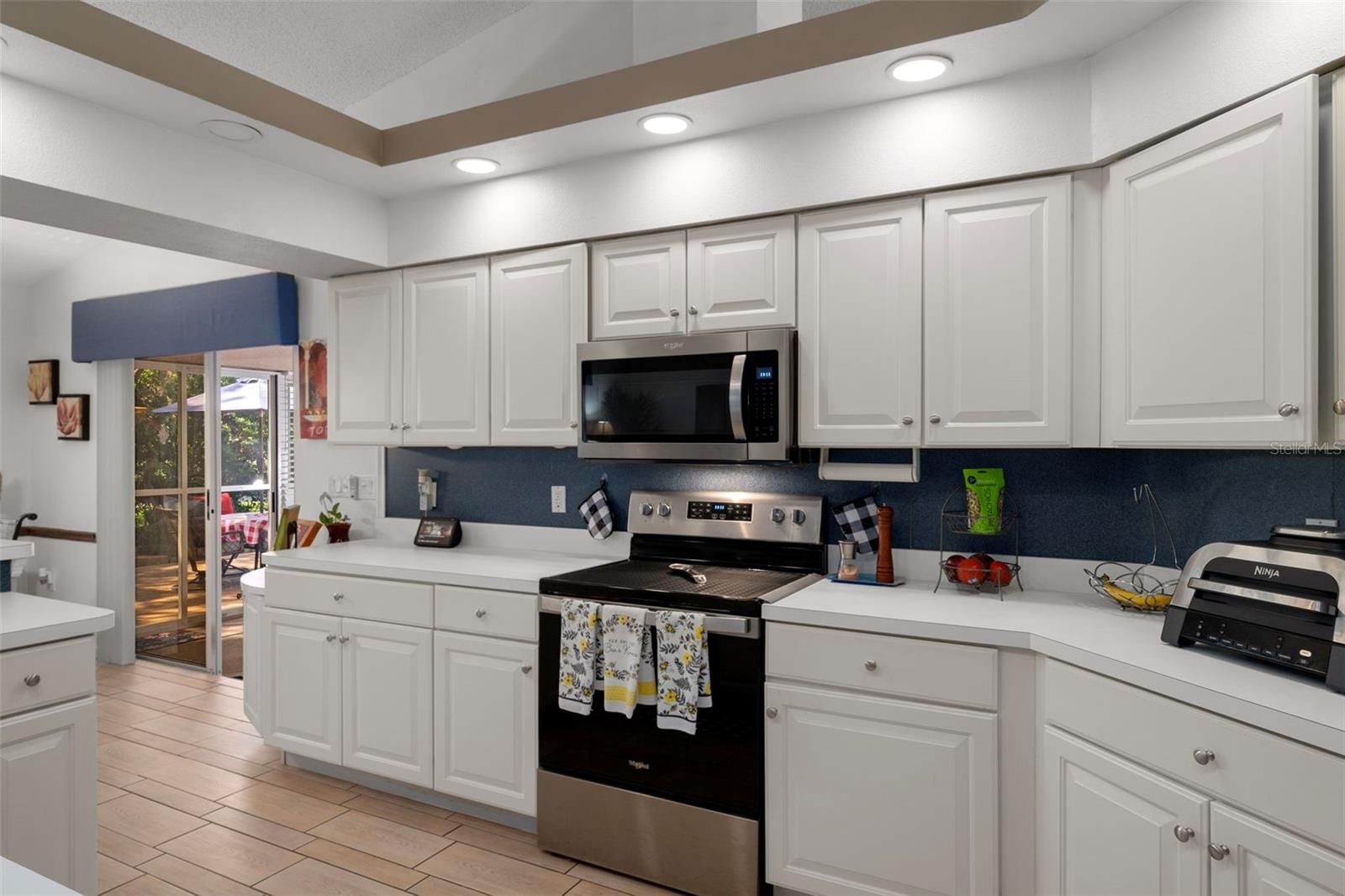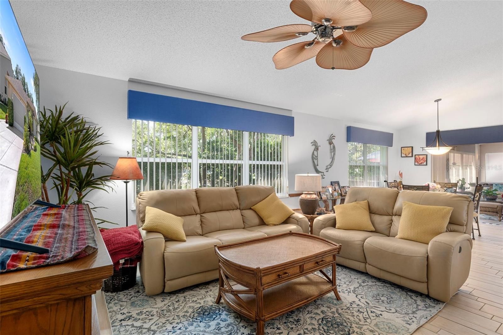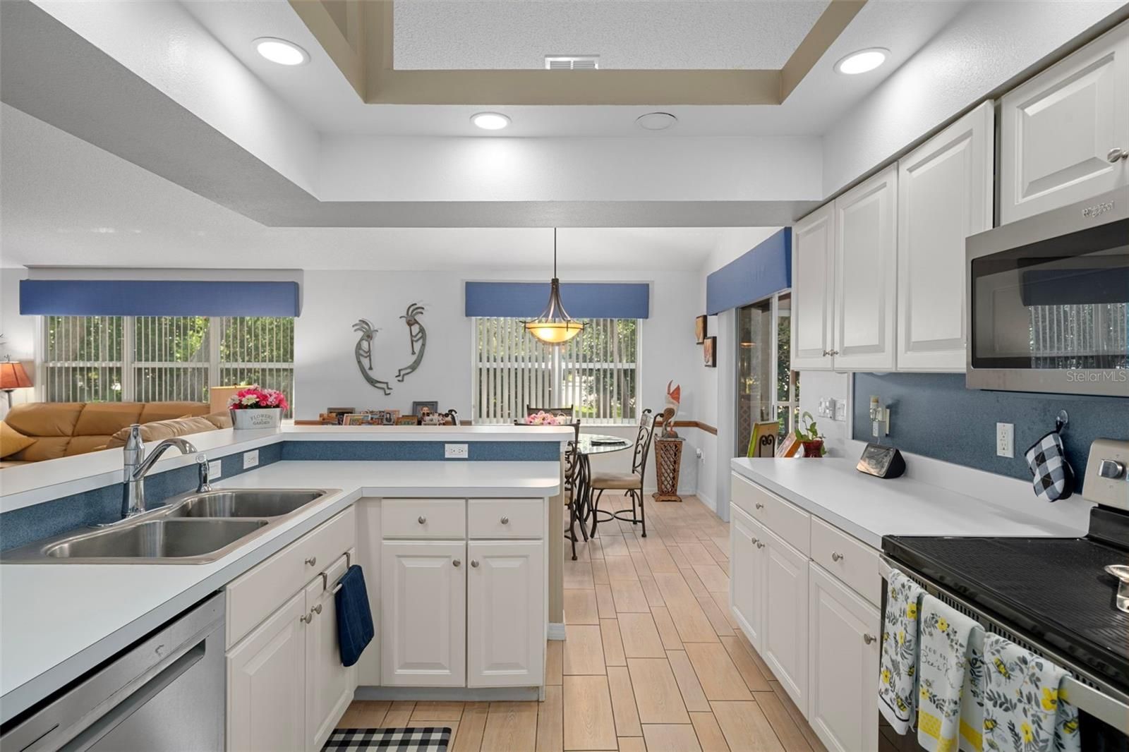 Huge Price Reduction !! NOW only $324,900 for this beautifully updated and meticulously maintained single-family home located in the desirable Wellington 55+ Community. Pride of ownership is evident throughout this residence. As you approach, you’re welcomed by lush, beautiful landscaping and an elegant double-door entry. Inside, bright windows flood the formal living room with natural light, highlighting elegant wood-look tile that flows throughout the home. This area features triple sliding glass doors that lead to the lanai. The formal dining room, adorned with a modern chandelier, matches the entry light and complements the inviting atmosphere. Recently painted in designer colors, the interior also boasts a newer roof (2015), newer upgraded water filtration system for the entire home (2022), newer AC (2022), and brand-new gutters (2024). The kitchen is a chef’s dream with a gorgeous tray ceiling, recessed lighting, an abundance of beautiful cabinets, a breakfast bar with beautiful custom moldings, under-cabinet lighting, a large pantry, and stainless steel appliances that are just two years old. The bright family room, which opens to the kitchen, is perfect for entertaining and features sliding glass doors that lead to a large enclosed lanai with newer glass windows (2022) and upgraded blinds. A standout feature is the custom-built wooden deck that includes decorative railings and wide steps added in 2023, offering a serene spot to enjoy morning coffee while overlooking a meticulously manicured backyard. The luxurious Master Suite includes newer waterproof vinyl plank flooring, sliding glass doors to the lanai, and a 2 spacious walk-in closet both with California closet systems. The Master Bathroom is Gorgeous and features dual sinks with new faucets, updated fixtures, a gorgeous custom-tiled garden tub, and a beautifully tiled step-in shower with custom made glass doors and a glass enclosure. The spacious guest bedroom currently serves as an office with custom cabinetry, including a beautiful custom made desk. The guest bathroom has a newer toilet, elegant vanity including a sink with a newer faucet, and custom-tiled gorgeous step-in shower with custom made glass enclosure and glass shower doors. A spacious third bedroom is perfect for guests with a new fan/light and a large closet with a California closet system. Additionally, the spacious inside laundry room comes equipped with newer ( two years old ) front-loading washer and dryer that are included in the sale, an abundance of beautiful cabinets and a large sink. Ideally located just a short stroll from the community clubhouse and pool, this home offers comfort, convenience, and elegant Florida living at its finest. Located in the Wellington, an amazing 55+ community featuring a 24-hour guarded gate ensuring security & peace of mind for residents. There are 6 pickleball courts, tennis courts, bocce, billiards, Olympic-sized swimming pool & spa, yoga, line dancing, shuffleboard & horseshoes. Social & community spaces include a clubhouse, Wellington's Bar & Grill Restaurant, a fitness center, library, business center with computer stations, arts & crafts studio, ballroom & meeting rooms. The Wellingtons HOA fee includes high-speed fiber optic internet connection with Wi-Fi and Spectrum TV & access to the full recreational amenities. The Wellington is located close to the Suncoast Parkway, Shopping, Dining, Doctors and Hospitals. Priced to sell quickly for only $324,900 !!