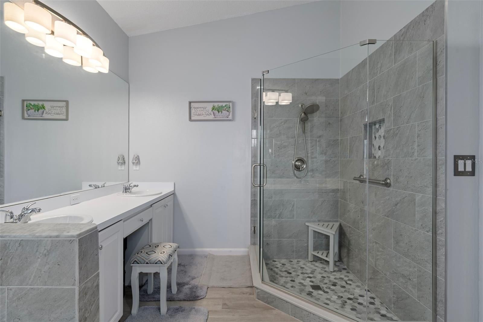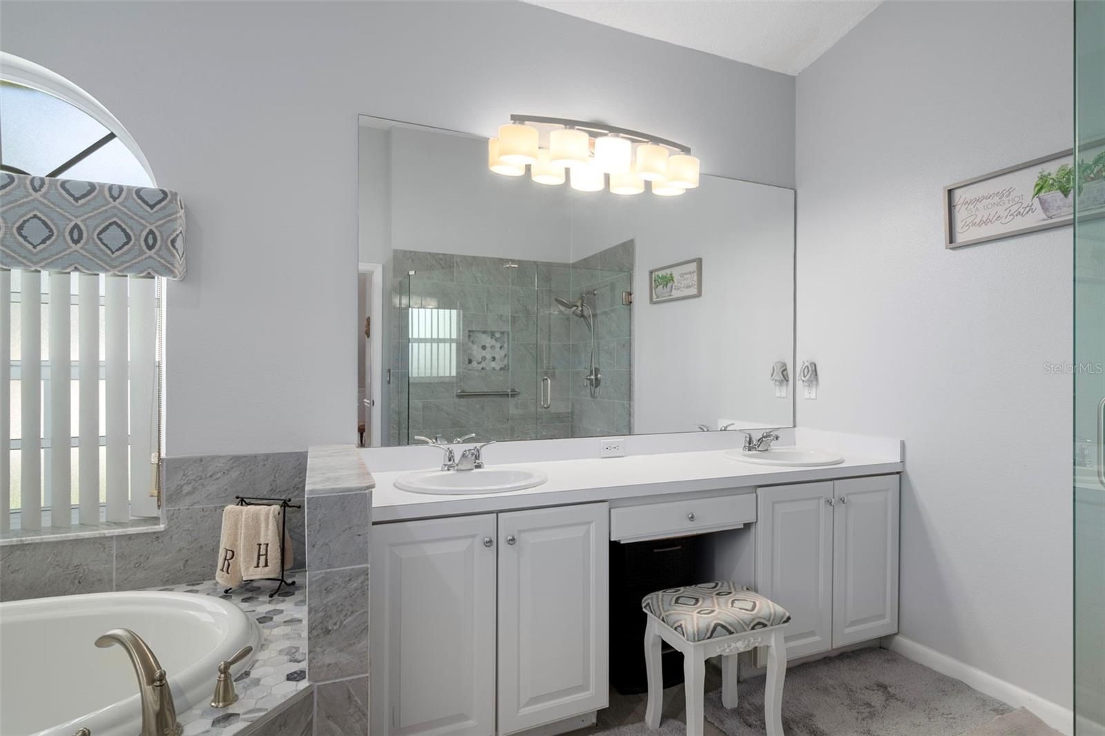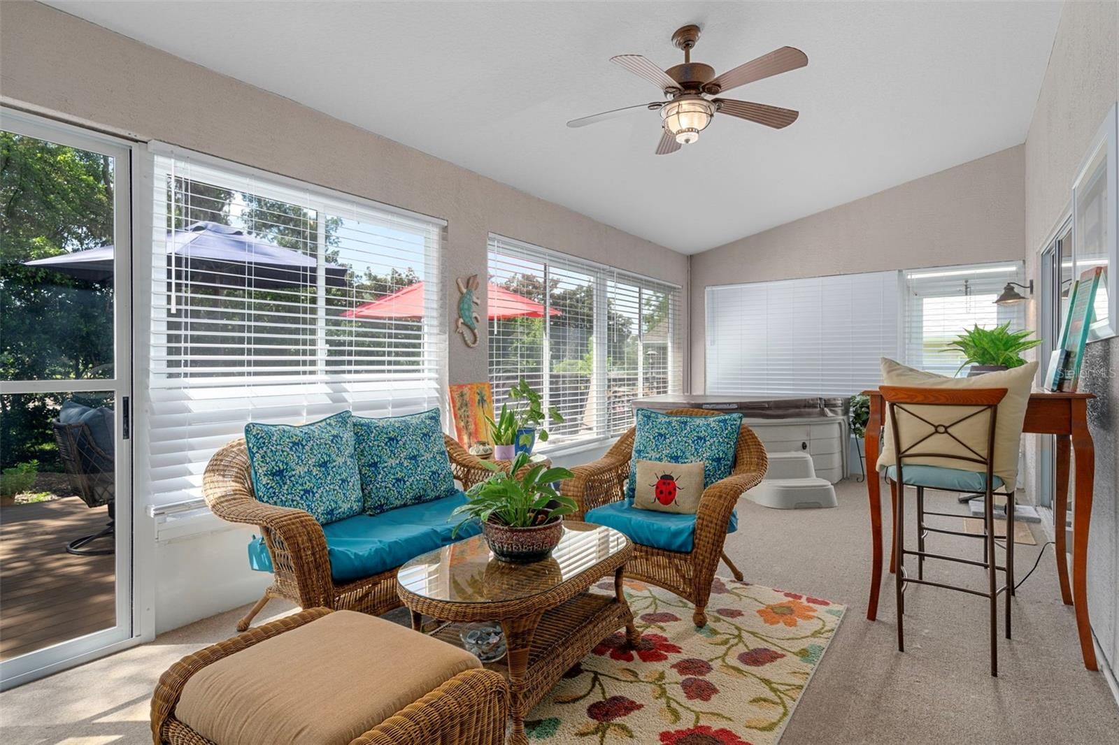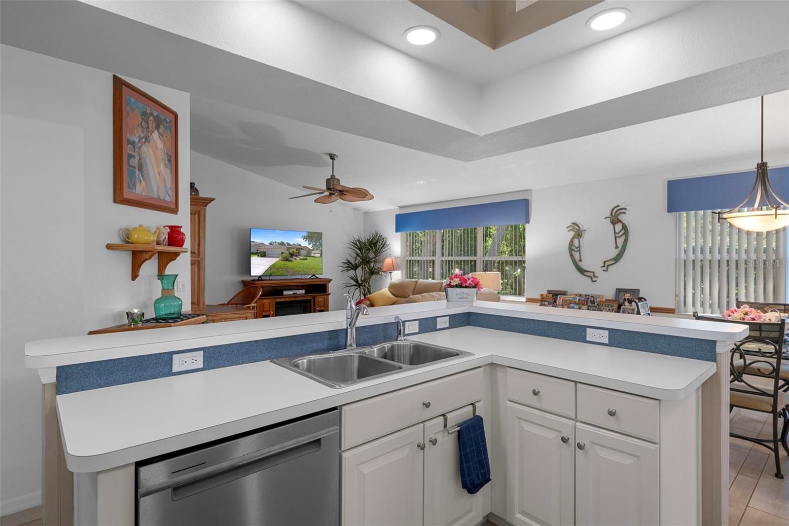 Huge Price Reduction !! NOW only $324,900 for this beautifully updated and meticulously maintained single-family home located in the desirable Wellington 55+ Community. Pride of ownership is evident throughout this residence. As you approach, you’re welcomed by lush, beautiful landscaping and an elegant double-door entry. Inside, bright windows flood the formal living room with natural light, highlighting elegant wood-look tile that flows throughout the home. This area features triple sliding glass doors that lead to the lanai. The formal dining room, adorned with a modern chandelier, matches the entry light and complements the inviting atmosphere. Recently painted in designer colors, the interior also boasts a newer roof (2015), newer upgraded water filtration system for the entire home (2022), newer AC (2022), and brand-new gutters (2024). The kitchen is a chef’s dream with a gorgeous tray ceiling, recessed lighting, an abundance of beautiful cabinets, a breakfast bar with beautiful custom moldings, under-cabinet lighting, a large pantry, and stainless steel appliances that are just two years old. The bright family room, which opens to the kitchen, is perfect for entertaining and features sliding glass doors that lead to a large enclosed lanai with newer glass windows (2022) and upgraded blinds. A standout feature is the custom-built wooden deck that includes decorative railings and wide steps added in 2023, offering a serene spot to enjoy morning coffee while overlooking a meticulously manicured backyard. The luxurious Master Suite includes newer waterproof vinyl plank flooring, sliding glass doors to the lanai, and a 2 spacious walk-in closet both with California closet systems. The Master Bathroom is Gorgeous and features dual sinks with new faucets, updated fixtures, a gorgeous custom-tiled garden tub, and a beautifully tiled step-in shower with custom made glass doors and a glass enclosure. The spacious guest bedroom currently serves as an office with custom cabinetry, including a beautiful custom made desk. The guest bathroom has a newer toilet, elegant vanity including a sink with a newer faucet, and custom-tiled gorgeous step-in shower with custom made glass enclosure and glass shower doors. A spacious third bedroom is perfect for guests with a new fan/light and a large closet with a California closet system. Additionally, the spacious inside laundry room comes equipped with newer ( two years old ) front-loading washer and dryer that are included in the sale, an abundance of beautiful cabinets and a large sink. Ideally located just a short stroll from the community clubhouse and pool, this home offers comfort, convenience, and elegant Florida living at its finest. Located in the Wellington, an amazing 55+ community featuring a 24-hour guarded gate ensuring security & peace of mind for residents. There are 6 pickleball courts, tennis courts, bocce, billiards, Olympic-sized swimming pool & spa, yoga, line dancing, shuffleboard & horseshoes. Social & community spaces include a clubhouse, Wellington's Bar & Grill Restaurant, a fitness center, library, business center with computer stations, arts & crafts studio, ballroom & meeting rooms. The Wellingtons HOA fee includes high-speed fiber optic internet connection with Wi-Fi and Spectrum TV & access to the full recreational amenities. The Wellington is located close to the Suncoast Parkway, Shopping, Dining, Doctors and Hospitals. Priced to sell quickly for only $324,900 !!