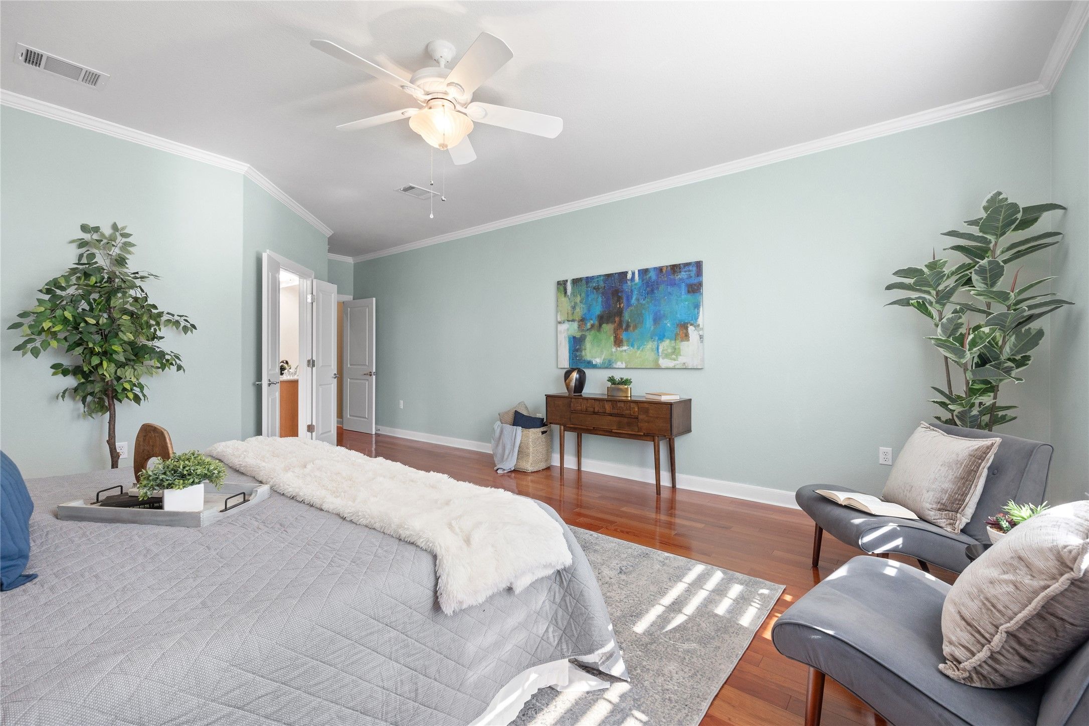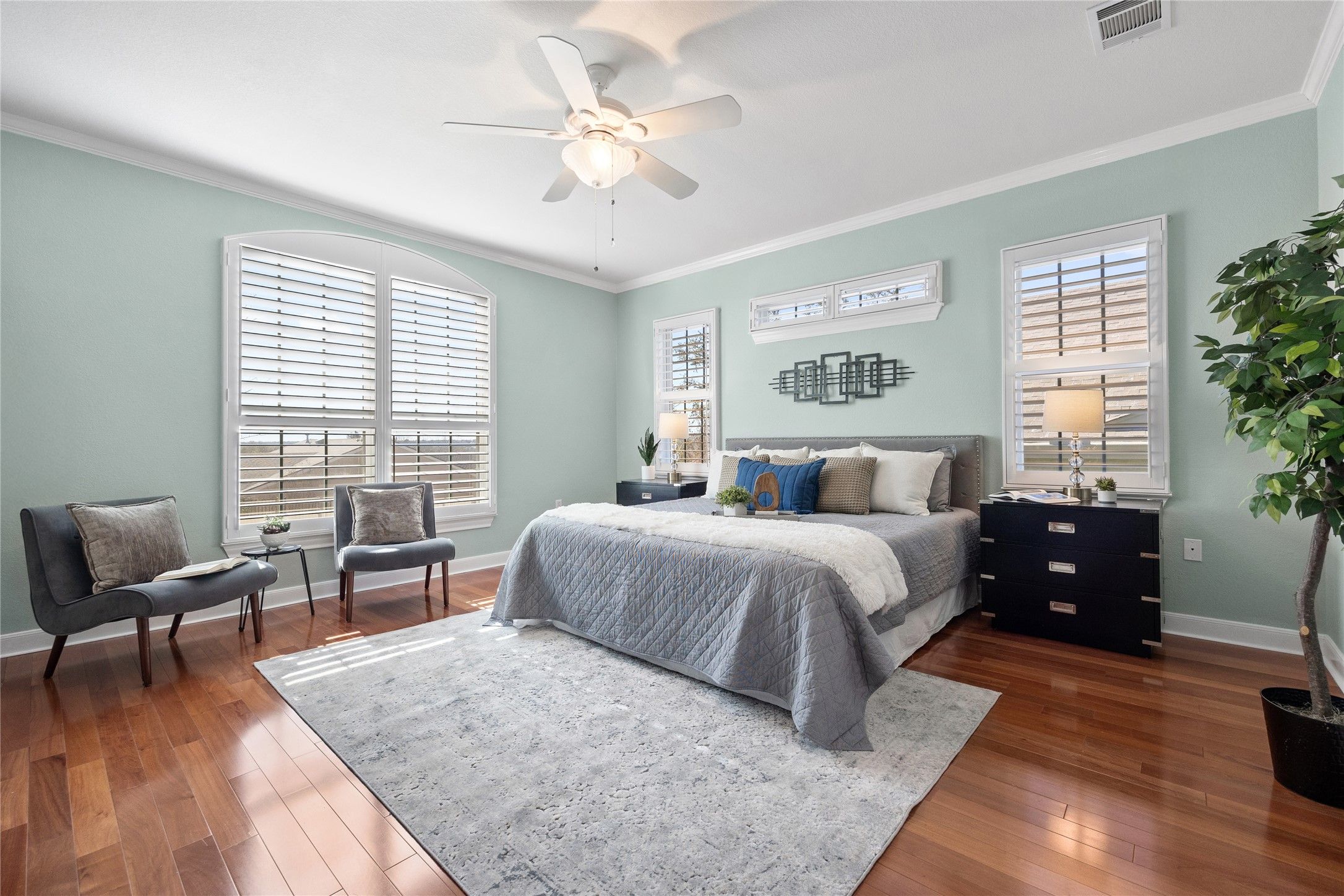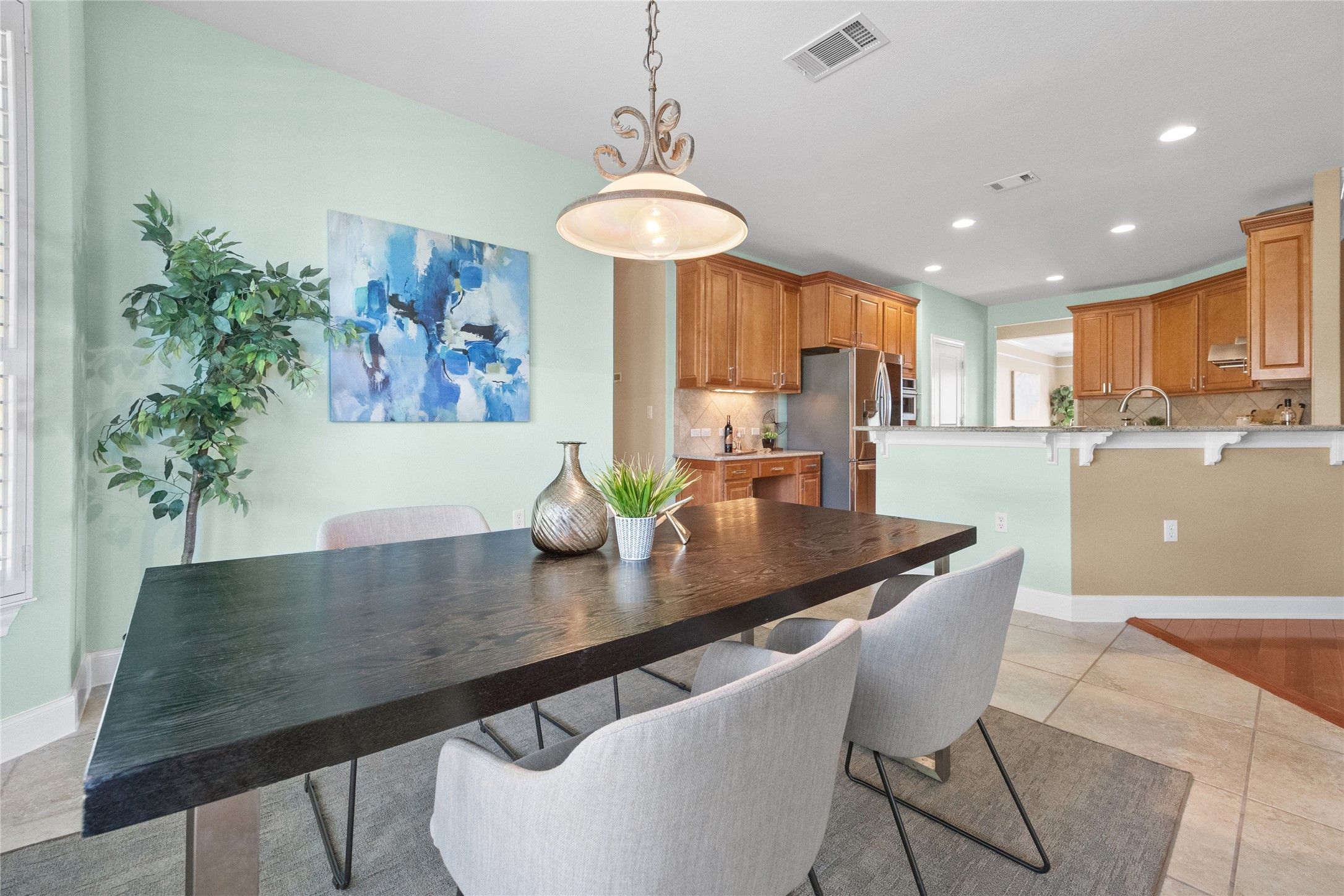 - Breakfast Bar, Tray Ceiling(s), Ceiling Fan(s), Crown Molding, Separate/Formal Dining Room, Double Vanity, Entrance Foyer, Granite Counters, High Ceilings, Kitchen Island, Multiple Dining Areas, Main Level Primary, NoInteriorSteps, Open Floorplan, Pantry, Recessed Lighting, Walk-In Closet(s)