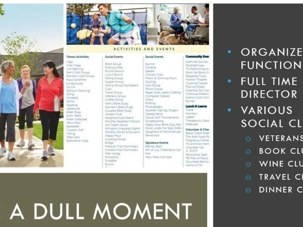 The following amenities are available to Del Webb Southern Harmony - Murfreesboro, TN residents: