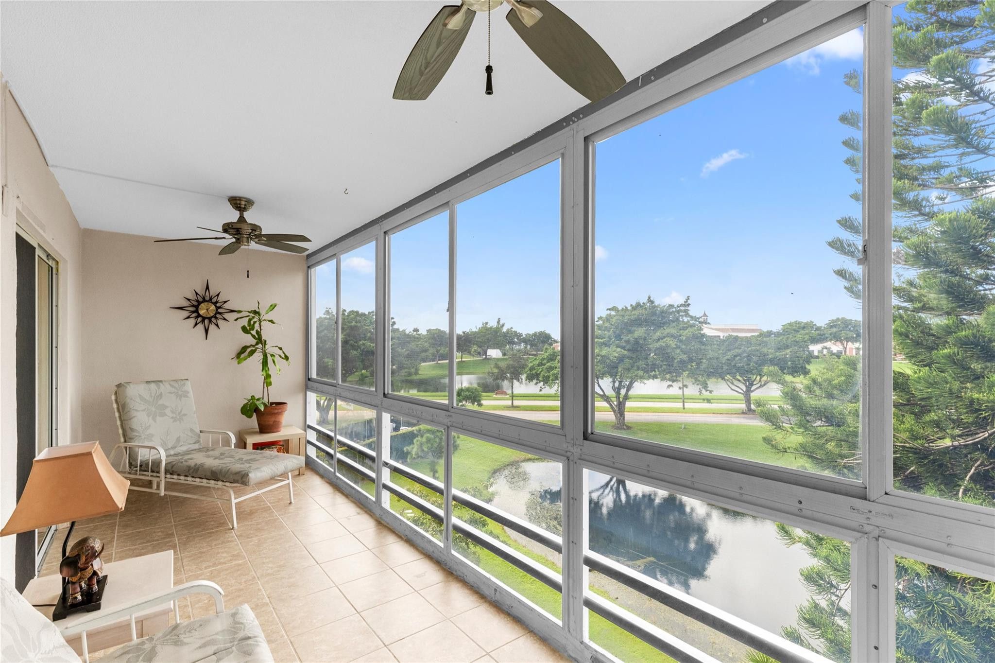 LOCATION LOCATION!!! HIGHLY DESIRABLE CORNER UNIT ON THE TOP FLOOR DIRECTLY ACROSS FROM THE CLUBHOUSE. EXPANSIVE WATERVIEW FROM YOUR XLARGE BACK PATIO WITH FLOOR TO CEILING PLEXIGLASS WINDOWS! PERFECT FOR RELAXING OR ENTERTAINING! COME ENJOY THE GOOD LIFE! KITCHEN BOASTS STAINLESS STEEL APPLIANCES AND WHITE CABINETRY. FURNISHINGS WILL CONVEY WITH THE SALE. NEWER ELECTRICAL PANEL! CENTURY VILLAGE HAS RESORT STYLE AMENITIES TO INCLUDE A CLUBHOUSE, INDOOR AND OUTDOOR POOLS, PICKLEBALL, TENNIS, MINIATURE GOLF, FITNESS CENTER, ON-SITE RESTAURANT, GAMES AND CLUBS, COURTESY SHUTTLE AND SO MUCH MORE! COMMUNITY IS LOCATED 3.5 MILES FROM THE AWARD WINNING DEERFIELD BEACH! ASSOCIATION CLAIMS 55+