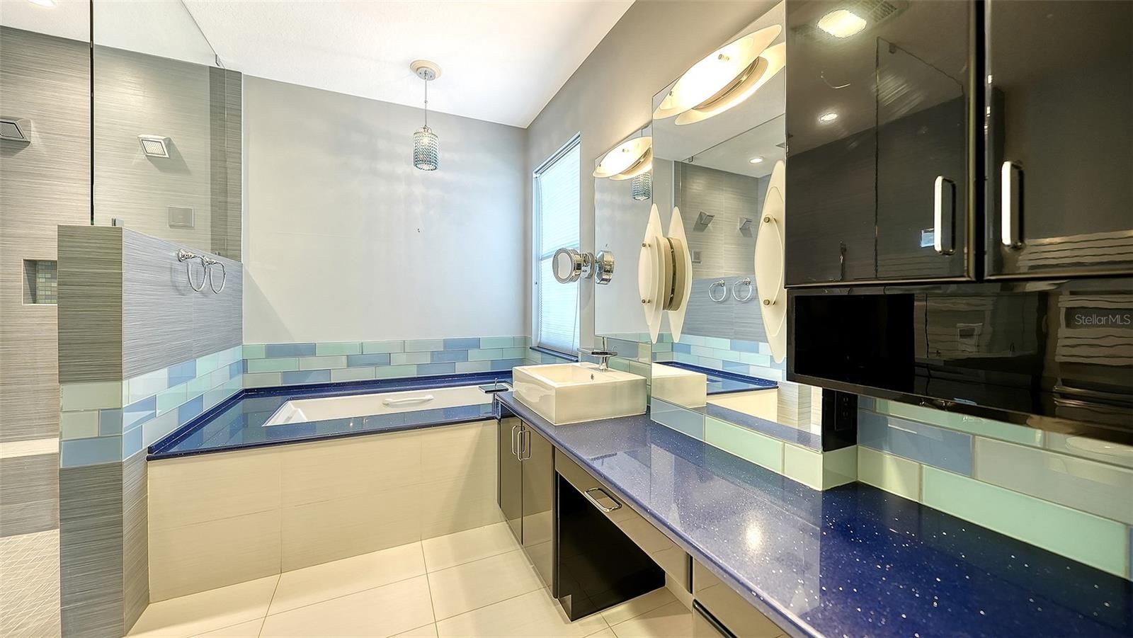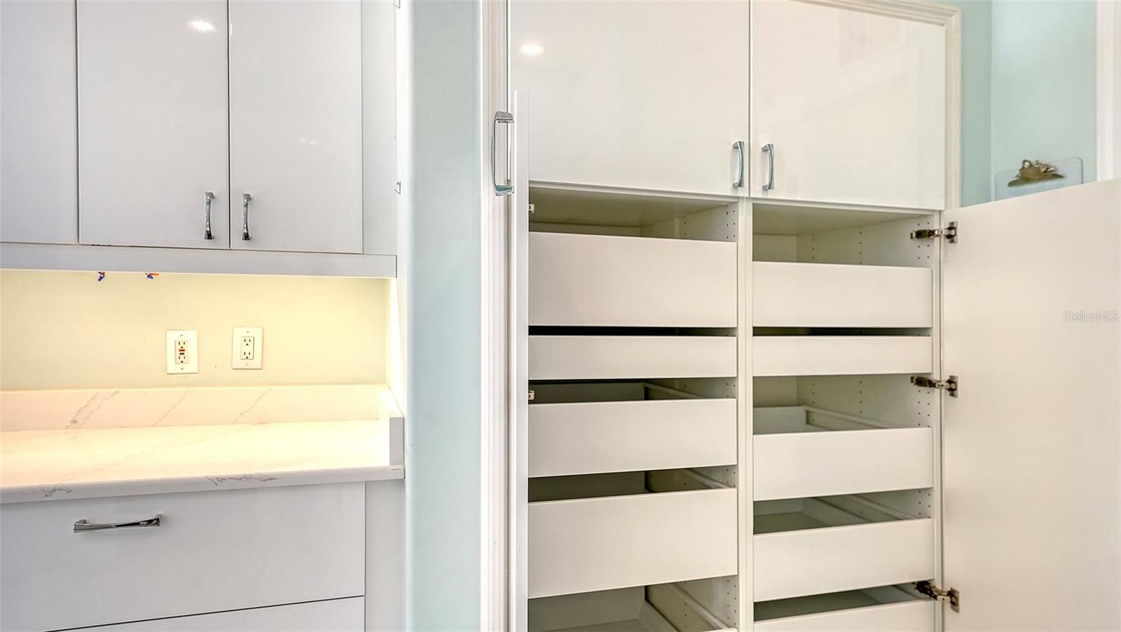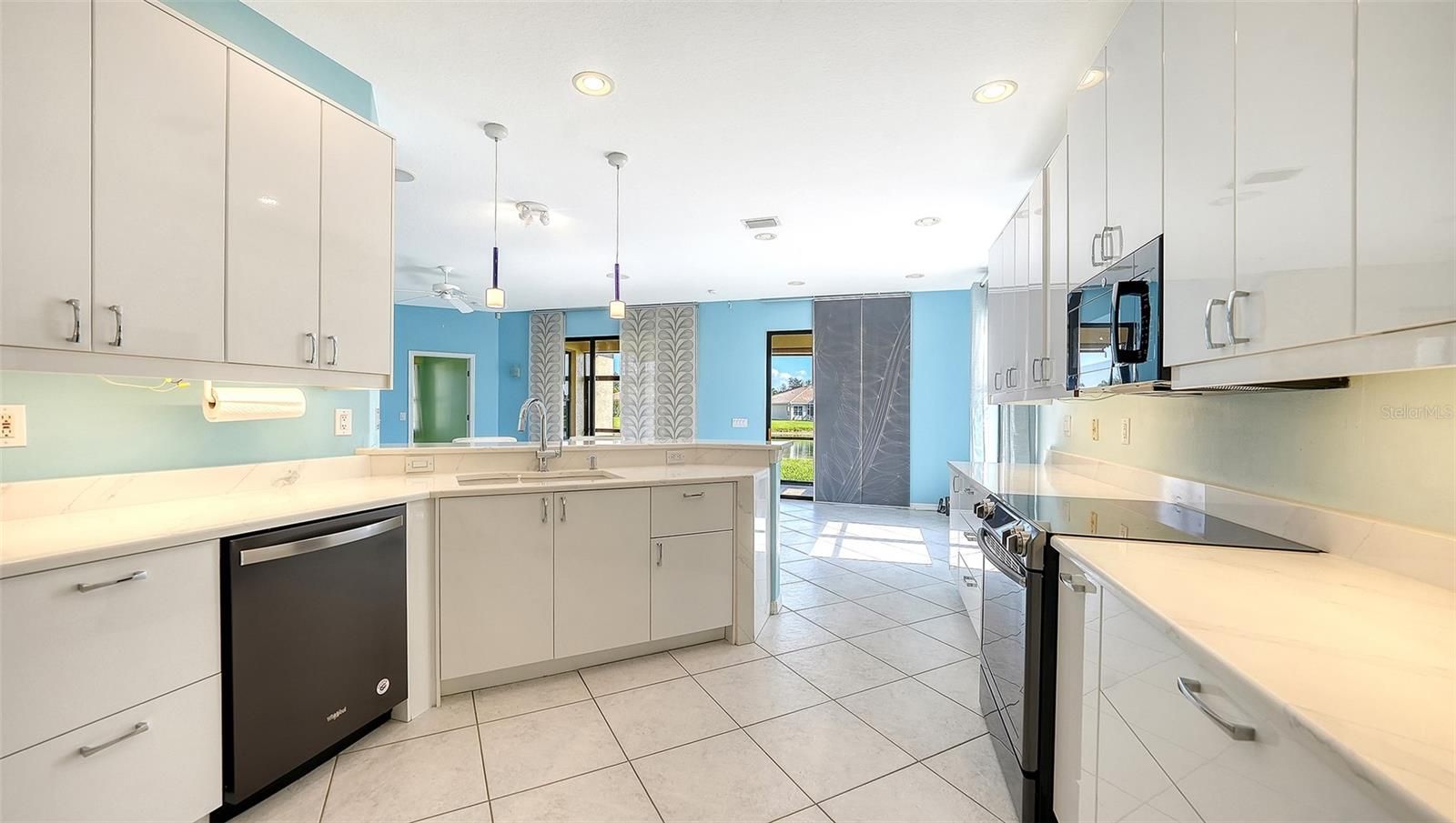 Welcome to this beautifully maintained 3-bedroom, 2-bath home with a den, tucked away on an oversized cul-de-sac lot in the vibrant 55+ gated community of Lakeridge Falls. With 2,186 square feet, this inviting residence offers peaceful scenic lake views, 24-hour guard security, and true maintenance-free living. The heart of this home is its beautifully upgraded, contemporary kitchen featuring sleek, high-gloss Euro-style cabinetry that delivers a clean, modern aesthetic with exceptional storage. Every cabinet and drawer is soft-close, and the pantry is outfitted with custom pull-outs and deep storage drawers — making organization effortless and maximizing every inch of space. Integrated under-cabinet lighting enhances the polished look and illuminates the expansive quartz countertops, creating the perfect workspace for cooking and entertaining. The layout flows effortlessly, anchored by a spacious peninsula with additional storage and ideal seating options. Newer appliances, a deep modern basin sink, and thoughtfully designed cabinetry give this kitchen both style and function — making it a true showpiece within the home. The spacious living area includes a modern custom feature wall with an electric fireplace and a working surround-sound system, adding warmth and style. The primary suite is a retreat of its own, complete with a second electric fireplace and a stunning remodeled bath showcasing an oversized walk-in shower, Kohler Smart Shower system, frameless glass, dual shower heads, body sprays, navy quartz surfaces, and elegant designer lighting. Enjoy the tranquil Florida lifestyle from the enclosed and screened lanai, where sweeping water views make every day feel special. Additional perks include a newer AC (2023), a one-year home warranty, and a pre-listing inspection with completed repairs and receipts provided to the buyer for peace of mind. Residents of Lakeridge Falls enjoy resort-style amenities, including a heated pool, spa, fitness center, card room, bocce courts, a charming sand beach, and a newly renovated clubhouse. All just minutes from University Parkway shopping and dining, SRQ Airport, downtown Sarasota, and world-famous beaches. Warm and welcoming—this is the perfect place to call home.