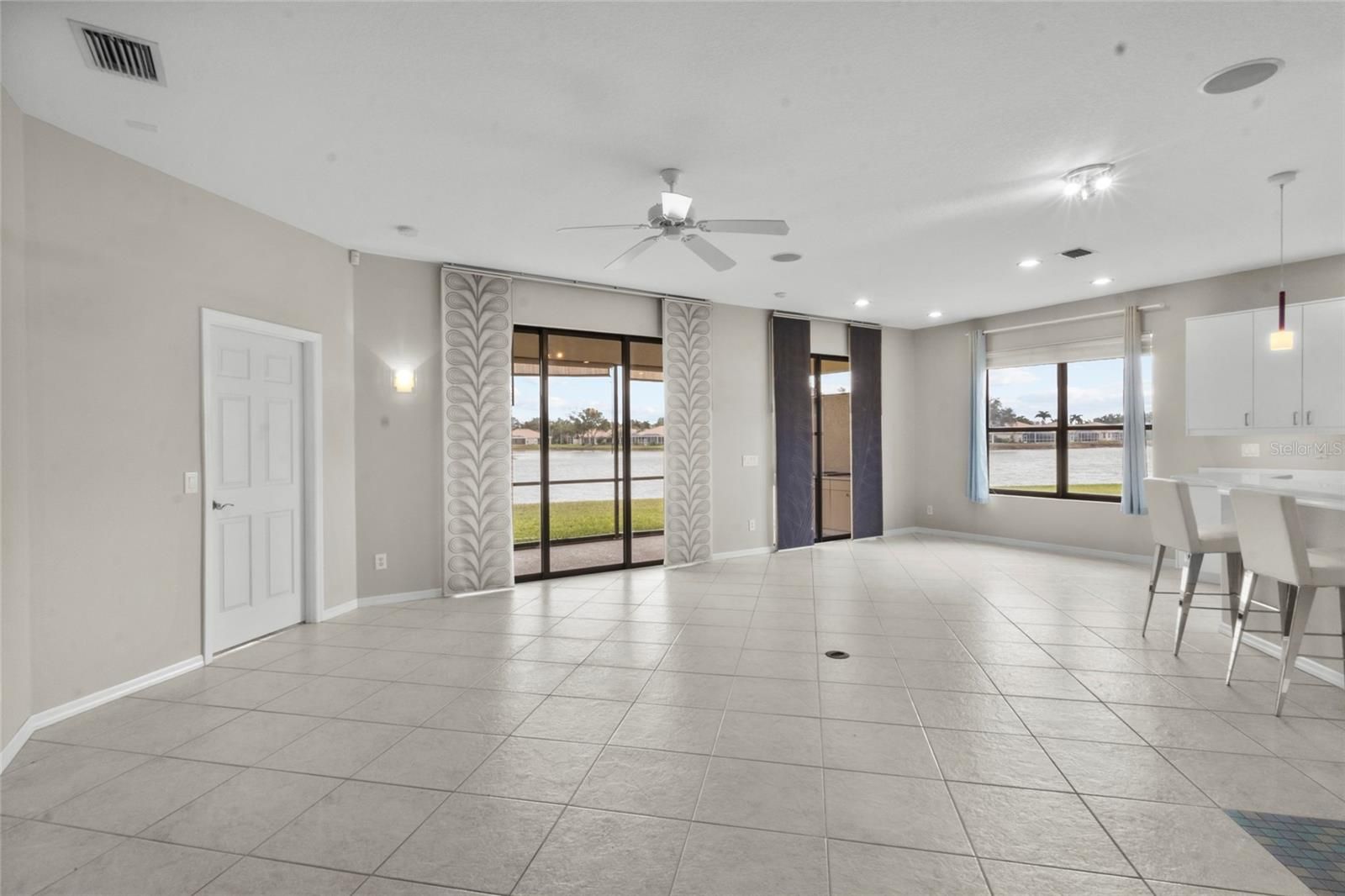 One or more photo(s) has been virtually staged. A significant price improvement meets a refreshed interior, with new paint enhancing the heart of the home. Welcome to this beautifully maintained 3-bedroom, 2-bath home with a den, tucked away on an oversized cul-de-sac lot in the vibrant 55+ gated community of Lakeridge Falls. With 2,186 square feet, this inviting residence offers peaceful scenic lake views, 24-hour guard security, and true maintenance-free living. The heart of this home is its beautifully upgraded, contemporary kitchen featuring sleek, high-gloss Euro-style cabinetry that delivers a clean, modern aesthetic with exceptional storage. Every cabinet and drawer is soft-close, and the pantry is outfitted with custom pull-outs and deep storage drawers — making organization effortless and maximizing every inch of space. Integrated under-cabinet lighting enhances the polished look and illuminates the expansive quartz countertops, creating the perfect workspace for cooking and entertaining. The layout flows effortlessly, anchored by a spacious peninsula with additional storage and ideal seating options. Newer appliances, a deep modern basin sink, and thoughtfully designed cabinetry give this kitchen both style and function — making it a true showpiece within the home. The spacious living area includes a modern custom feature wall with an electric fireplace and a working surround-sound system, adding warmth and style. The primary suite is a retreat of its own, complete with a second electric fireplace and a stunning remodeled bath showcasing an oversized walk-in shower, Kohler Smart Shower system, frameless glass, dual shower heads, body sprays, navy quartz surfaces, and elegant designer lighting. Enjoy the tranquil Florida lifestyle from the enclosed and screened lanai, where sweeping water views make every day feel special. Additional perks include a newer AC (2023), a one-year home warranty, and a pre-listing inspection with completed repairs and receipts provided to the buyer for peace of mind. Residents of Lakeridge Falls enjoy resort-style amenities, including a heated pool, spa, fitness center, card room, bocce courts, a charming sand beach, and a newly renovated clubhouse. All just minutes from University Parkway shopping and dining, SRQ Airport, downtown Sarasota, and world-famous beaches. Warm and welcoming—this is the perfect place to call home.