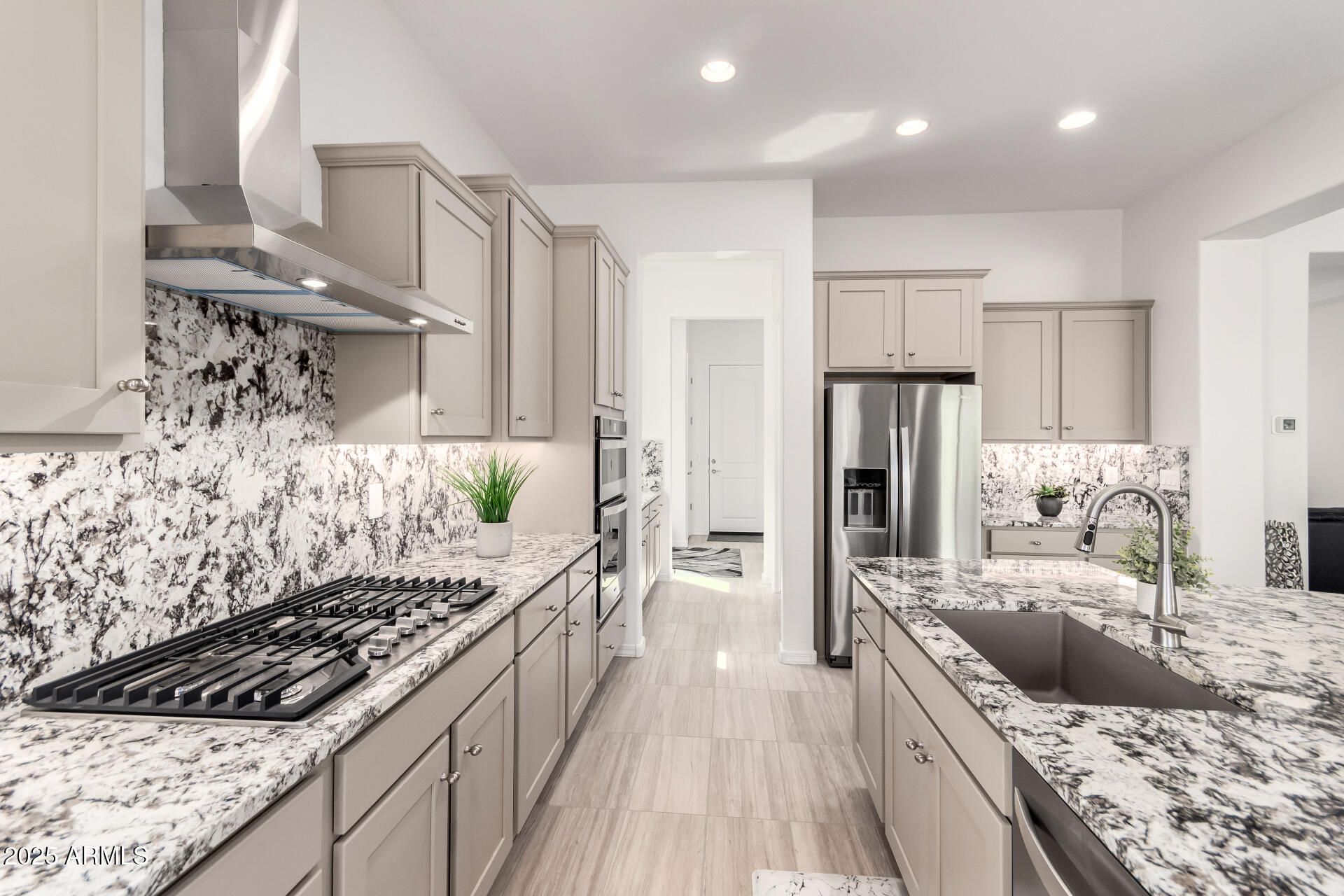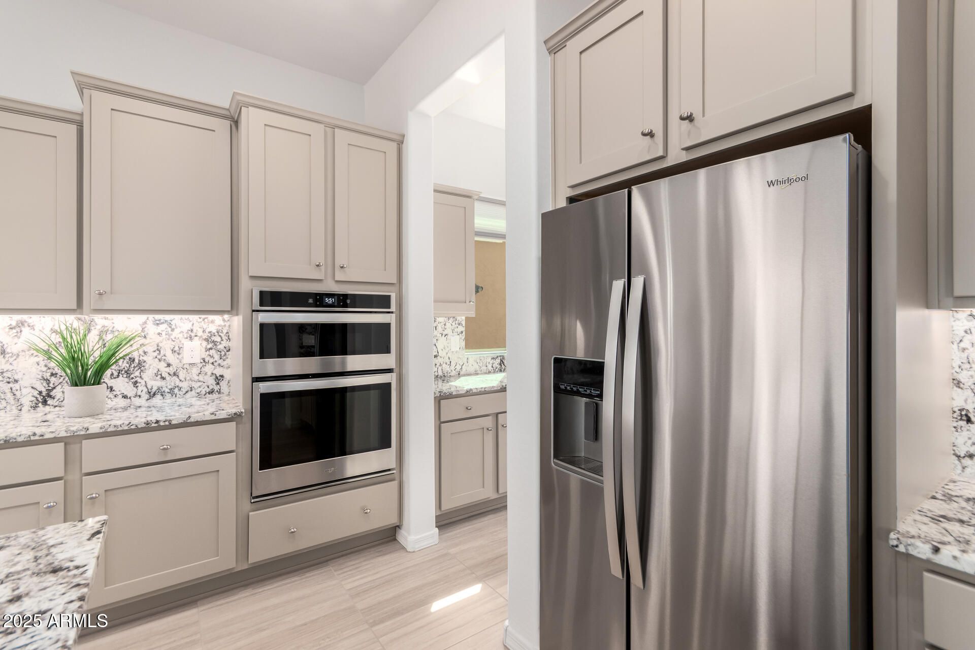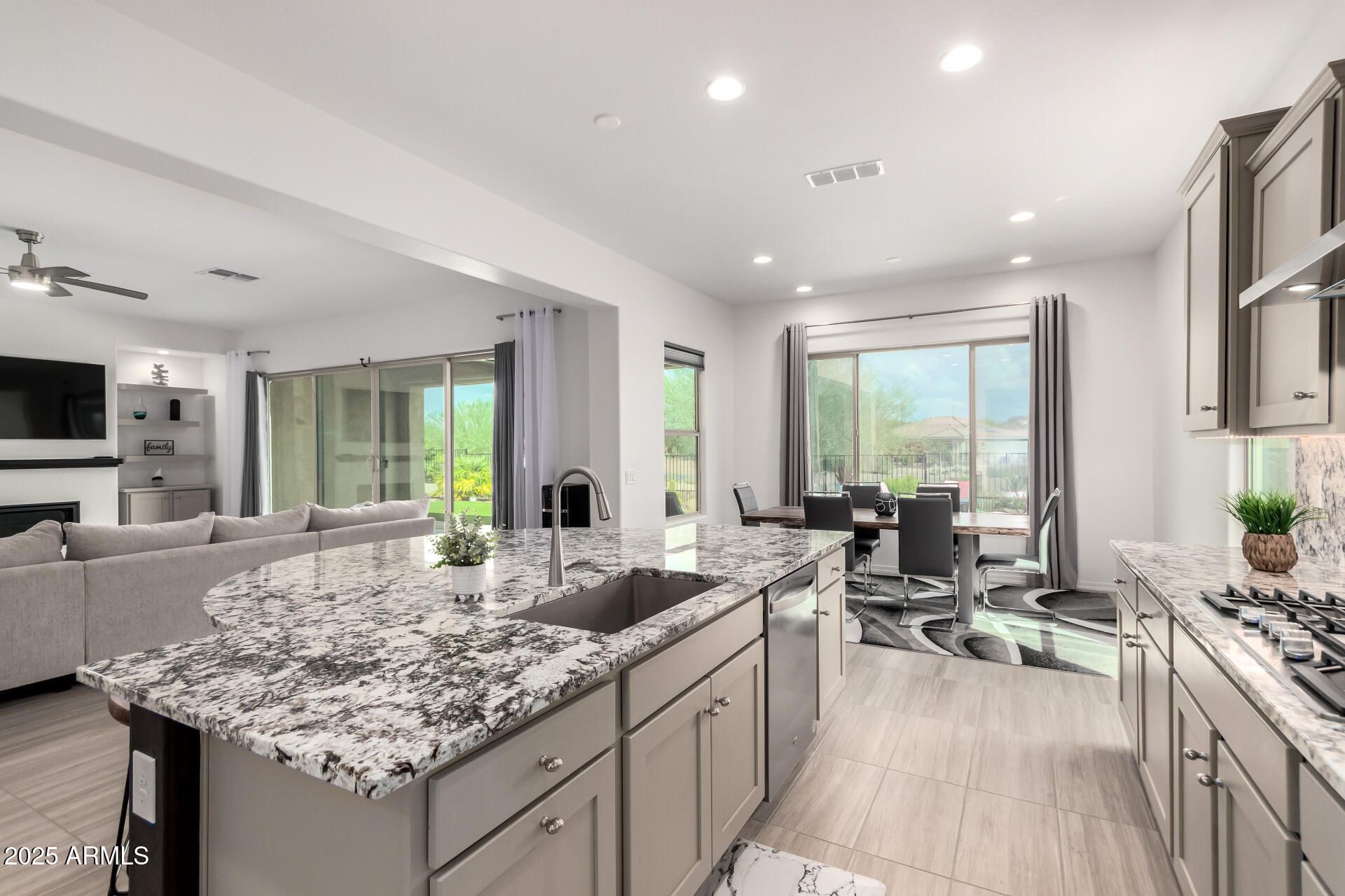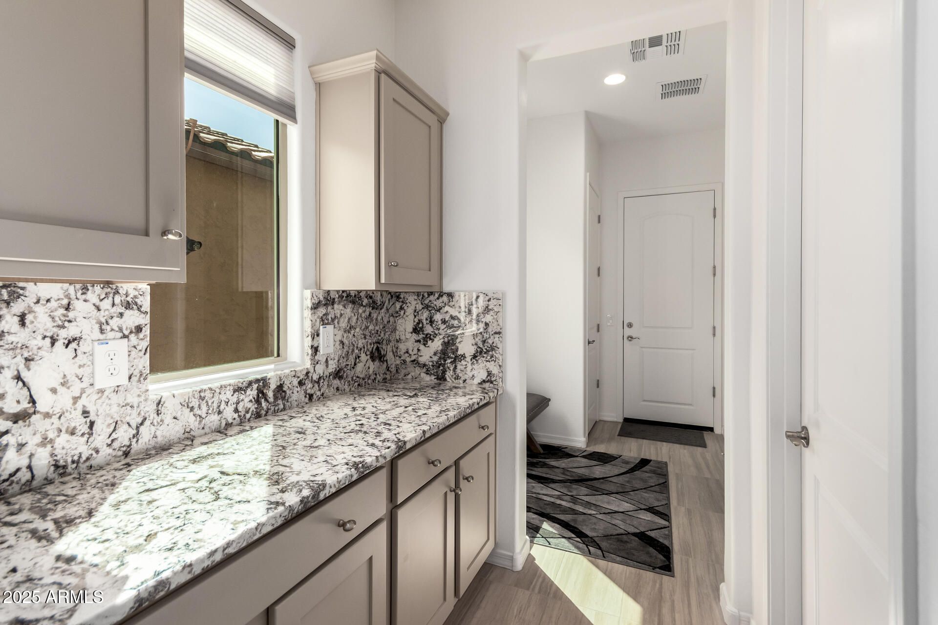 AMAZING RESORT LIVING w/ OPEN WASH VIEWS! Enter this beautifully upgraded JOURNEY thru the charming paver courtyard w/ ornate doors into this smartly designed home w/ open floor plan & AMAZING kitchen! The Great Room w/ cozy fireplace, built ins & center sliding door leads to extended paver patio...fully fenced w/ turf, lush landscaping & SERENE views of the WASH to enjoy w/ family & friends! Kitchen accents w/Granite counters/backsplash, staggered shaker cabinets, gas cooktop--SS appliances, Butler's Pantry & walk in pantry. The Primary Suite features luxurious tiled walk in shower w/ granite dbl vanities & walk in closet. Guest quarters provide privacy for all to enjoy! TWO CAR + CART GARAGE, epoxied floors & service door. *BONUS*FULLY FURNISHED! Ready for quick move-in before winter!! Sun City Anthem at Merrill Ranch offers a 48,000 SF recreation center w/ craft rooms for quilting, pottery, glass works, jewelry & crafts, spacious ballroom w/ stage for dancing, theatrical productions, concerts & more. PLUS full gym, work out rooms, indoor lap pool & spa, walking track, cafe area, card rooms, poker tables, pool table, ping pong table, business center, class room for interesting seminars! Troon Poston Butte Golf Course is one of the nicest in the area. Sun City offers Pickleball, Tennis, Bocce Ball, Horseshoes, Shuffleboard, clubs for all activities.......LIVE WHERE THE SURROUNDINGS DELIGHT, INSPIRE & CHALLENGE YOU!
