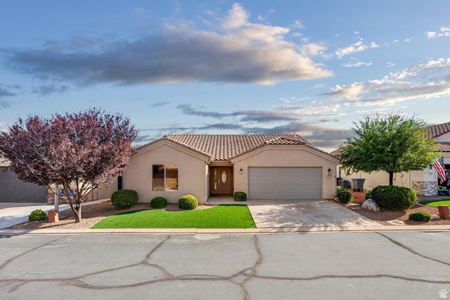 Welcome home in the beautiful, world-class SunRiver community of St. George! This bright and inviting 2-bedroom home also includes a spacious office. The kitchen has been thoughtfully updated with quartz countertops, a new sink and fixtures, new dishwasher, new disposal, and extra pantry space. Appliances include the refrigerator, washer/dryer, water softener, and R.O. water system. Outside, the private, fully fenced backyard is perfect for relaxing, featuring two patios for morning coffee or evening gatherings. Living here means enjoying the premier active adult lifestyle SunRiver is known for, with access to dozens of clubs, a pottery studio, woodworking shop, clubhouse, pools, tennis, pickleball, golf, a restaurant, and so much more.