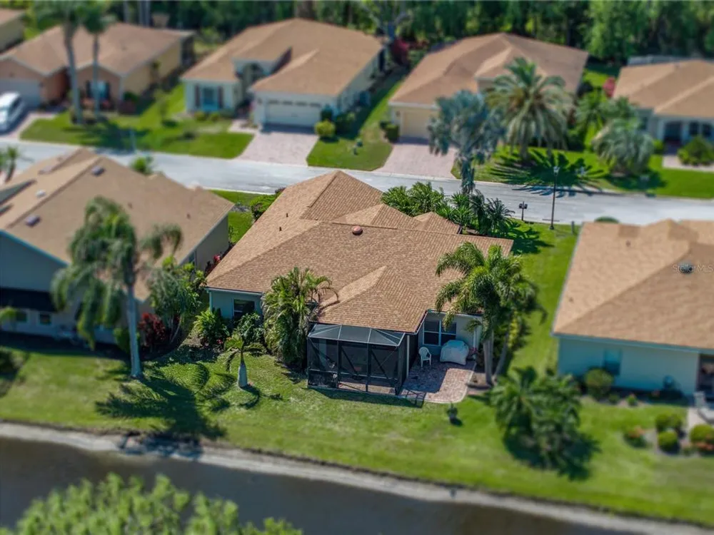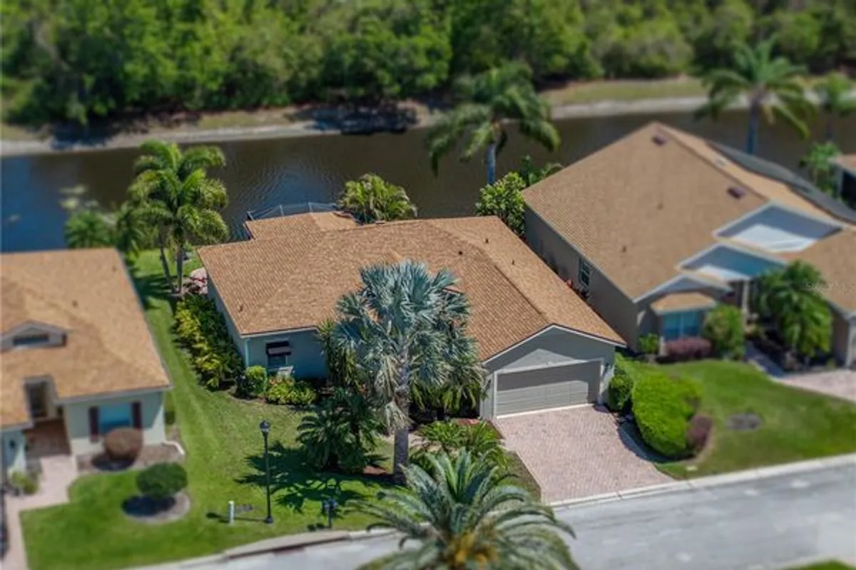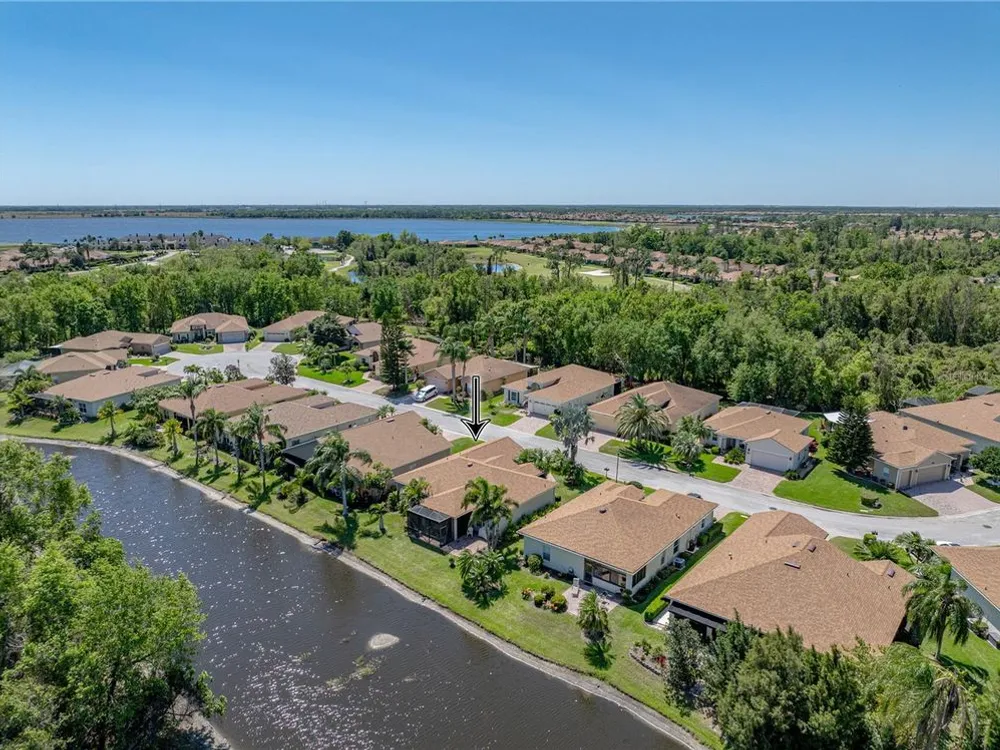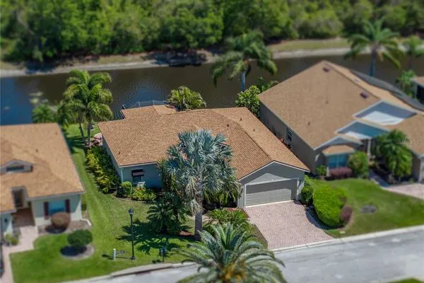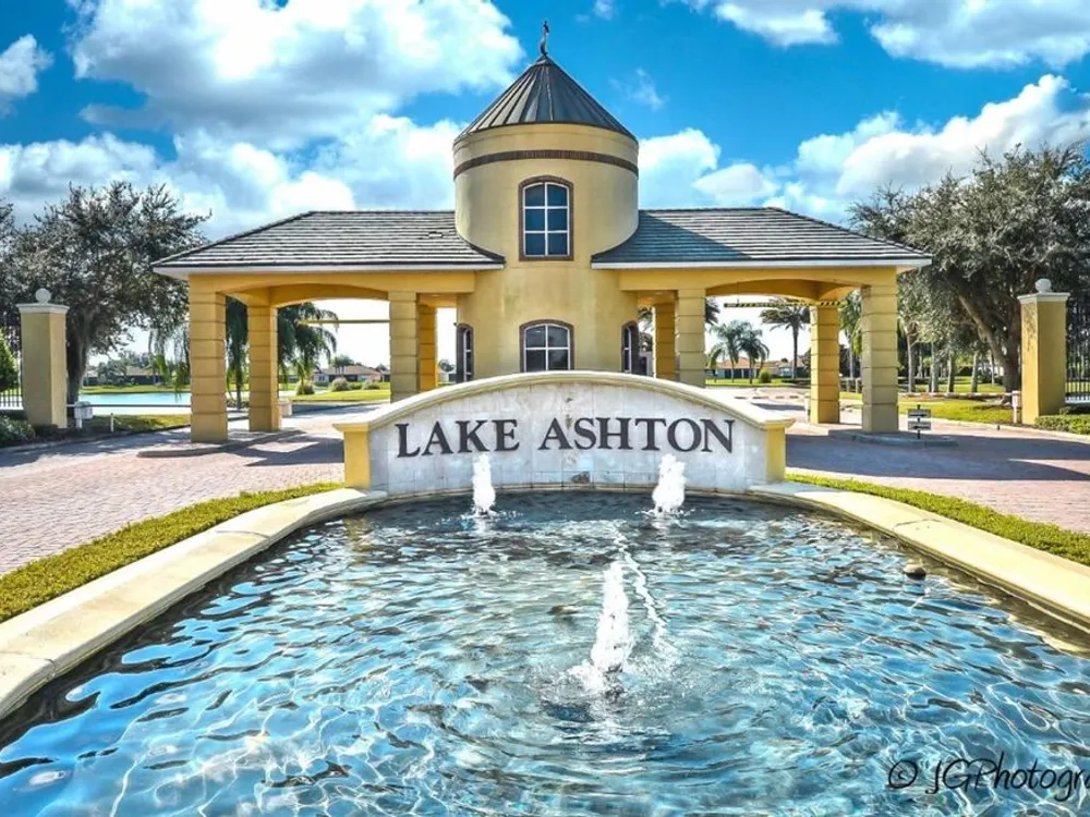 THE CDD BOND IS FULLY PAID on this well-maintained, ready-to-move-in, "snowbird-owned" Devon floor plan home. But what sets this Lake Ashton Golf Club home apart is its location on a pond-frontage lot with a nature preserve view and a street that ends at a cul-de-sac. Upon arrival, the outstanding curb appeal catches your eye. The exterior of this home was painted just last year. The roof was replaced in 2021, something the insurance companies love. The lush landscaping, which includes six different varieties of palms, is "watered" by an automated irrigation system. The paver walk and driveway add to the beauty. The covered front porch protects the entry, which adds another place to enjoy the great Florida weather. The full-length storm door has a screen that allows for cross-ventilations. The foyer gets natural light from the front door sidelight. The dining and living room space combination is very flexible and great for entertaining. The dining room area is at the front of the home and has a large double window. The living room has a ceiling fan with light, ceramic tile flooring and a triple slider that opens to the covered, screened, and birdcage lanai. In a bay window area adjacent to the kitchen is the dinette/breakfast space. A third dining option is the handy snack bar. The kitchen features ample cabinetry, beveled edge counters, and newer Whirlpool stainless steel appliances, including a French door refrigerator with ice and water in the door. The closet pantry provides valuable storage. The laundry room access is at the west end of the kitchen and doubles as the mud room for the attached 2-car garage. The laundry room has a handy utility sink and cabinetry. The washer (new in 2021) and dryer stay for the new owners. The garage features a pull-down attic ladder, service door, window, and door opener. This is a split-floor plan home with the guest wing on the south side with the primary suite filling the north wing. The guest wing has two bedrooms and a guest bath. Both bedrooms have ceiling fans and reach-in closets. The 3rd bedroom can also be a home office/den, with a double bi-fold door that opens to the dinette/kitchen area. The guest bath is in the hallway that connects the two bedrooms and has a combination tub/shower with a ceramic tile surround. The primary suite has a large bedroom with quality carpeting, a ceiling fan with light, a double window, and a pocket door that can close off the bedroom area from the bath. The hallway that connects the bedroom from the bath is home to a large walk-in closet and a separate reach-in closet. The bath has been recently remodeled with a comfort height elongated stool, plank ceramic tile flooring, and a revamped shower stall with a tile surround. The bi-level vanity has two sinks and a make-up space. At the rear of this home is a covered and screened lanai with an extended birdcage. The lanai has paver flooring, a ceiling fan with light, and a speaker from the home's sound system. Outside of the birdcage is a sizeable open paver patio. The view from this lanai area is spectacular! What a great place to observe the flora, fauna, and wildlife of the pond and nature preserve. It doesn't get any better! The home has many special features, including fresh paint in the interior, ceramic tile flooring throughout most of the home, and upgraded carpet in 2 of the 3 bedrooms. The air conditioning system was replaced in 2020. Some of the furnishings are available. This is a must-see home.