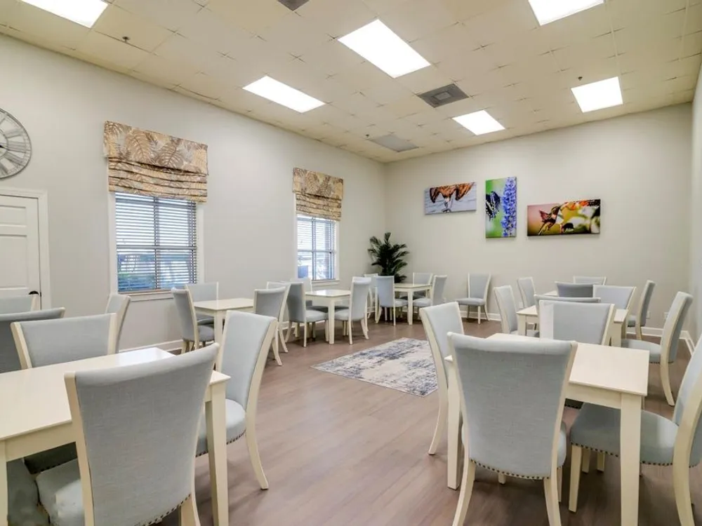 - Ceiling Fan(s), Eat-in Kitchen, Living/Dining Room, Open Floorplan, Main Level Primary, Split Bedrooms, Thermostat, Walk-In Closet(s), Window Treatments