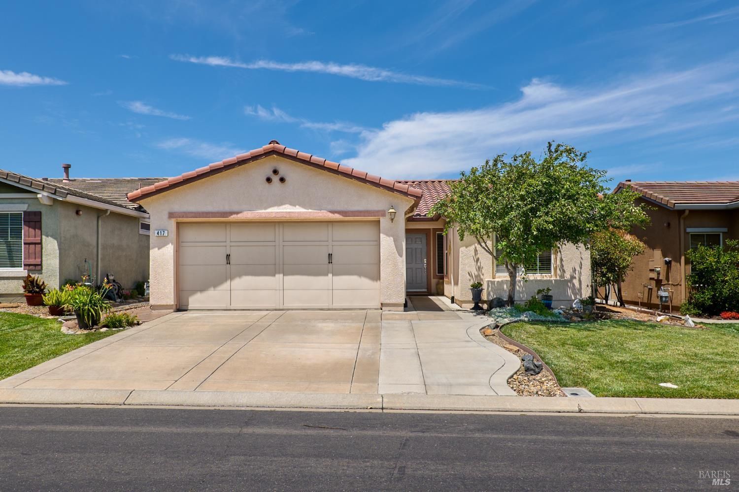 What a wonderful place to settle down and enjoy life. This Pebble Beach plan has it all. Walk into the entry and realize the space in the living room! Large enough to have a grand sectional with an opposing wall large enough for a huge TV while not taking up much space in the room itself. There are two bedrooms and two bathrooms, plus a den/office/craft room. The possibilities are yours! There is a dining area with bay window, u shaped kitchen with counter area for bar stools, stainless steel appliances and upgraded cabinets Nice light colored tile flooring through majority of home with laminate wood flooring in bedrooms and den. The primary bathroom is upgraded with marble in shower and vanities in a rich yummy brown. Indoor laundry includes washer and dryer. Step outside of either patio door onto a beautifully finished patio with Aluma-wood type cover to extend usable living space. Custom concrete patio enhances the patio even more. This home in Trilogy Rio Vista is a 55+ community with many amenities. While it is built around an 18-hole golf course, HOA dues do not include golf play.