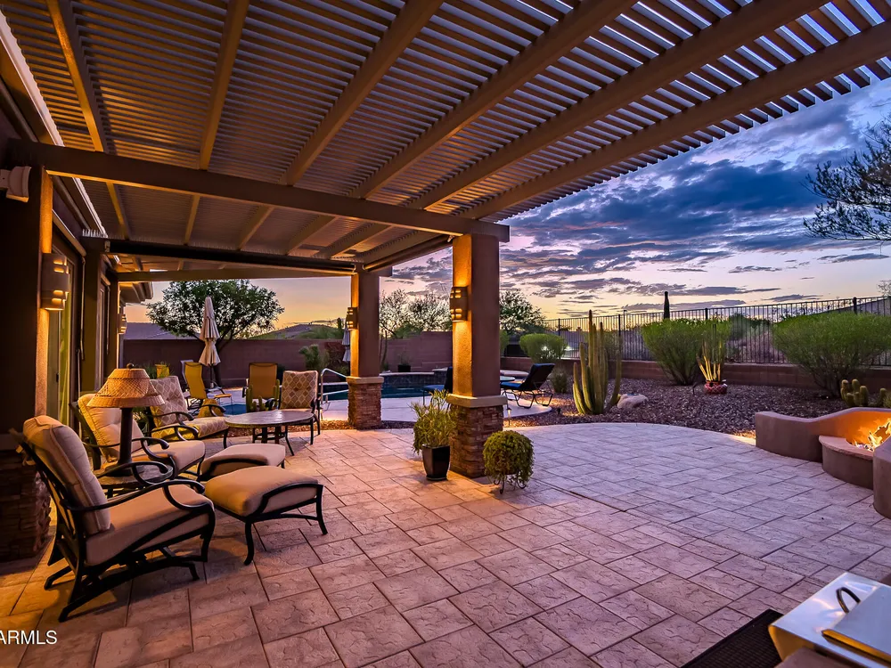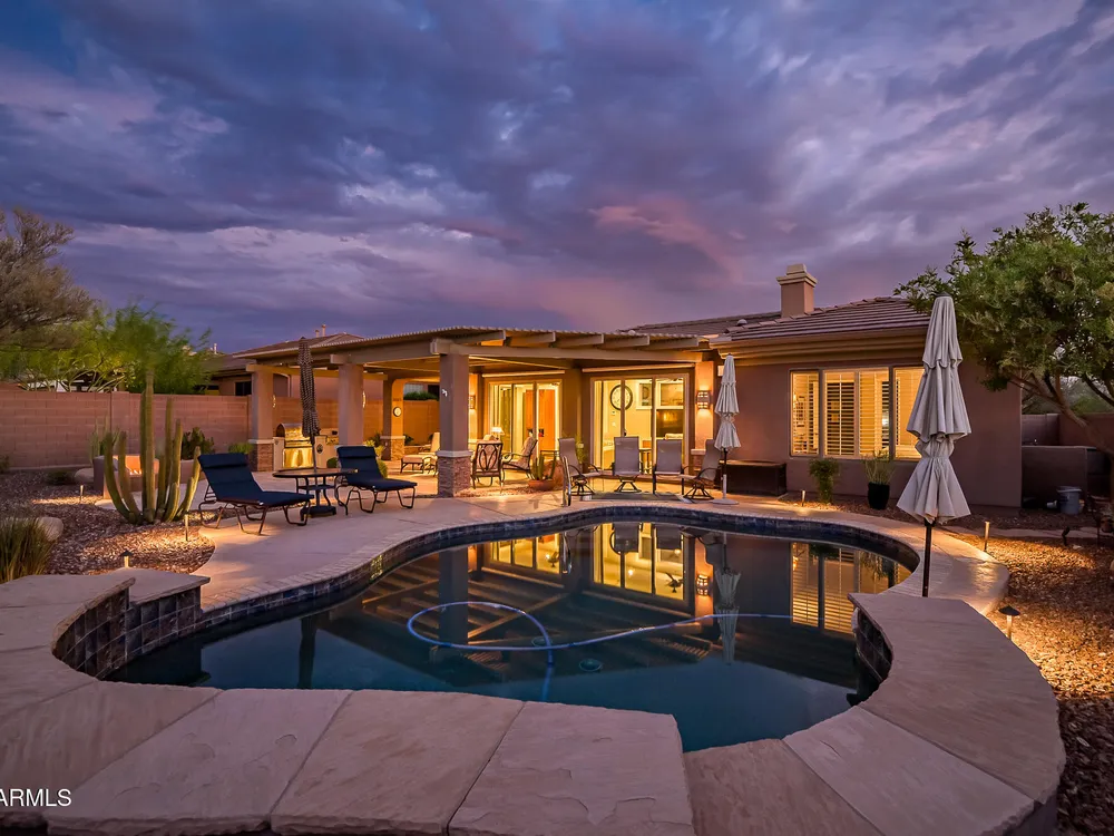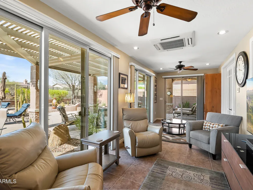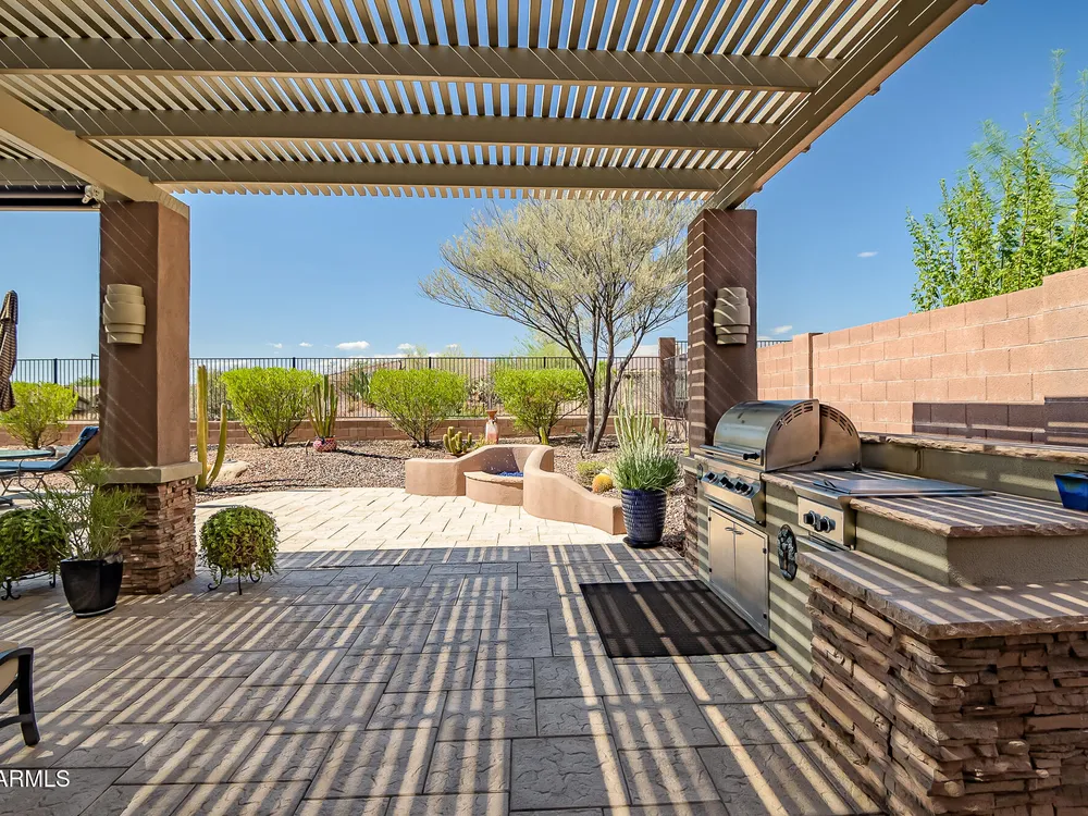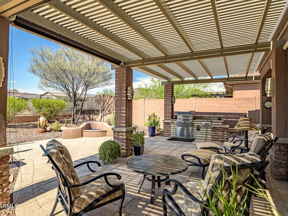 Experience resort-style living in Anthem Golf & Country Club with this stunning home designed for comfort and entertaining. The updated gourmet chef's kitchen boasts granite countertops, a Wolf gas range, Sub-Zero refrigerator, wine refrigerator, and wall oven, all seamlessly connected to the open dining and family room. A climate-controlled sunroom extends your living space year-round, while a separate-entry casita provides privacy for guests. Enjoy a sparkling pool, outdoor kitchen, fire pit, and extended pergola-covered patio perfect for gatherings. A fully prepaid solar lease adds efficiency. Community amenities include 2 country clubs, restaurants, fitness centers, pools, tennis, pickleball, and bocce ball—offering the ultimate lifestyle.