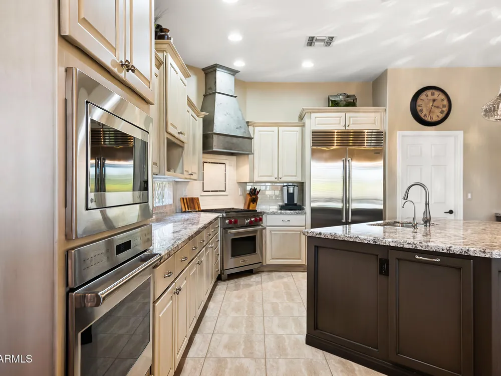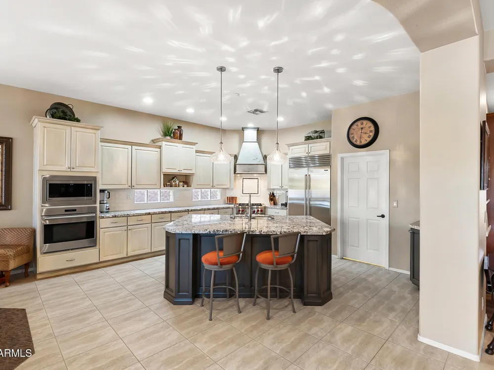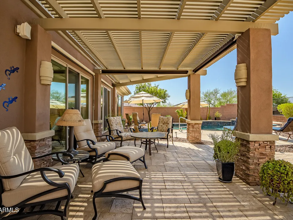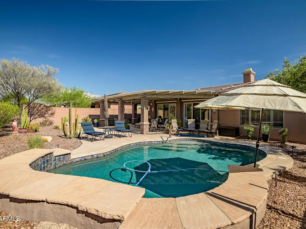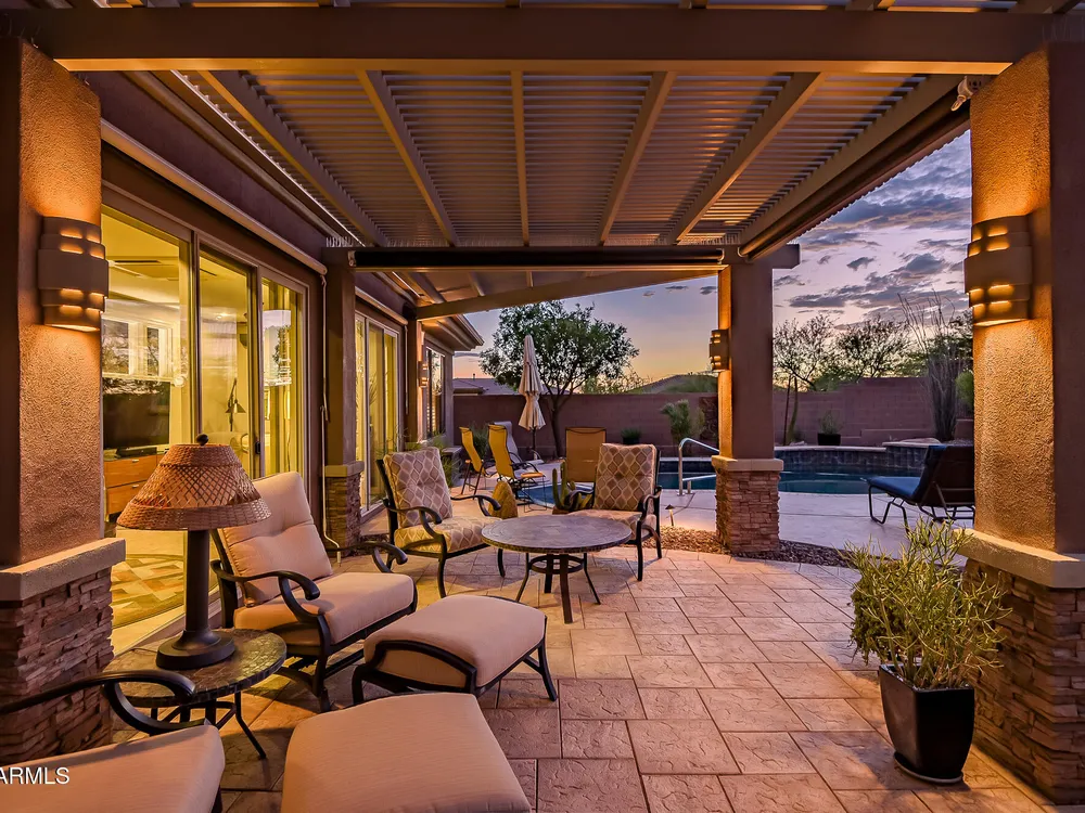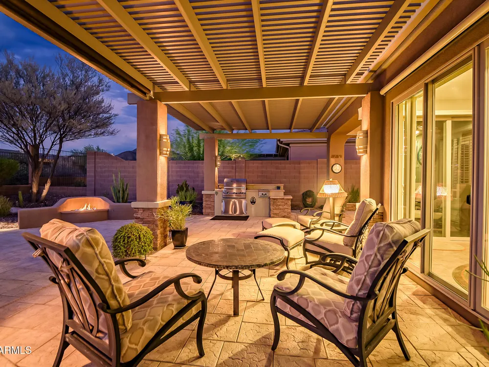 Experience resort-style living in Anthem Golf & Country Club with this stunning home designed for comfort and entertaining. The updated gourmet chef's kitchen boasts granite countertops, a Wolf gas range, Sub-Zero refrigerator, wine refrigerator, and wall oven, all seamlessly connected to the open dining and family room. A climate-controlled sunroom extends your living space year-round, while a separate-entry casita provides privacy for guests. Enjoy a sparkling pool, outdoor kitchen, fire pit, and extended pergola-covered patio perfect for gatherings. A fully prepaid solar lease adds efficiency. Community amenities include 2 country clubs, restaurants, fitness centers, pools, tennis, pickleball, and bocce ball—offering the ultimate lifestyle.