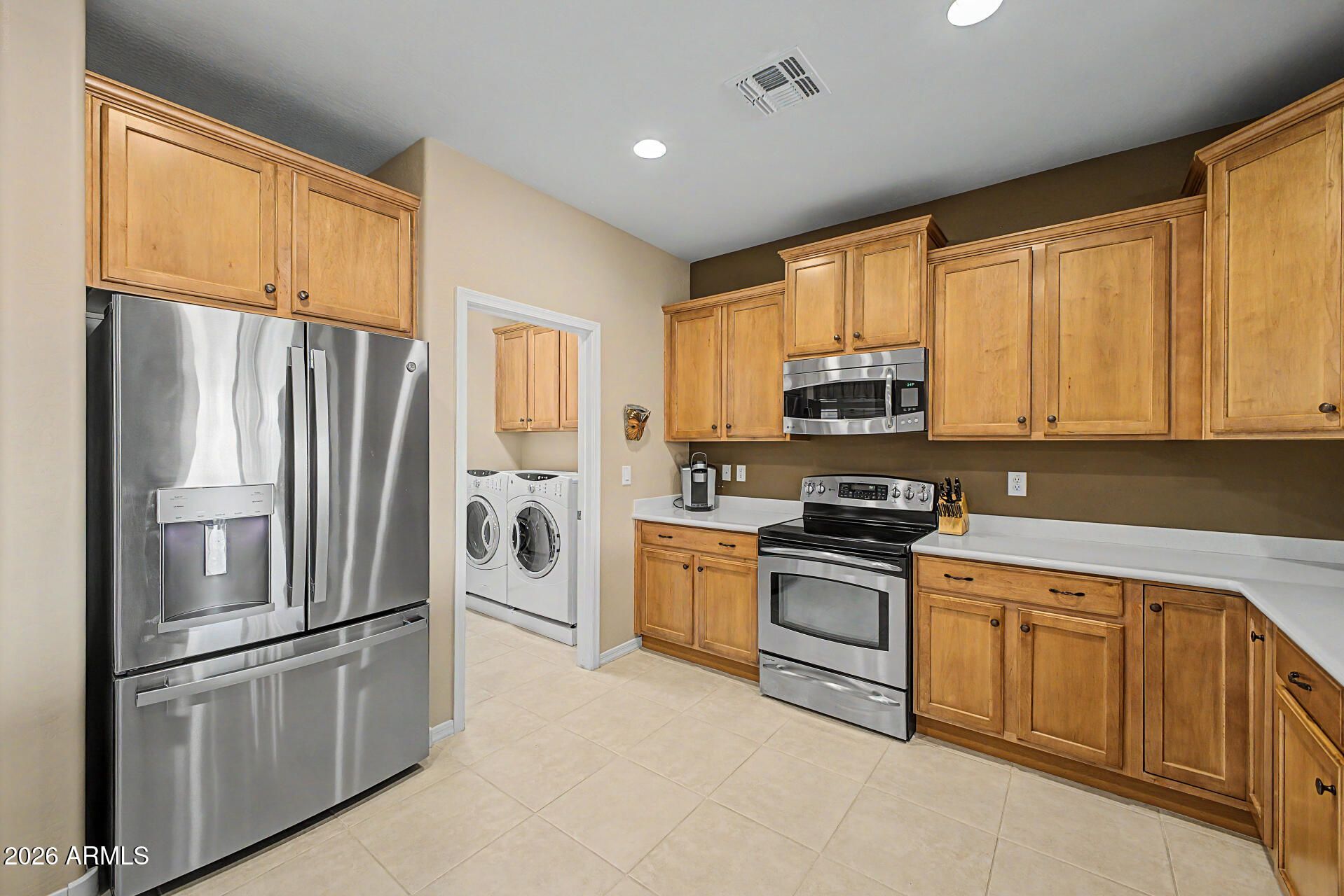 - Dryer, Washer, Refrigerator, Built-in Microwave, Dishwasher, Disposal, Electric Range
