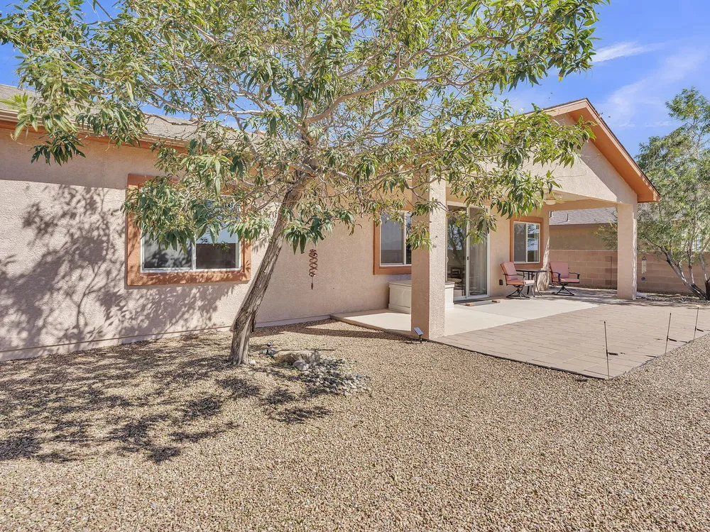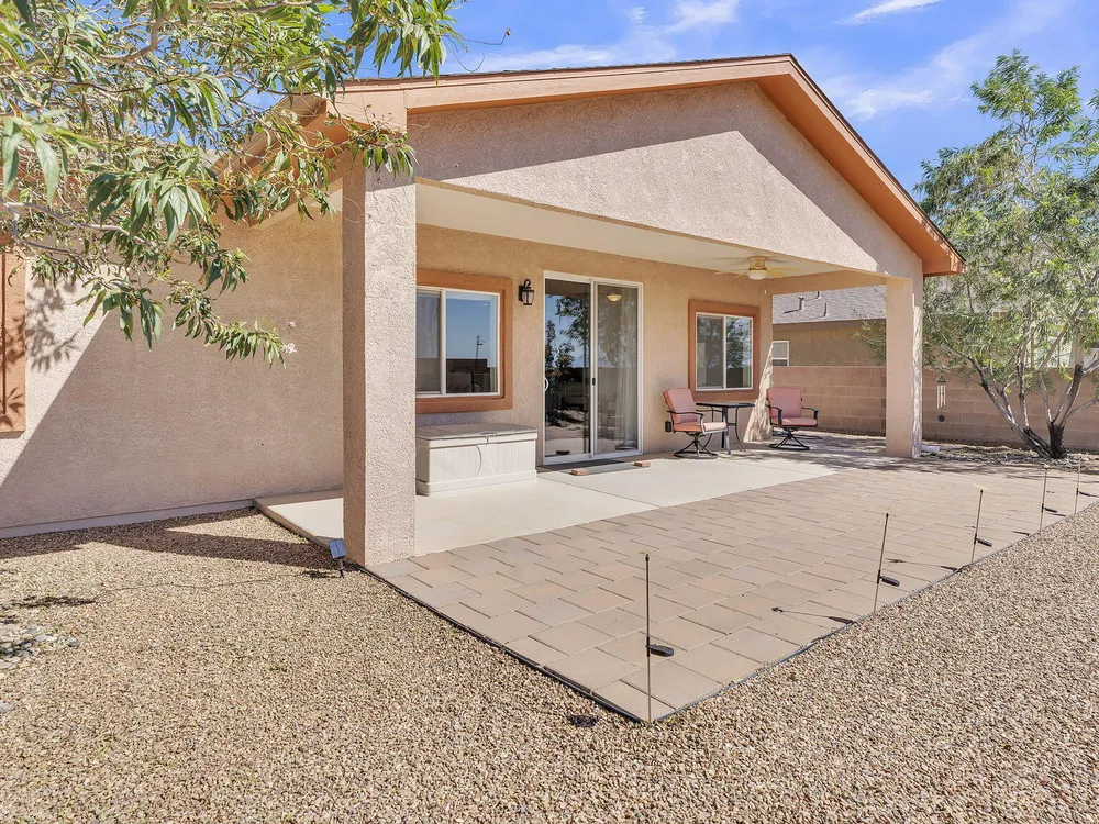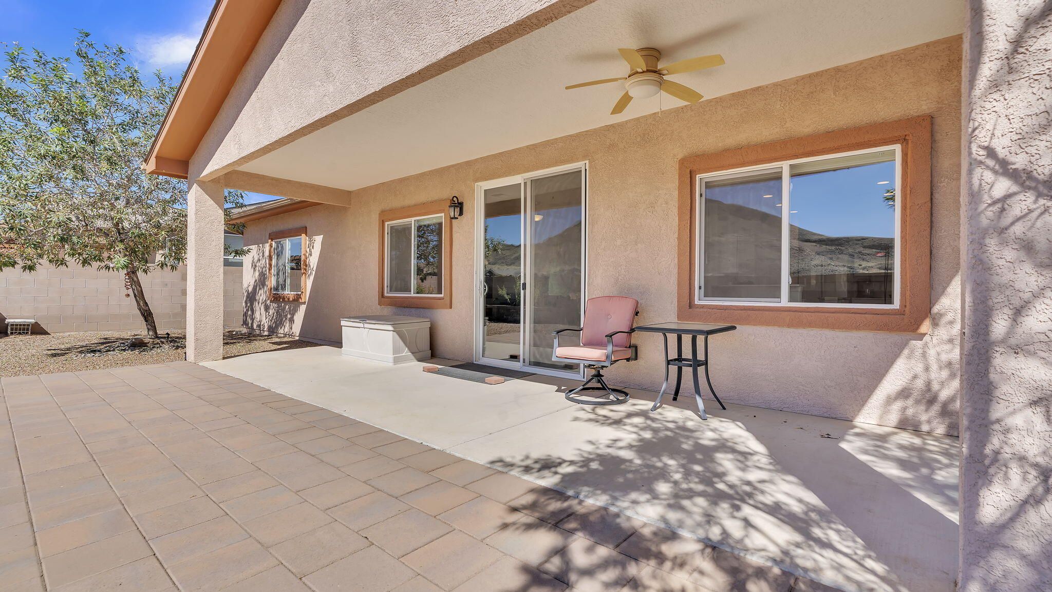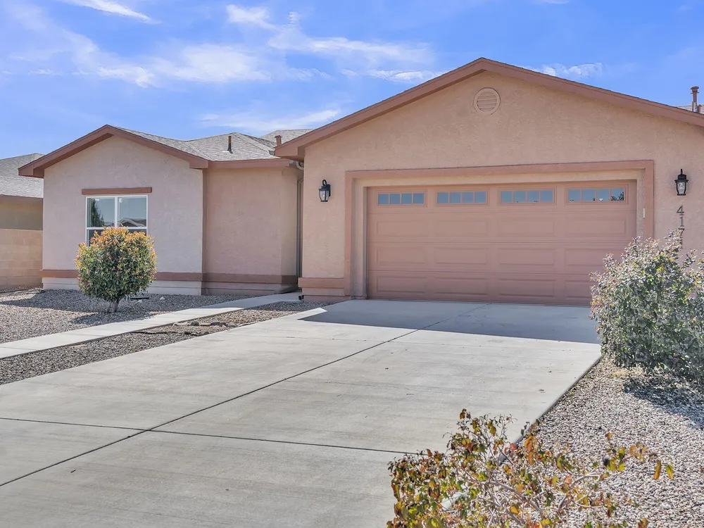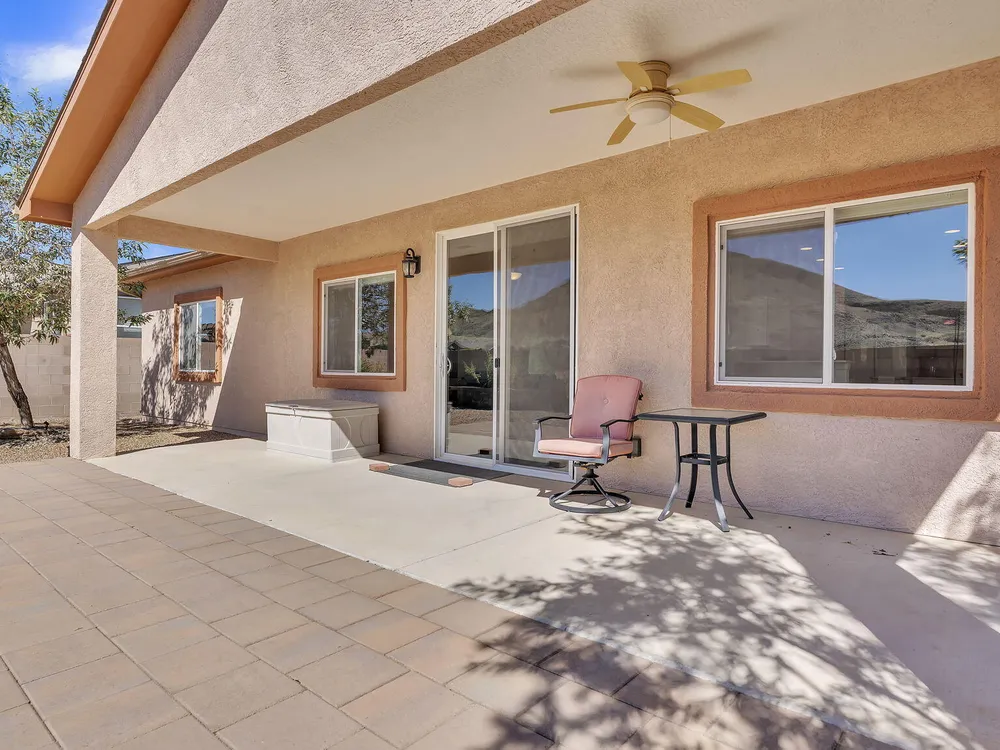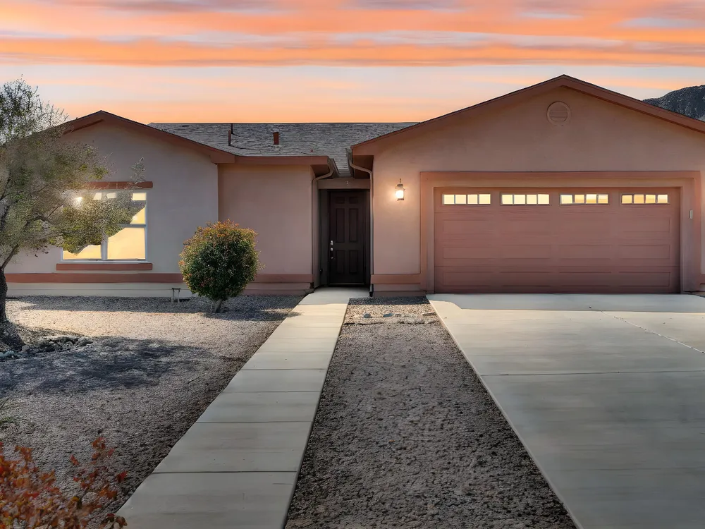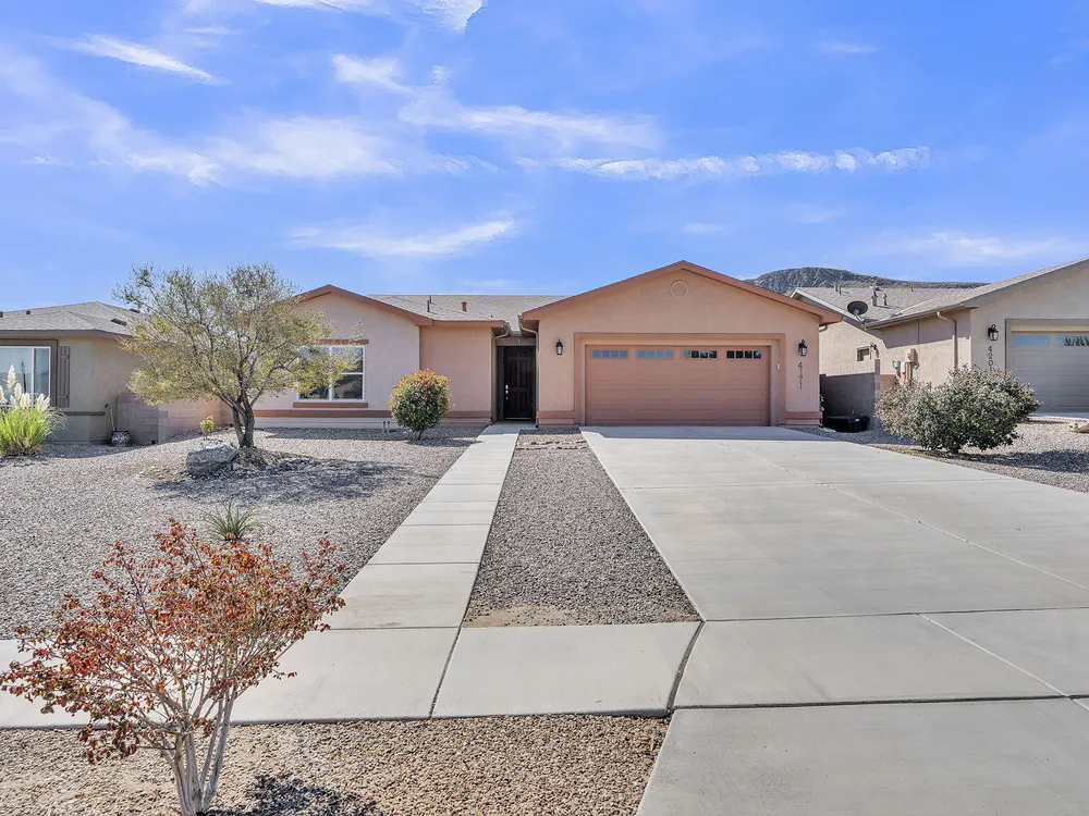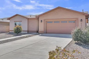 VIEWS!!! Welcome to this beautifully maintained 3 bedroom, 2 bath, 1949 Sq Ft home offering both comfort and style in the highly sought after Jubilee 55+ master planned community. Designed for easy living, this home features an open-concept floor plan filled with natural light, a spacious kitchen with modern finishes, and a 2 car oversized garage, perfect for storage. Relax on your private patio and take in the breathtaking, unobstructed views of El Cerro de Los Lunas, creating a backdrop of dramatic sunsets and endless New Mexico skies. Additional home upgrades include gutters, in floor outlets in the living room, upgraded blinds, and grab bars for safety in bathrooms. Residents of Jubilee enjoy a resort-like lifestyle with access to a clubhouse, fitness center, pool, trails