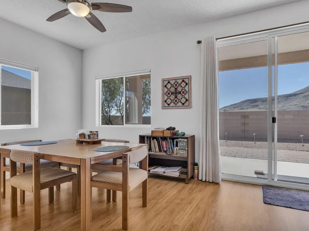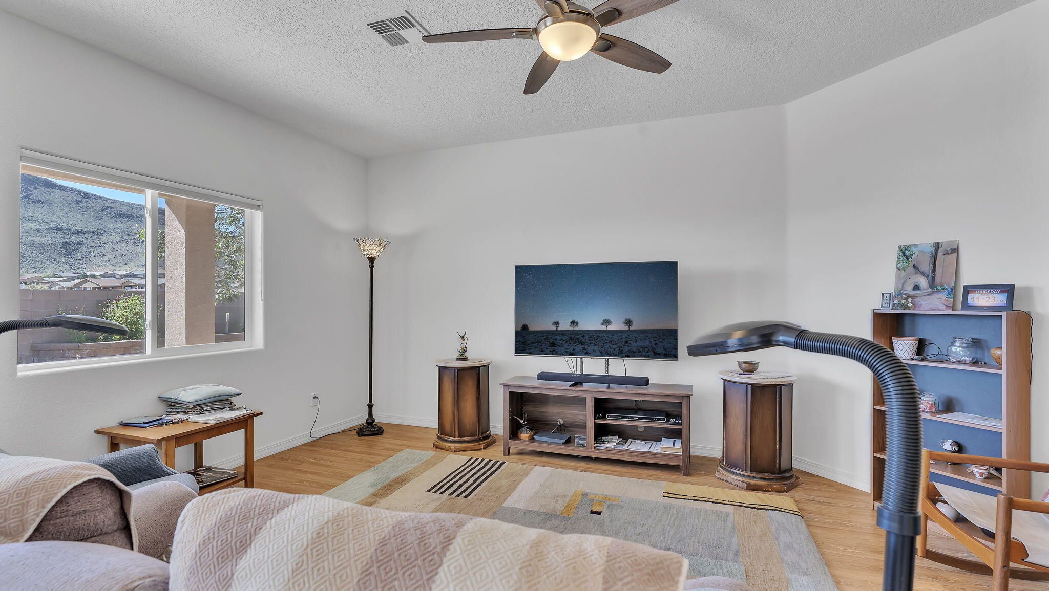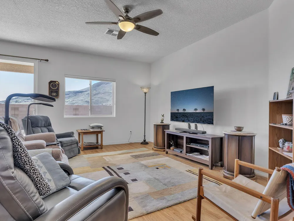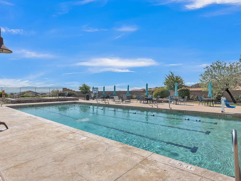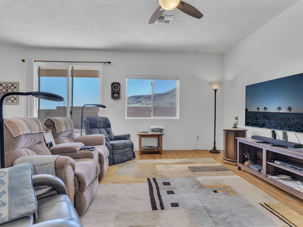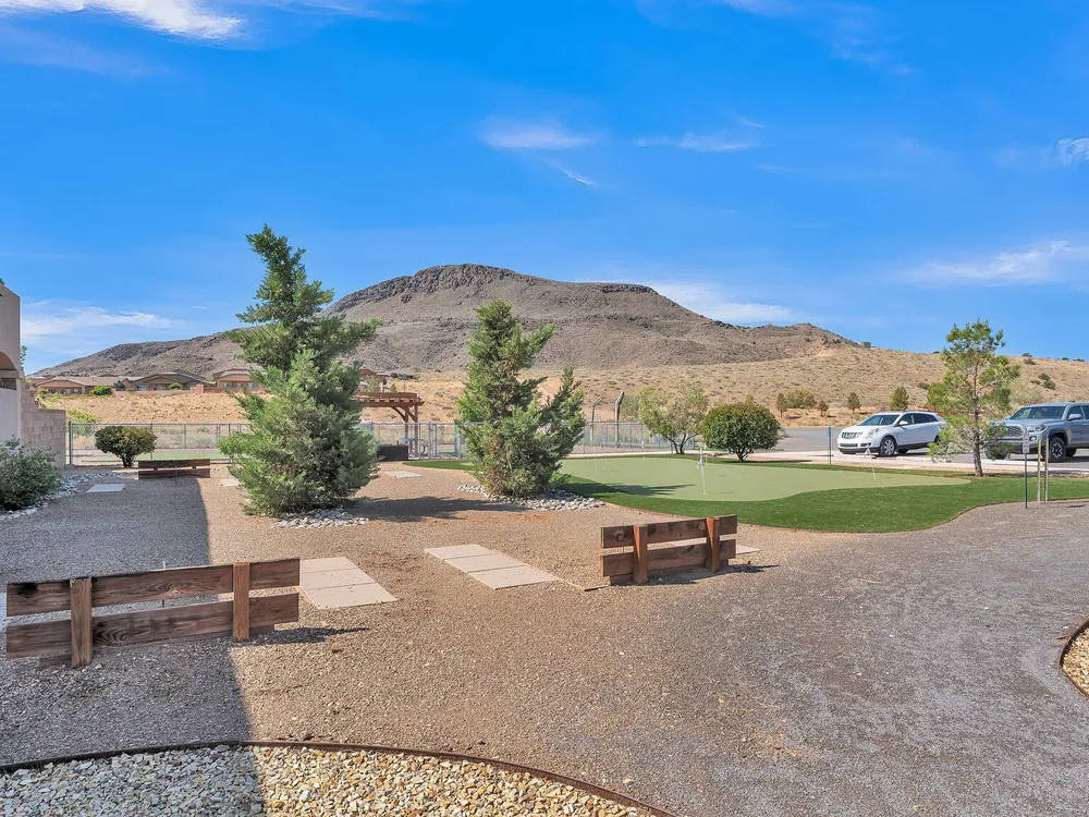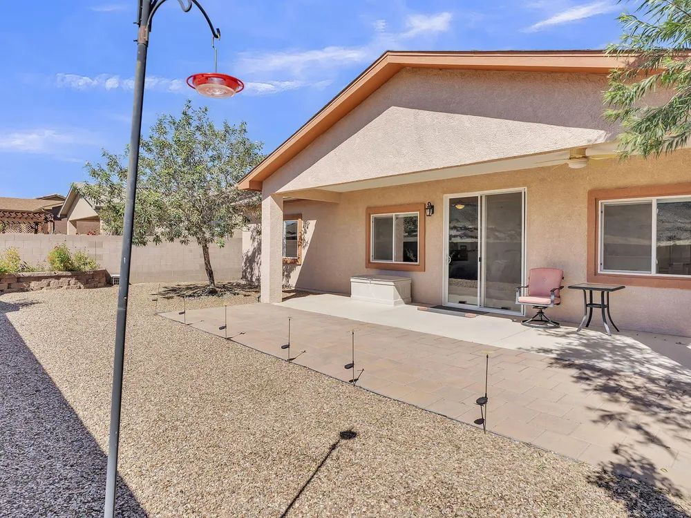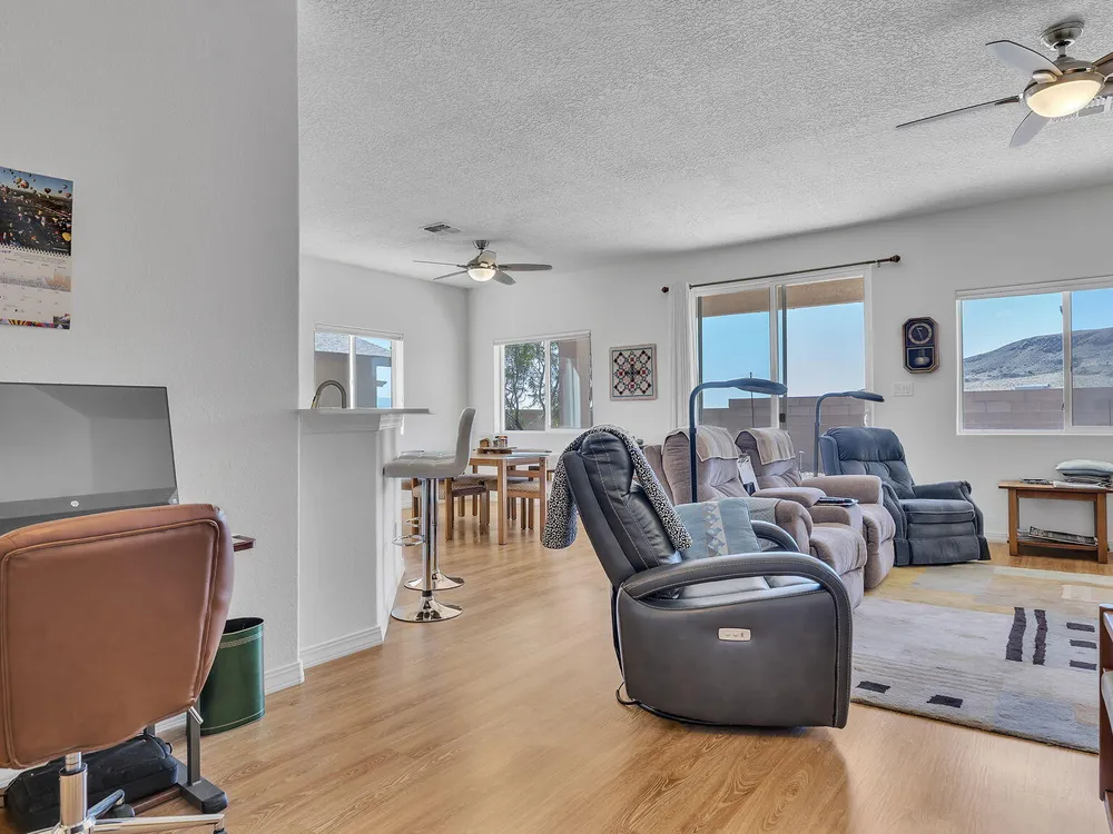 VIEWS!!! Welcome to this beautifully maintained 3 bedroom, 2 bath, 1949 Sq Ft home offering both comfort and style in the highly sought after Jubilee 55+ master planned community. Designed for easy living, this home features an open-concept floor plan filled with natural light, a spacious kitchen with modern finishes, and a 2 car oversized garage, perfect for storage. Relax on your private patio and take in the breathtaking, unobstructed views of El Cerro de Los Lunas, creating a backdrop of dramatic sunsets and endless New Mexico skies. Additional home upgrades include gutters, in floor outlets in the living room, upgraded blinds, and grab bars for safety in bathrooms. Residents of Jubilee enjoy a resort-like lifestyle with access to a clubhouse, fitness center, pool, trails