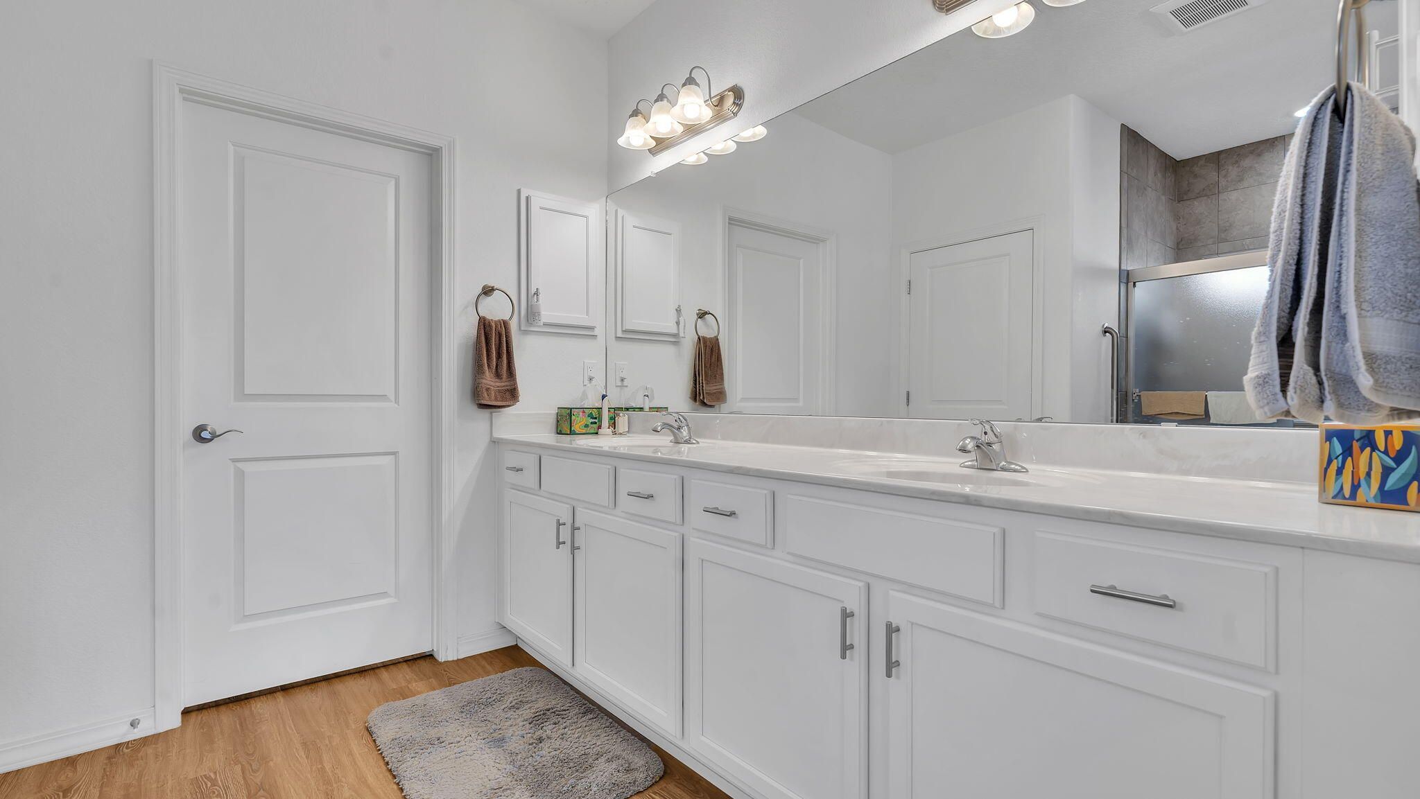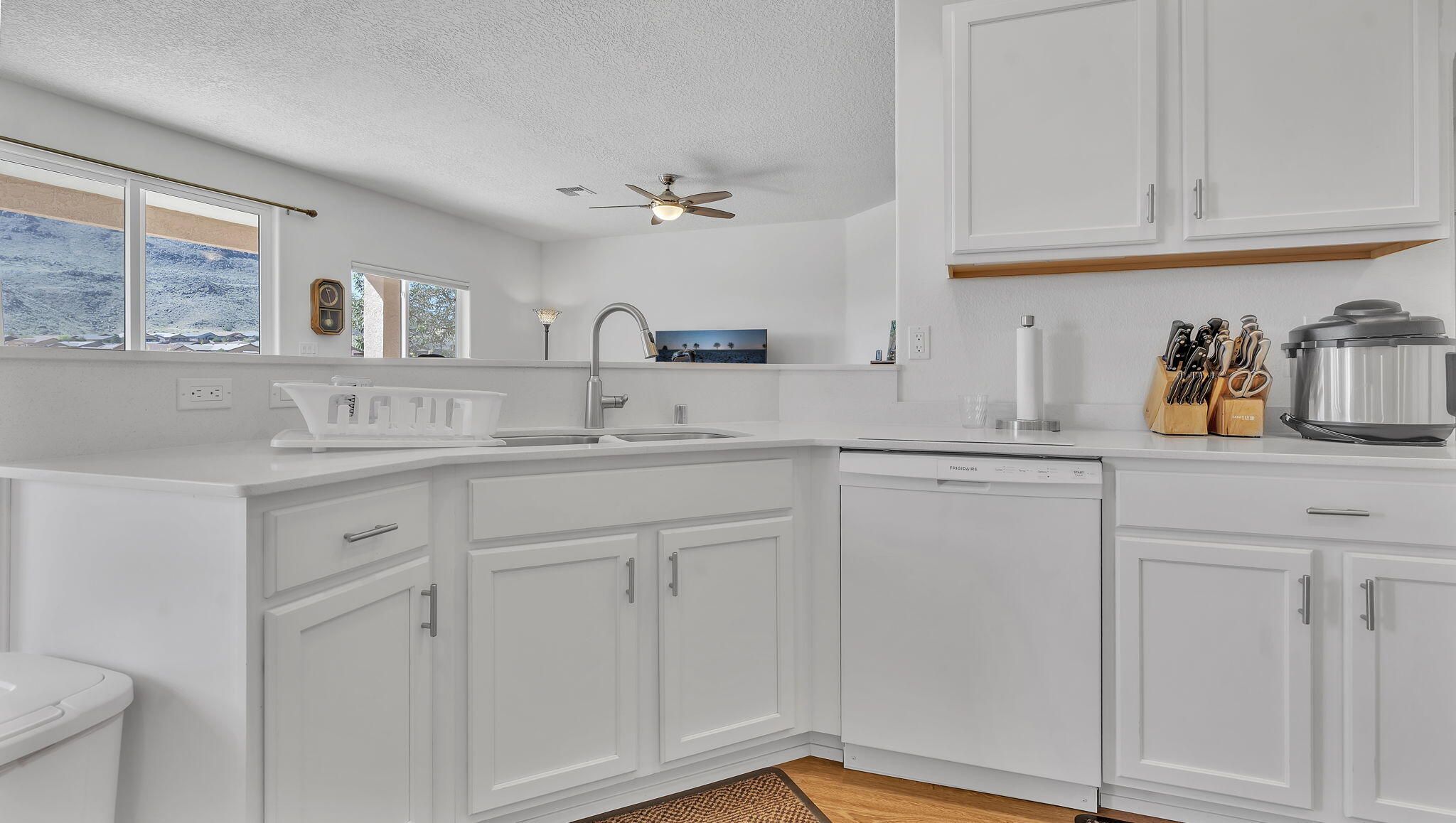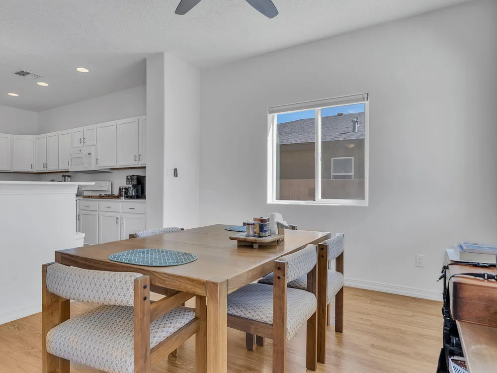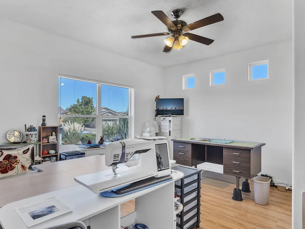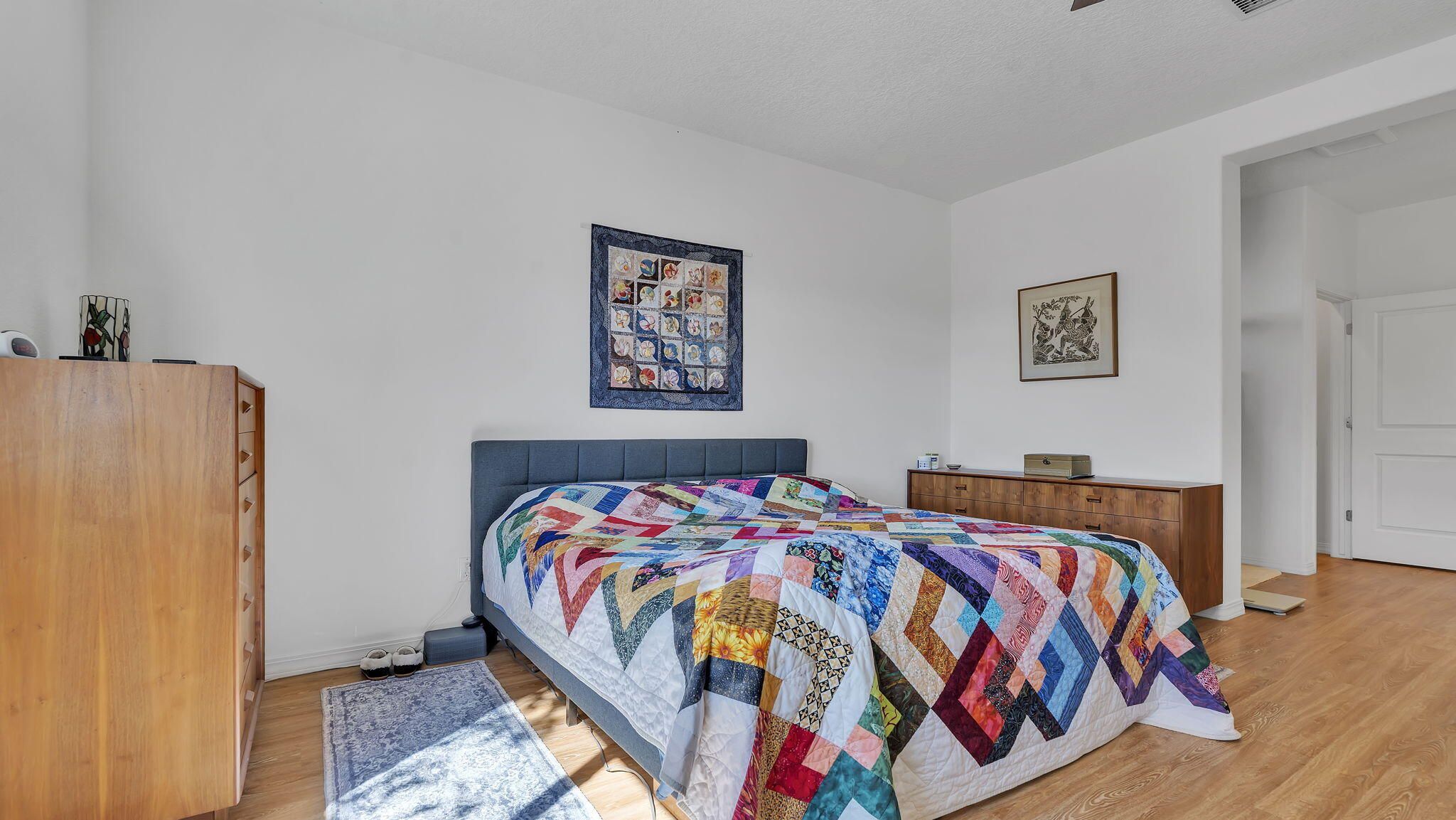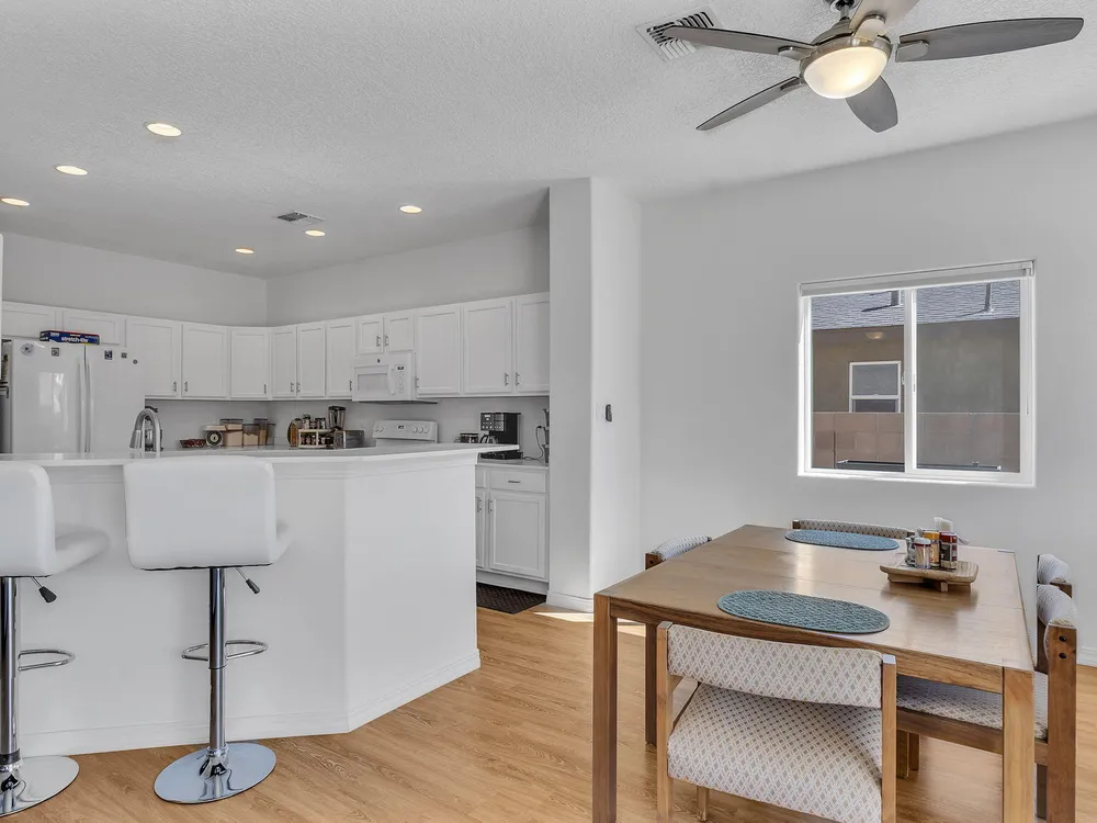 VIEWS!!! Welcome to this beautifully maintained 3 bedroom, 2 bath, 1949 Sq Ft home offering both comfort and style in the highly sought after Jubilee 55+ master planned community. Designed for easy living, this home features an open-concept floor plan filled with natural light, a spacious kitchen with modern finishes, and a 2 car oversized garage, perfect for storage. Relax on your private patio and take in the breathtaking, unobstructed views of El Cerro de Los Lunas, creating a backdrop of dramatic sunsets and endless New Mexico skies. Additional home upgrades include gutters, in floor outlets in the living room, upgraded blinds, and grab bars for safety in bathrooms. Residents of Jubilee enjoy a resort-like lifestyle with access to a clubhouse, fitness center, pool, trails