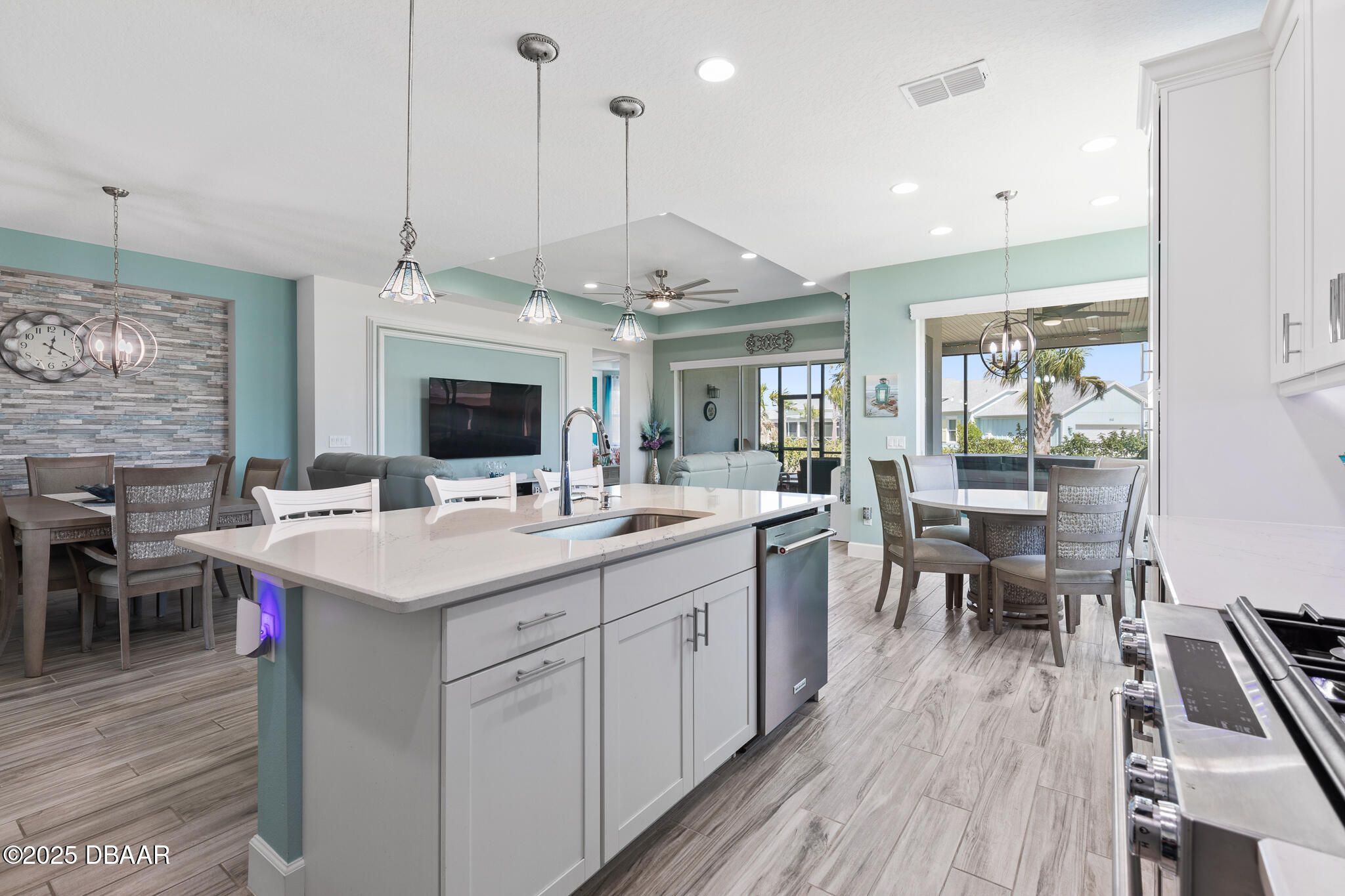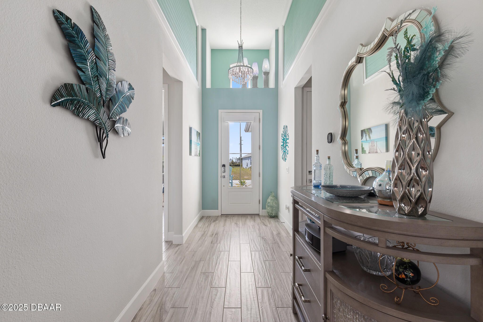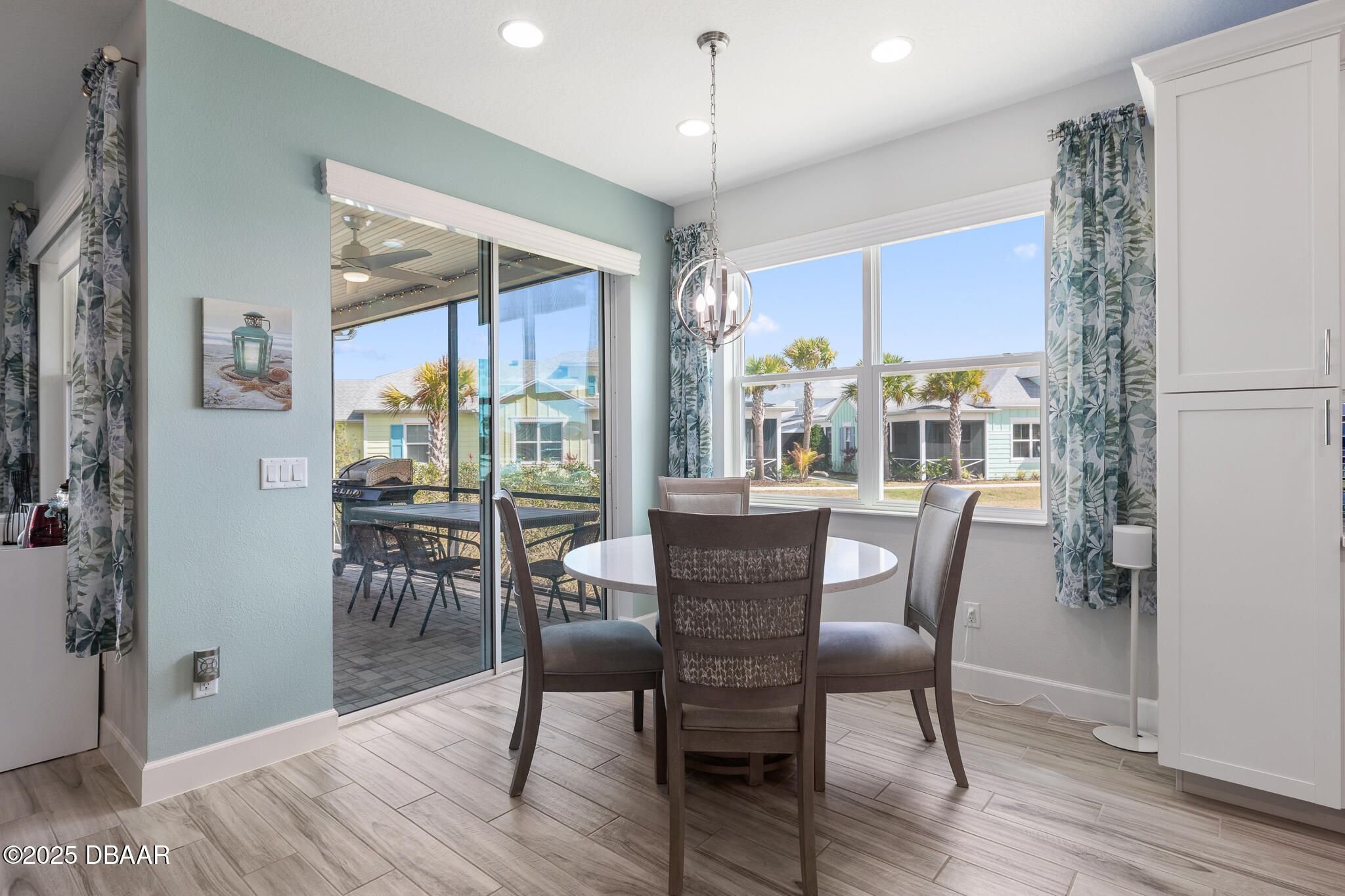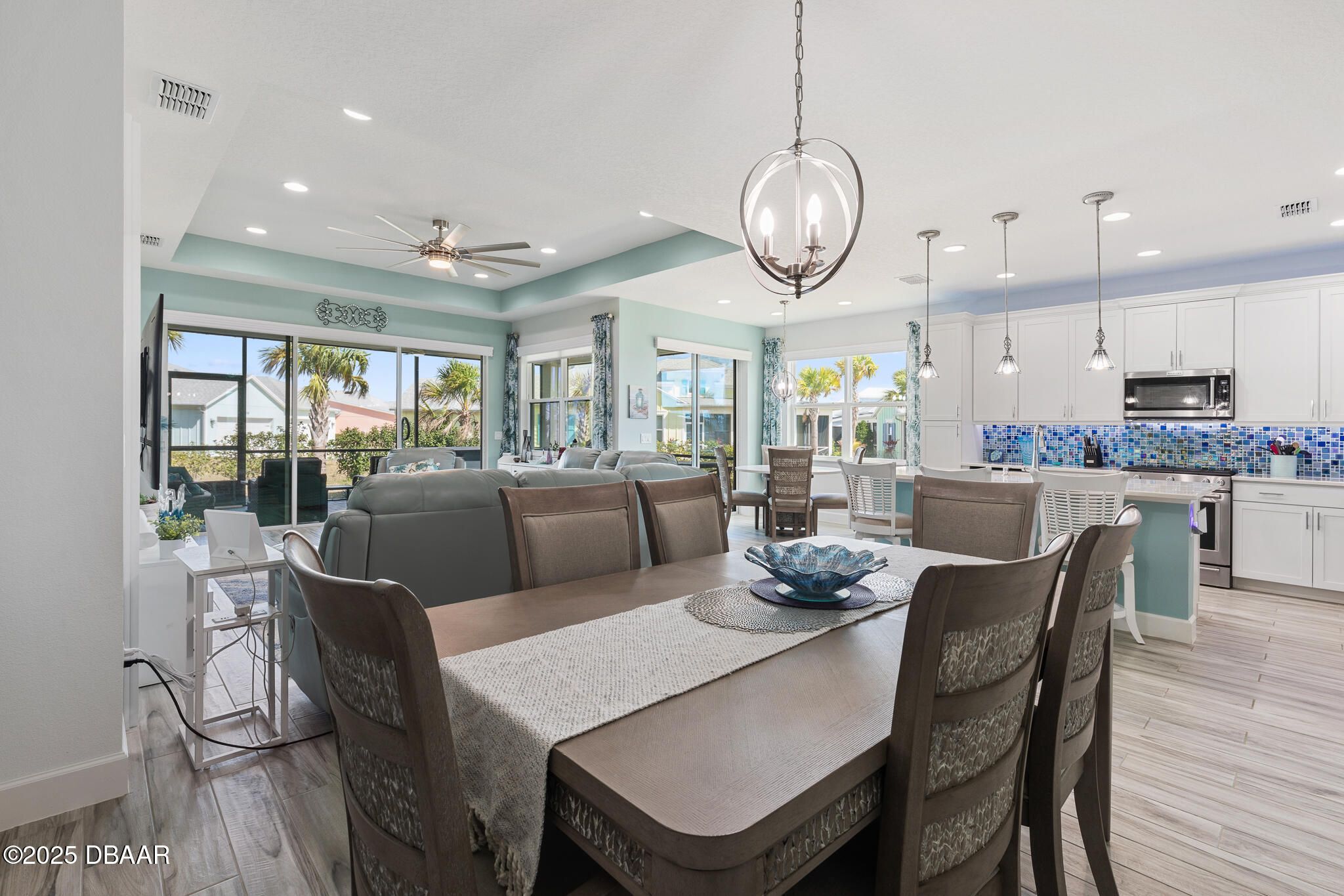 Unique location & expansive feel to the lot w/ green space. Escape to Paradise in this RARE 3 BD 3 BA BREEZE Model Home. Upgrades galore beginning with shiplap & paint accented foyer, key drop with upper and lower cabinets plus tile backsplash. Enter the beautifully upgraded kitchen,quartz countertops, glass tile backsplash, white cabinetry, KitchenAid S/S appliances, beverage fridge, large island w/ 3 designer pendants & breakfast nook. Inviting Great Room has accent trimmed wall, fireplace, recessed lighting, 9 blade fan, cornices & electronic controlled shades over sliders & windows. Beautiful primary bedroom, wave detail wall, custom walk-in closet & large ensuite spa like bathroom. Relax on your screened lanai in the Hot Springs hot tub viewing the pond! Rainsoft Water filtration, gas drop on lanai & widened driveway. 5 star amenities feature paradise pool, private beach club, restaurant & bar, fitness center, theatre, card rooms, woodworkshop, gated community & so much more