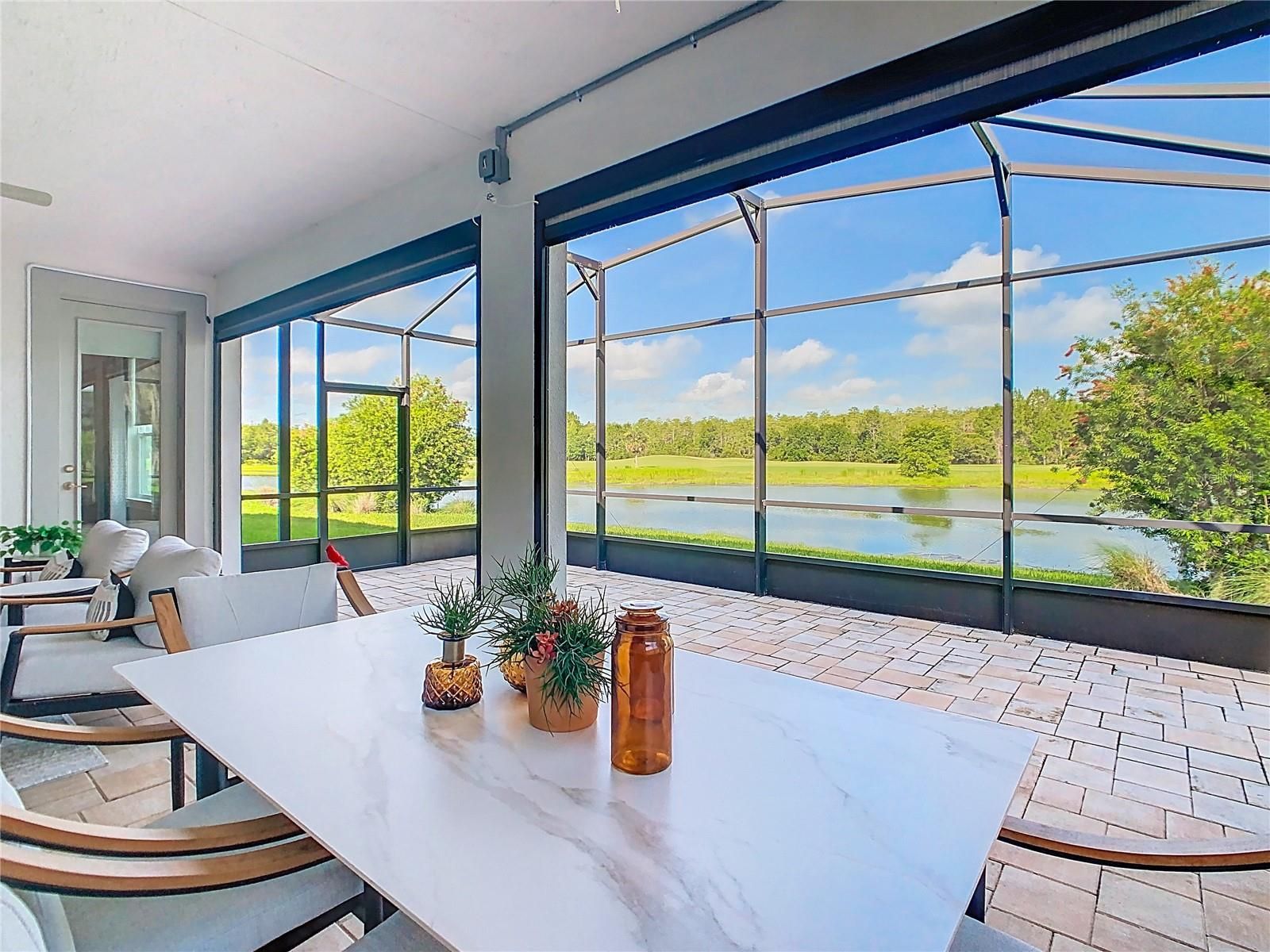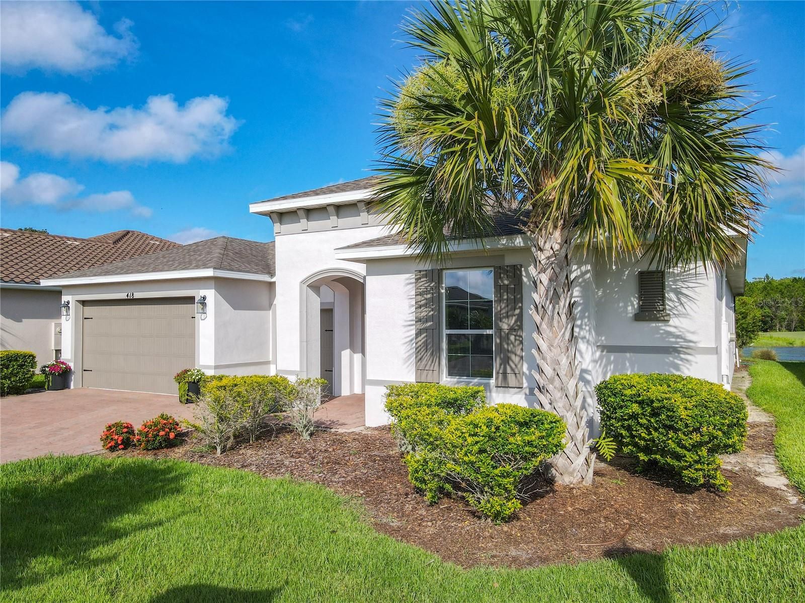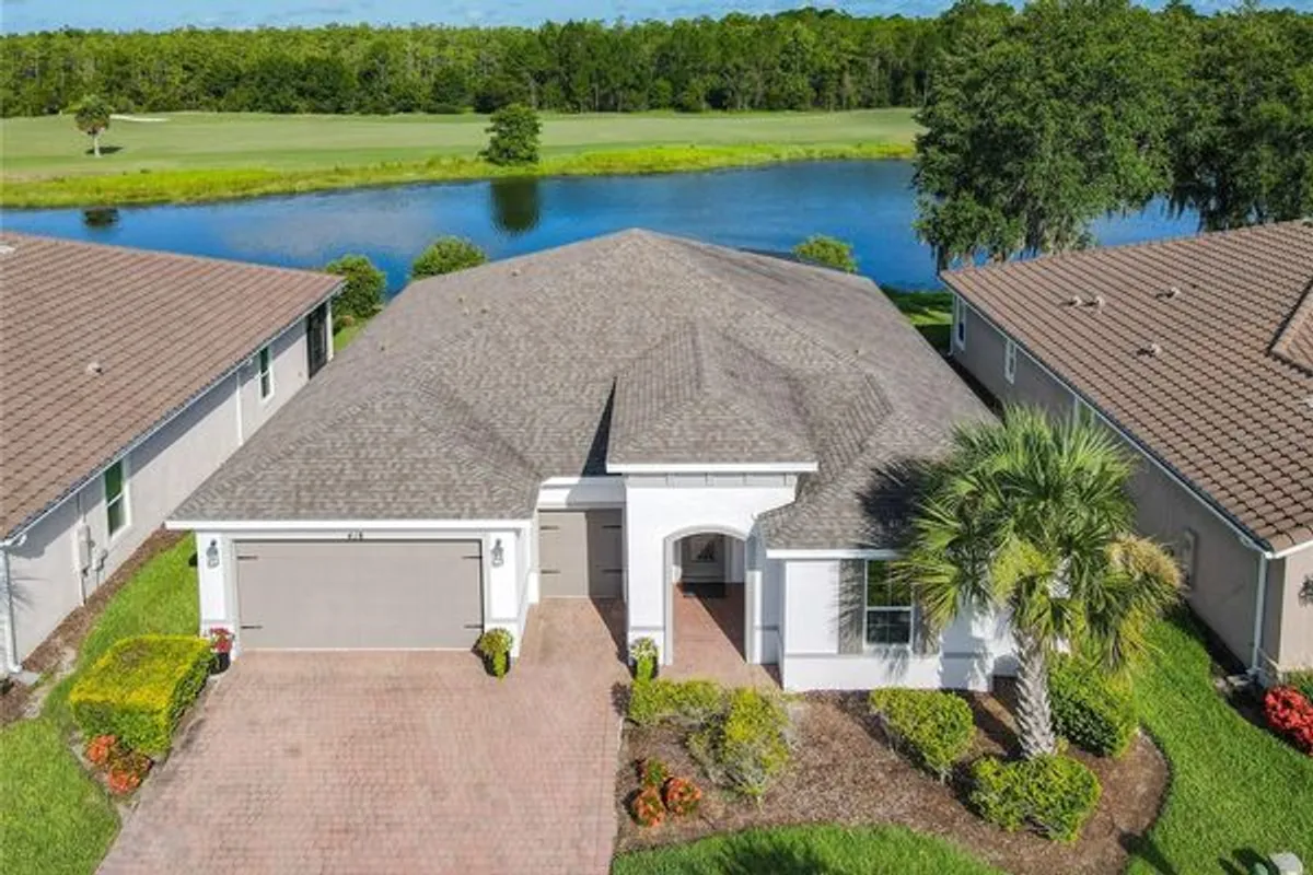 Welcome Home to 418 Treviso Drive, a STUNNING SIENA model home with an INCREDIBLE WATER AND GOLF COURSE View in the Treviso Neighborhood of Solivita, conveniently located just a short golf cart ride or stroll to the Village Center. This 3 Bedroom, 2.5 Bath Home with over 75K in Upgrades has DESIGNER TOUCHES throughout including Wallpaper Accent Walls, Window Treatments and Lighting Fixtures. The GOURMET KITCHEN features a Double Oven and Cooktop, Granite Counters, a Glass Backsplash, Bisque Staggered Cabinetry with Crown Molding and trim, Under Cabinet Lighting and Pot and Pan Drawers. The large island with sink provides additional space for food prep or casual dining. From the moment you enter through the LEADED GLASS DOOR you will be captivated by the view. The hallway with Trey Ceiling leads you into the Great Room with 12’ Coffered Ceiling and sliding glass doors to a generous screened lanai. Crown Molding Throughout, Laminate Flooring in the Great Room, Kitchen and Dining Room with Newer Carpeting in the Bedrooms and Den. The upgrades continue with a Trey Ceiling in the Dining Room, Upgraded Primary Suite with a Wallpaper Accent Wall and Reading Lights, a STUNNING VIEW, Custom Closets, a Trey Ceiling and an ENSUITE bath featuring Quartz Counters, Undermount Sinks, pullouts, and a DESIGNER Tiled shower with a built in seat. This model has a PRIVATE SITTING ROOM off the Primary Suite with an Atrium door leading to the LARGE, SCREENED LANAI offering tranquil water and golf course views. The 2 CAR PLUS GOLF CART garage with Epoxy Floor has plenty of room for storage. The Lanai has been PRE-PLUMBED for an outdoor kitchen and is spacious with one of the BEST VIEWS in all of Solivita. This Split Floorplan with the guest bedrooms and shared bath are situated near the front of the home and provides privacy for owners and guests. The laundry room with cabinets and utility sink and half bath are located as you enter the home through the garage. Solivita is an AWARD WINNING 55 PLUS Community in Central Florida, fully guarded and gated with an Amazing Lifestyle. There is always something to do in Solivita. You can swim in any of 14 Temperature Controlled Pools, Play Tennis, Pickleball, Softball, Bocce Ball or Horseshoes. Like to exercise? Work out in both of our Top of the Line Fitness Centers complete with the latest equipment, trainers and classes. Play Golf on our two 18 Hole PGA CHAMPIONSHIP Golf Courses, Drive balls at our aquatic driving range or Practice Putting, Join any of over 200 clubs. Garden in the Community Garden, Visit the Butterfly Garden, Take your dog to the Dog Park. Enjoy a cocktail, glass of wine or a meal at our restaurants in the Village Center or shoot pool, take an art class, attend a lecture, and enjoy live entertainment without leaving the community. Shop in the Pro Shop or visit or K&M, our downtown pharmacy/sundries store. The HOA fee includes landscaping, irrigation, security, and fiber optics for internet and cable. POINCIANA PLAZA, a new shopping center, opened this year across the street from the main entrance to Solivita and features TJMAXX, Ross, Burlington, Rack Room Shoes, PETCO, TD BANK, 5 BELOW and Ulta Beauty, Third Watch, and Outback Steakhouse with more stores and restaurants currently under construction. Call today to schedule your private showing and start enjoying your retirement in Solivita Style.