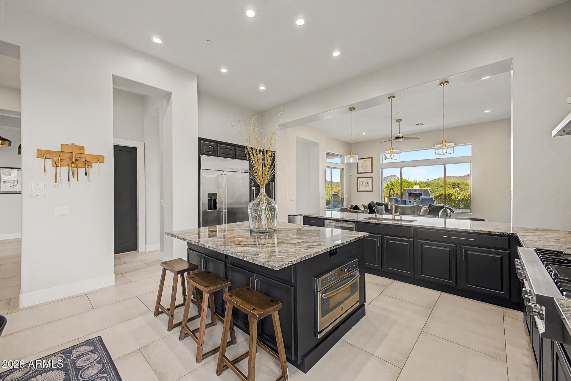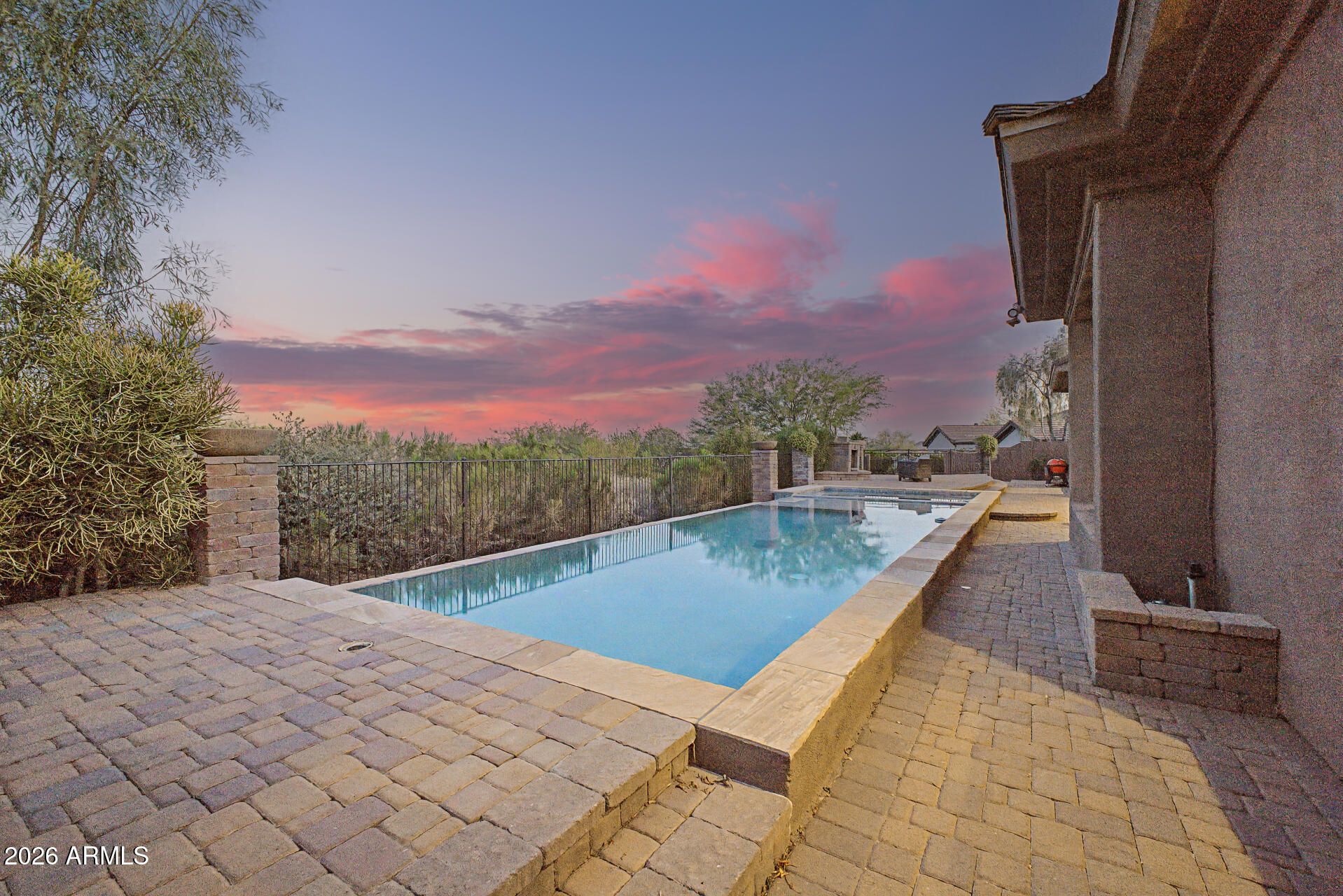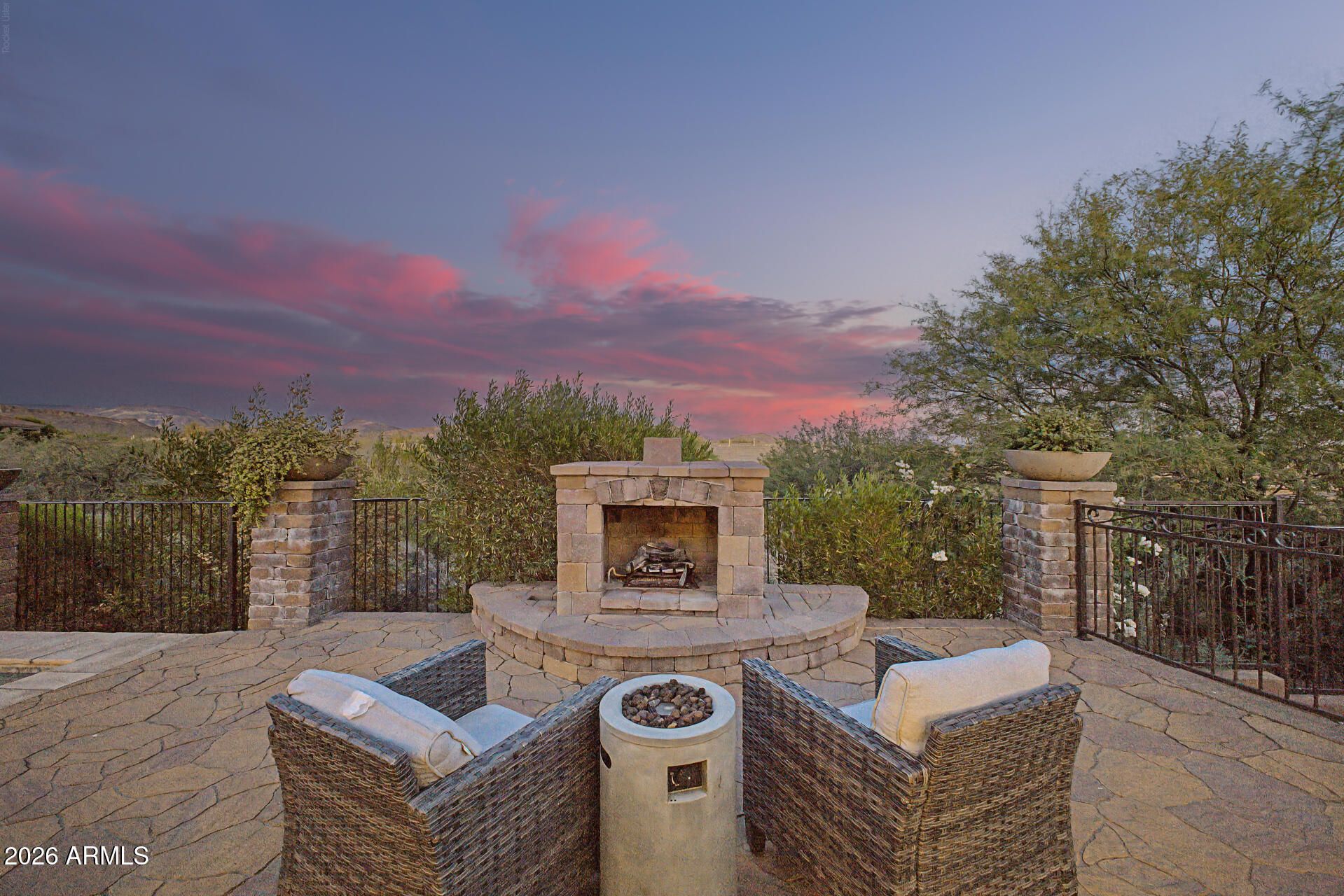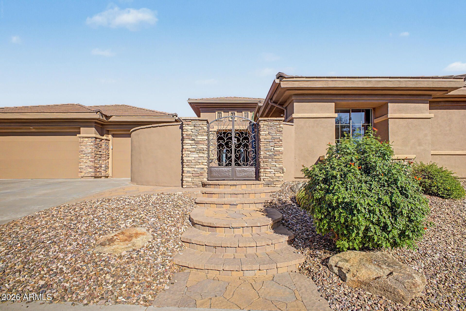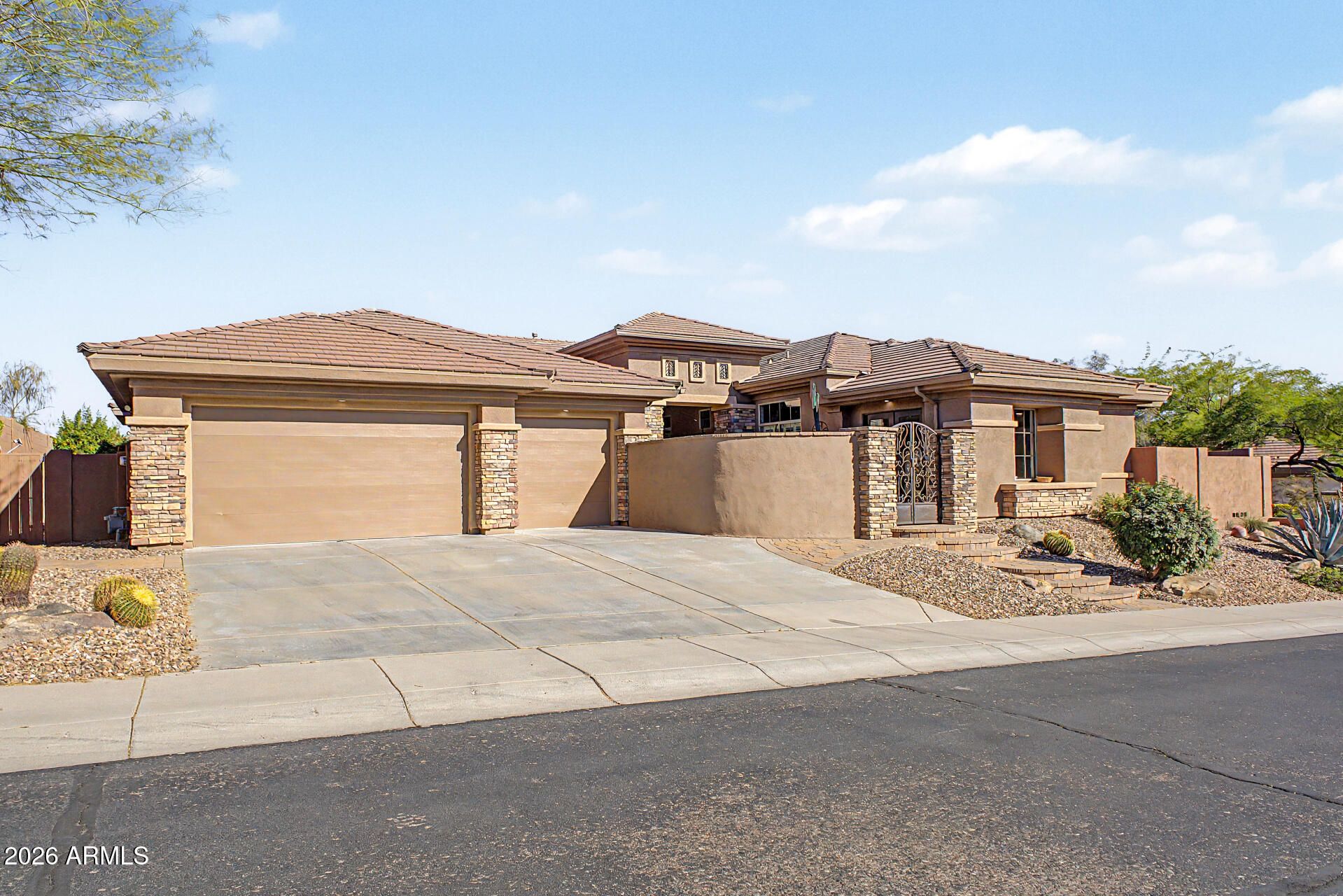 Your dream home is finally within reach. This stunning estate features a 3-car garage, timeless stone accents, and a charming courtyard with a tranquil water fountain that sets a welcoming tone. Inside, the home offers a bright and open living room with soaring ceilings, elegant lighting, abundant natural light, and sleek tile flooring. The inviting family room connects seamlessly to the backyard through sliding glass doors, creating effortless indoor-outdoor living. The gourmet eat-in kitchen showcases granite countertops, custom cabinetry, pendant lighting, a striking tile backsplash, stainless steel appliances, a walk-in pantry, a large center island, and a breakfast bar peninsula--ideal for both everyday living and entertaining. A cozy den provides flexible space for a home office, study, or private retreat. The spacious primary suite includes plush carpeting, a spa-like ensuite with dual sinks and a soaking tub, and a generous walk-in closet. The resort-style backyard is designed for Arizona living and perfectly positioned on a private HOA desert preserve, offering enhanced privacy and unobstructed natural views. With an east-facing orientation, it captures beautiful Arizona sunrises and provides a serene backdrop for everyday living. Enjoy a covered patio, paver design, fire pit and outdoor fireplace, spa and pool, and stunning mountain and desert views that complete the setting. Located in the highly desirable guard-gated Anthem Country Club, residents enjoy access to championship golf, resort-style clubhouses, fitness centers, tennis and pickleball courts, pools, dining, scenic walking paths, and a vibrant social lifestyle surrounded by breathtaking desert and mountain scenery. Make this exceptional property yours today!