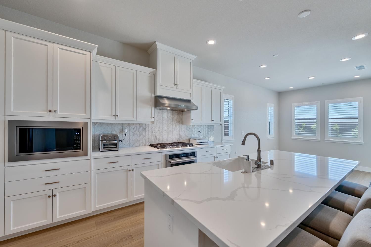 This 2024 2 Bed 2 Bath house is located in the very desirable Regency at Folsom Ranch 55+ community. It is a gorgeous duet and has a lot of highlights and upgrades such as Quartz countertops throughout, large kitchen island, custom tile backsplash, stainless steel appliances, LVP flooring, custom window shutters, covered patio, and a beautiful backyard. You will love the low electric bills with your owned solar. The house is located in the desirable Regency community which has several amenities such as swimming pools, spa, fitness center, clubhouse, pickleball, bocce ball, and so much more. There are several great activities planned throughout the week such as yoga, wine tasting, game nights, and many more social events. The location is also very convenient and has top rated restaurants and great shopping. Freeway access is also not far either. Don't miss out on this great house.