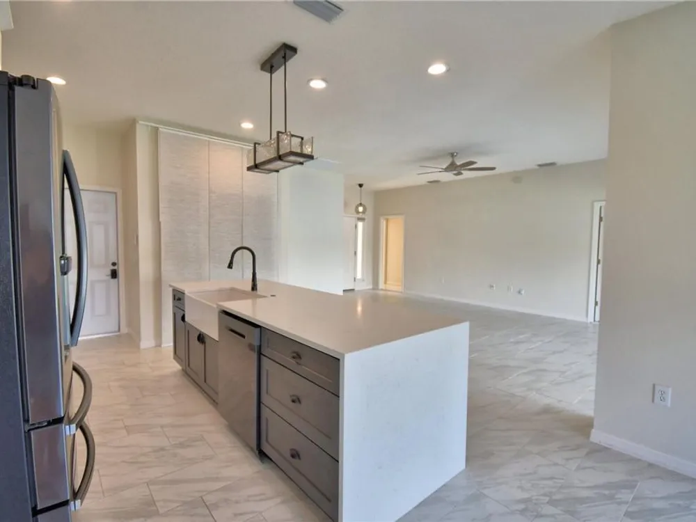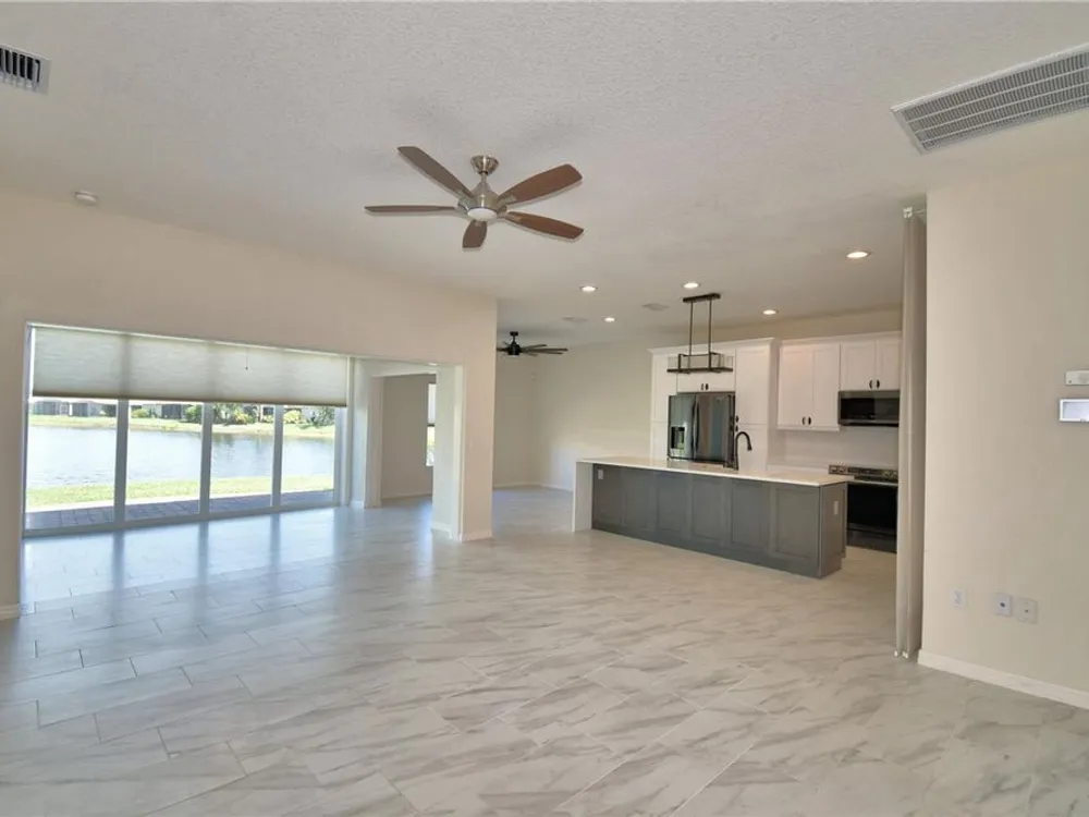 NEW LOW PRICE!! Welcome to this beautifully updated 2-bedroom, 2-bathroom home located in the well-loved 55+ Lake Ashton Golf community! Situated at 4188 Muirfield Loop in Lake Wales, this home offers peaceful water views and thoughtful upgrades throughout. The open floor plan features tile flooring in the lanai, dining, kitchen, and living areas. The kitchen is a standout with quartz countertops, a waterfall-edge island, quartz backsplash, upgraded cabinetry, and all appliances included. Enjoy water views from the living room, bonus room, dining area, and spacious primary bedroom, which includes a walk-in tub. The guest suite is privately positioned behind a pocket door for comfort and convenience. Both bathrooms include elegant quartz countertops with waterfall edges. Notable upgrades include a new roof, new A/C control panel (2025), new landscaping, energy-efficient LED ceiling fans, upgraded combination locks, a 50-gallon water heater, and an A/C system installed in 2018. Outdoor enhancements include a golf cart paver path, a rear paver patio with motion-sensing security lighting, and a second water/sewer meter to help reduce utility bills. Surrounded by mature landscaping and located in a NO flood insurance required area, this home also benefits from a CCD bond that’s paid in full. This home blends comfort, function, and style in one of the most desirable 55+ communities in Central Florida. Don’t miss your chance to enjoy the Lake Ashton lifestyle—schedule your showing today!
