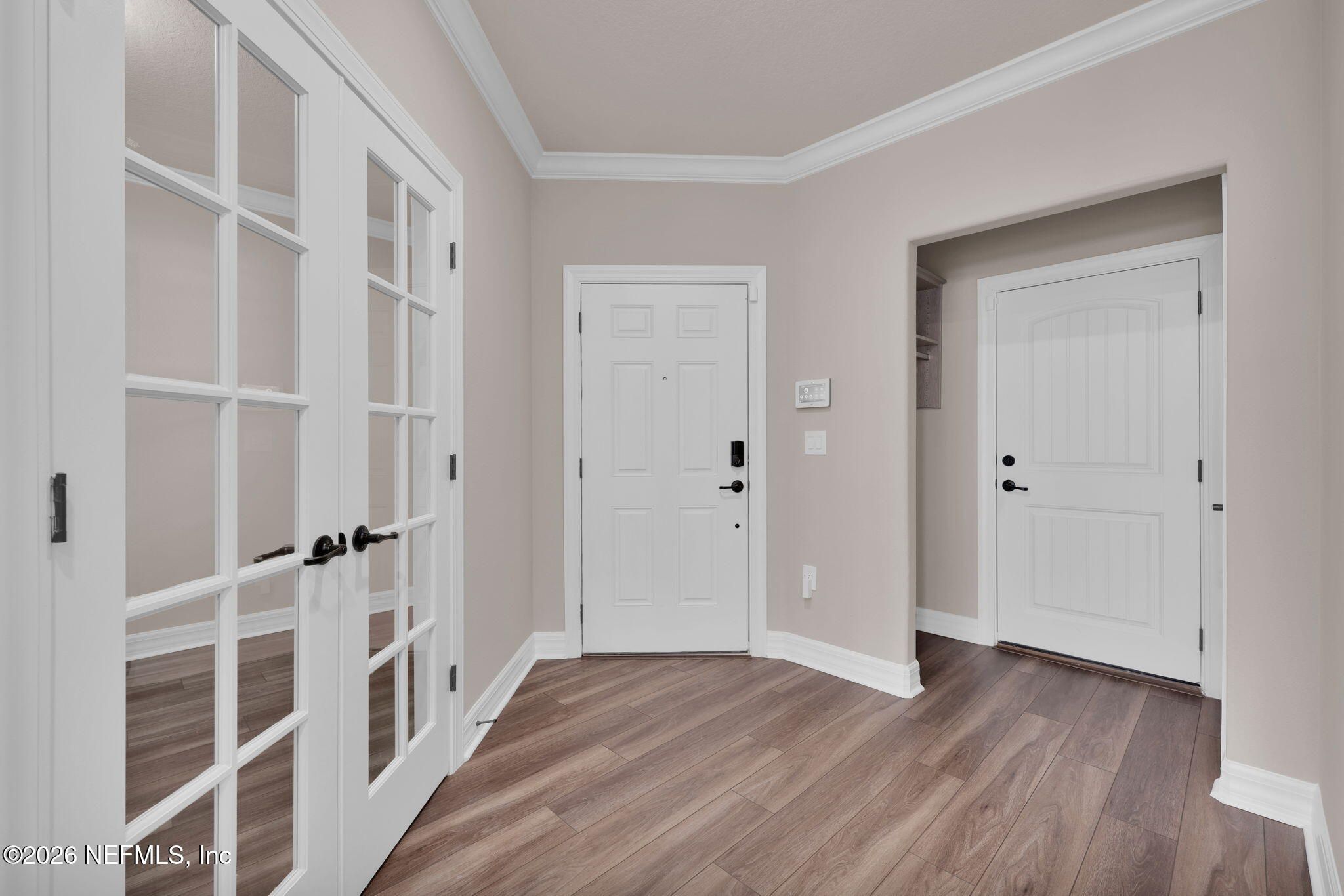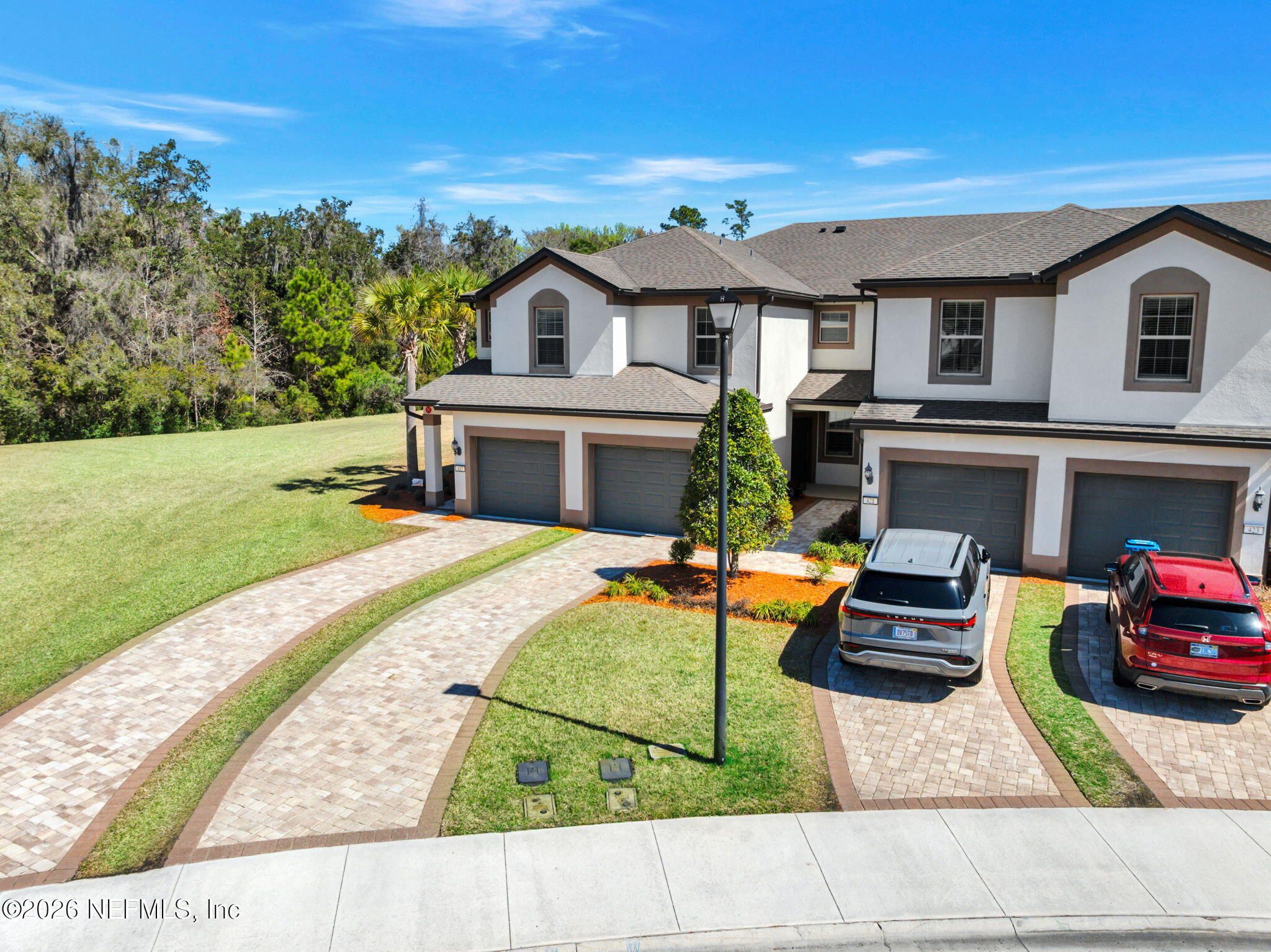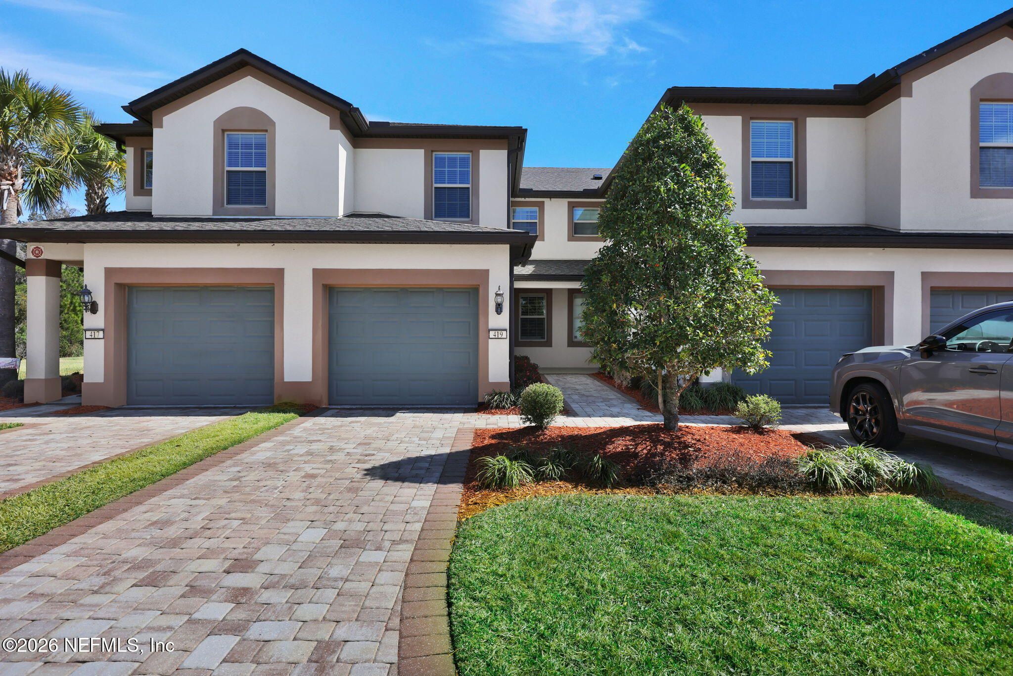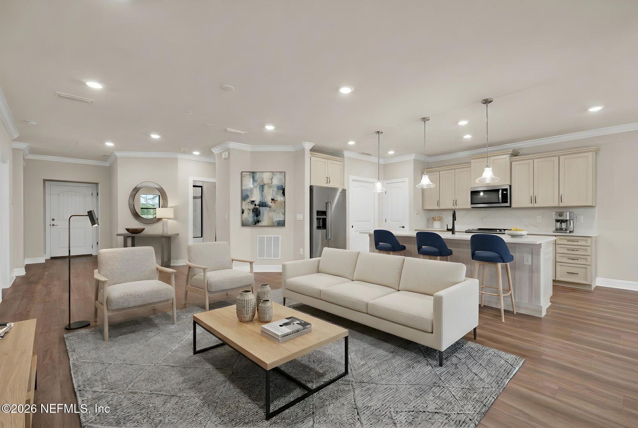 LOOK NO MORE-- COME LIVE THE MAINTENANCE-FREE LIFESTYLE YOU DESERVE! Welcome to your Light & Bright END UNIT with Amazing Water-to-Preserve Views in the highly sought-after 55+ Active Adult Community of Riverwood by Del Webb, located within the award-winning master-planned community of Nocatee -- just minutes to the beach! This beautifully maintained home offers 2 Bedrooms, 2 Full Baths + Office/Flex Room with French Doors, an Open Concept Floorplan, and an Attached 1-Car Garage. Designed for comfort and effortless entertaining, the stunning Kitchen features: Upgraded cabinetry & appliances, Quartz countertops, Designer backsplash, Large food prep island with custom shiplap woodwork, a Pantry and it's an open flow to the everyday dining nook & spacious great room. Built with durable concrete block construction, this home is loaded with upgrades and shows like new with a freshly painted interior. Exceptional Interior Features: Custom California Closets throughout, Plantation shutters LVP flooring & tile throughout (NO carpet), Crown molding & rounded corners, Whole-house water softener & surge protector and it is wired for a security/alarm system. Bathrooms with upgraded tile to the ceiling & glass shower doors. Step outside to your screened patio with custom flooring and take in the gorgeous water-to-preserve views -- the perfect place to enjoy peaceful mornings and relaxing afternoons while extending your living space outdoors. The attached 1-car garage includes built-in cabinetry and epoxy floors, plus an extended paver driveway for added convenience. Live the Vibrant 55+ Lifestyle at Riverwood by Del Webb a premier Active Adult Community nestled in the prestigious Ponte Vedra area between Jacksonville and St. Augustine, offering easy access to pristine beaches, fine dining, shopping, and medical facilities. Community Highlights: Natural Beauty: Surrounded by 2,400 acres of the serene Nocatee Preserve and located near the Atlantic Ocean. Resort-Style Amenities at the Anastasia Club: Grand ballroom Indoor & outdoor pools Sauna & spa State-of-the-art fitness center Tennis courts Pickleball & bocce ball Full-time Lifestyle & Fitness Director coordinating year-round events and social activities. Residents also enjoy access to the nearby Nocatee Splash Water Park featuring a lazy river, water slides, lagoon pool, and zip lines. The Nocatee Lifestyle Living in Nocatee enhances your lifestyle with: Splash Water Park & Rip Tide Slide Lazy Tides River & lagoon pool 330-foot zip line Swim Club Pool & Fitness Club with cardio equipment, free weights & group classes Scenic Greenway Trails winding through 2,400 acres along the Intracoastal Waterway Spray Park for additional recreation Florida Living at Its Finest. This is more than a home -- it's a maintenance-free, resort-style lifestyle designed for active adults who value community, wellness, social engagement, and natural beauty. Whether you're enjoying pickleball with friends, relaxing poolside, exploring scenic trails, or hosting gatherings in your open-concept home with breathtaking water views, this property offers everything you need to live your next chapter to the fullest. LOOK NO MORE -- Your 55+ Active Adult Dream Home in Riverwood by Del Webb awaits!