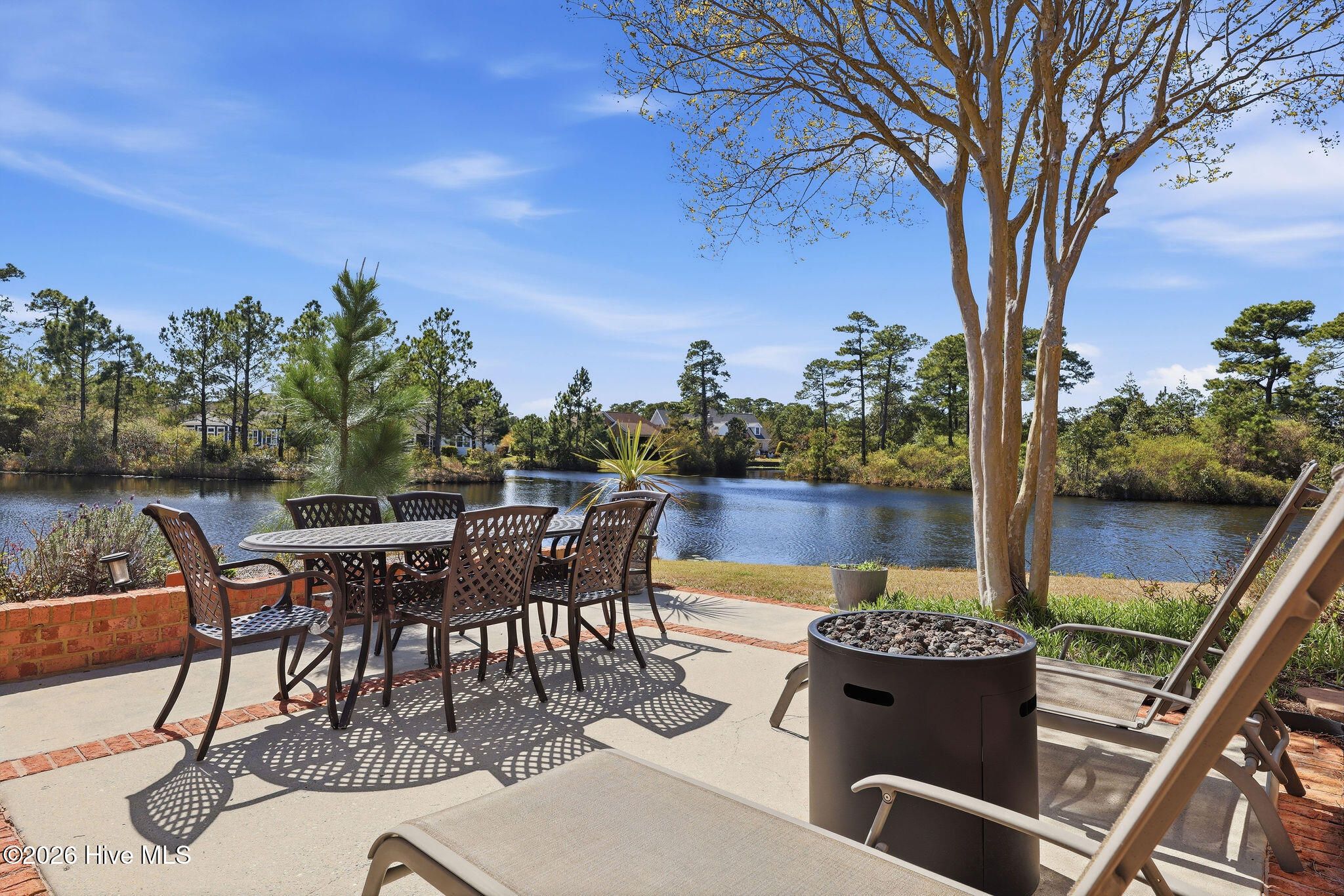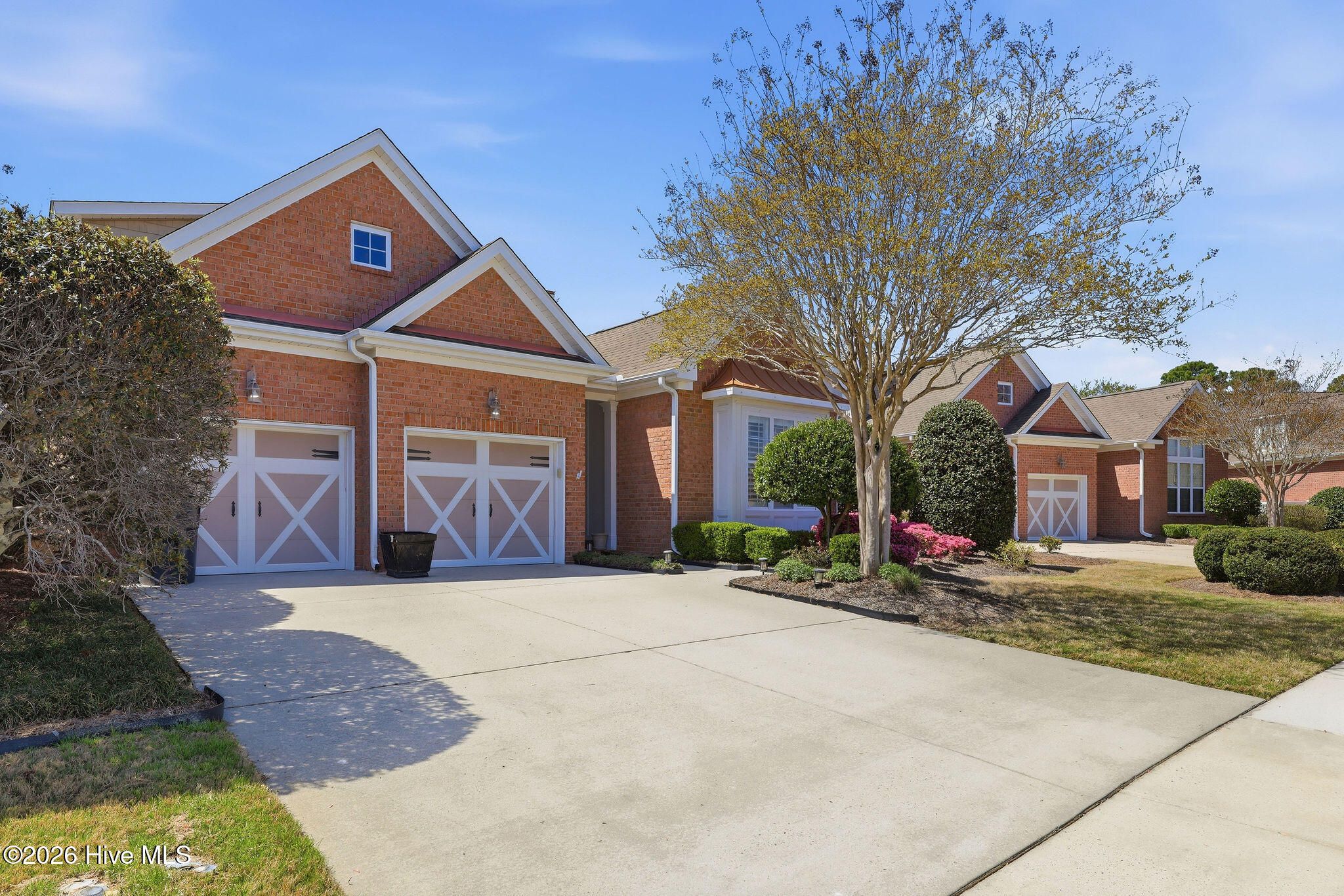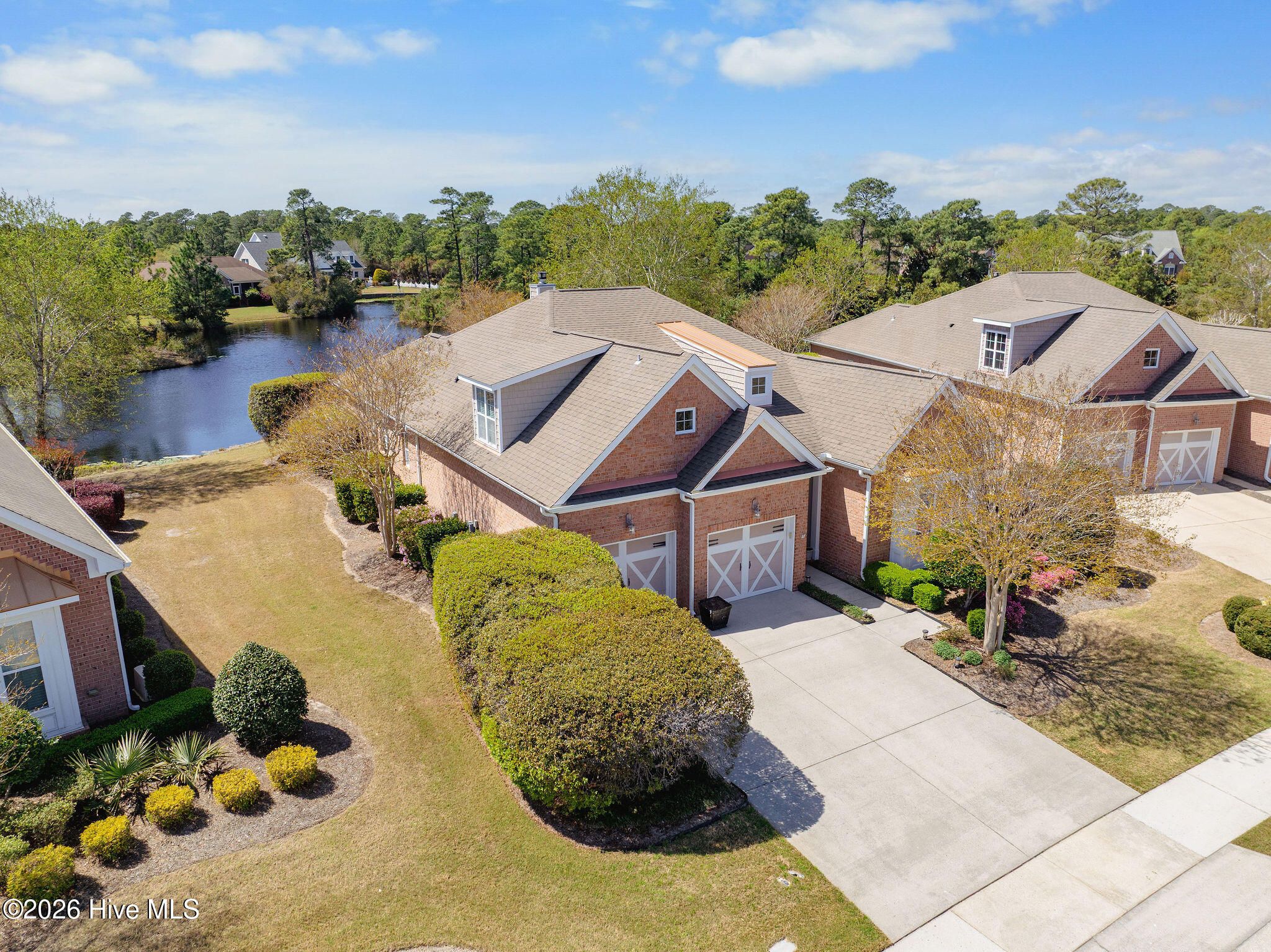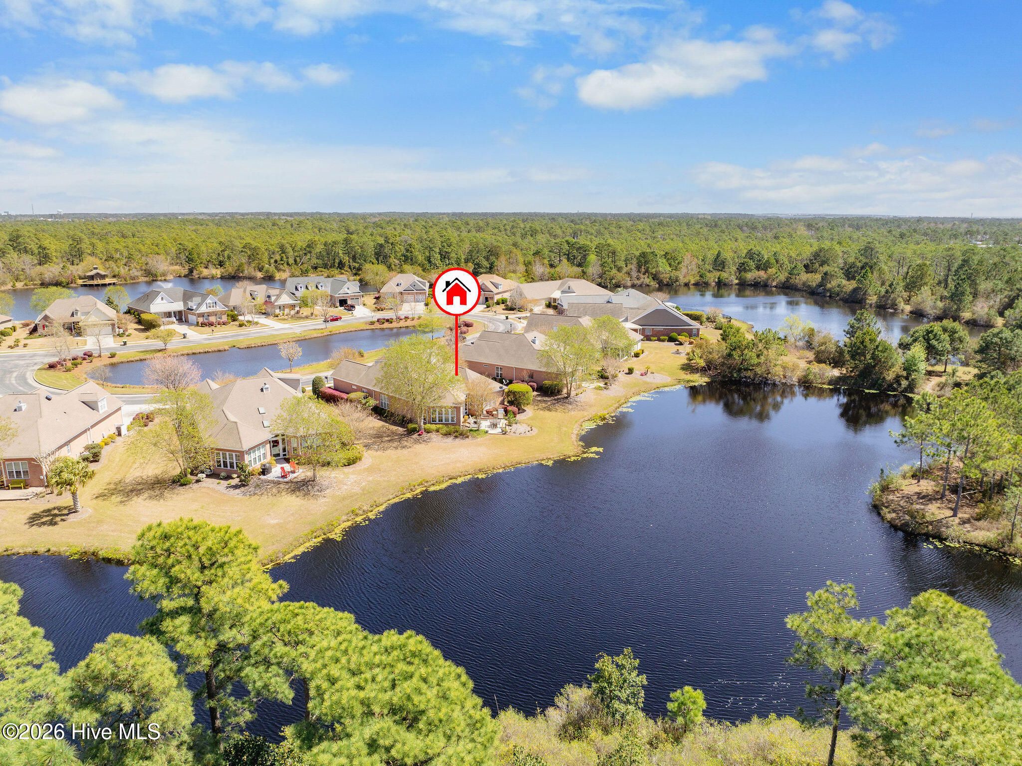 This all-brick home in the Regency Lakes section of St. James Plantation offers a low-maintenance lifestyle with a prime location near the Players Club amenity center and the Regency gate. This property boasts a truly unique homesite, offering picturesque water views from both the front and back of the house. The rear of the home faces a permanent nature preserve, ensuring your backyard remains a private sanctuary for watching local wildlife over the tranquil pond. Professionally maintained landscaping--lawn care is included in the HOA. The home is a sprawling open floor plan anchored by a Great Room featuring vaulted ceilings and a cozy gas fireplace. The space flows seamlessly into the kitchen and dining areas, tied together by beautiful, engineered hardwood floors. Adjacent to the kitchen a bright, enclosed sitting room with southern exposure is the ultimate spot for morning coffee, with large windows that pull natural light deep into the home and offer uninterrupted views of the water. The split-bedroom floor plan ensures maximum privacy for owners and guests alike. Located on its own wing, the primary suite is a peaceful escape with plantation shutters, a large walk-in closet, and a spacious bathroom featuring double sinks and a deep soaking tub. On the opposite side of the home, two spacious bedrooms share a full bath. The middle bedroom is perfectly sized to double as a den or hobby room. If you are searching for a great location, a thoughtful one-story living open floor plan, and well-built home in St. James Plantation you have found it.