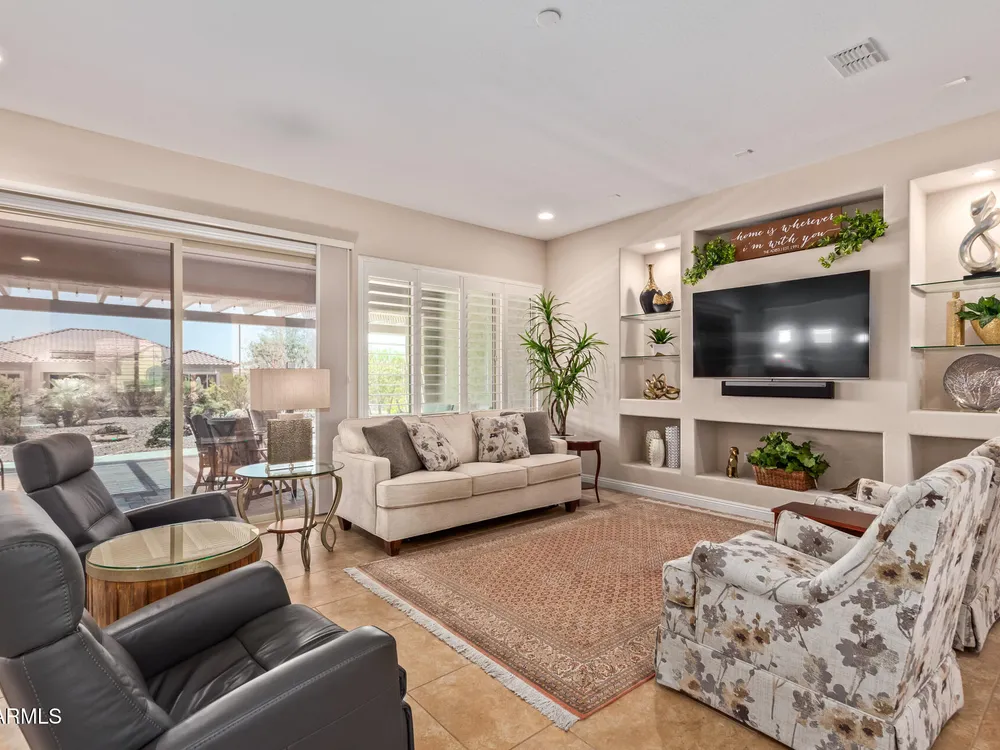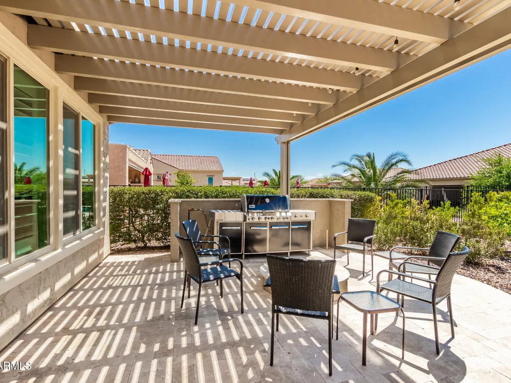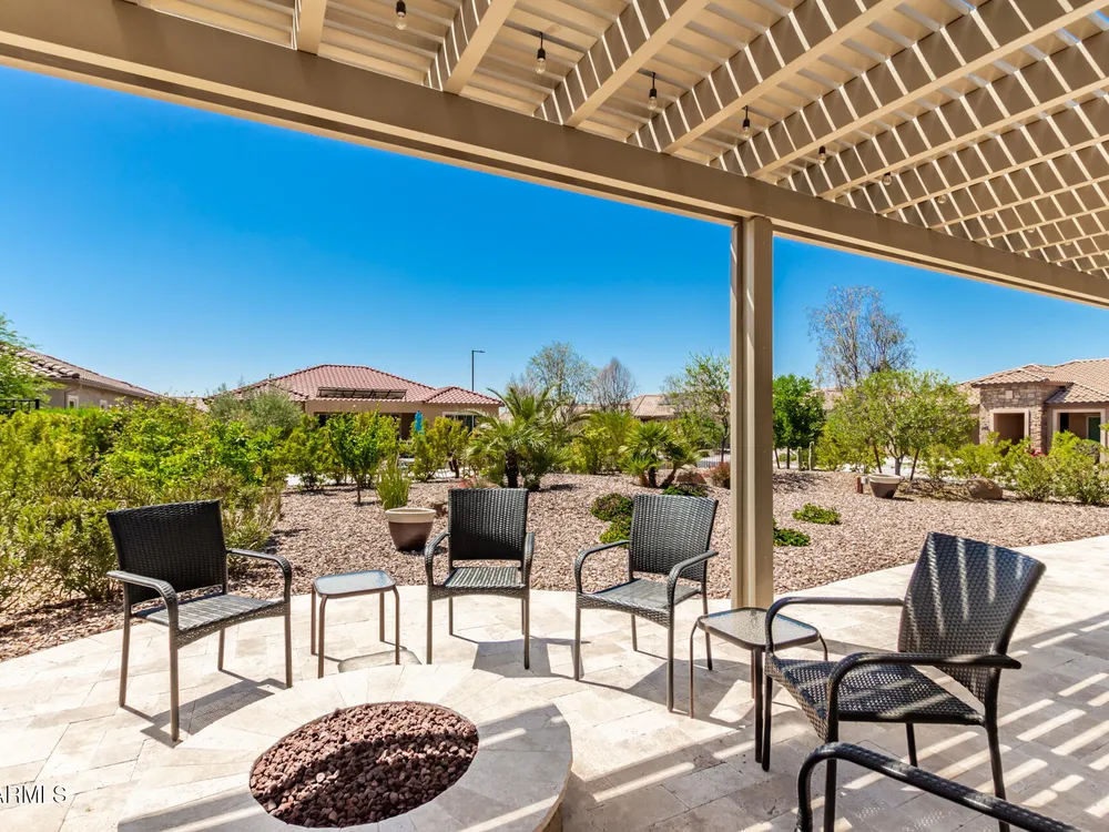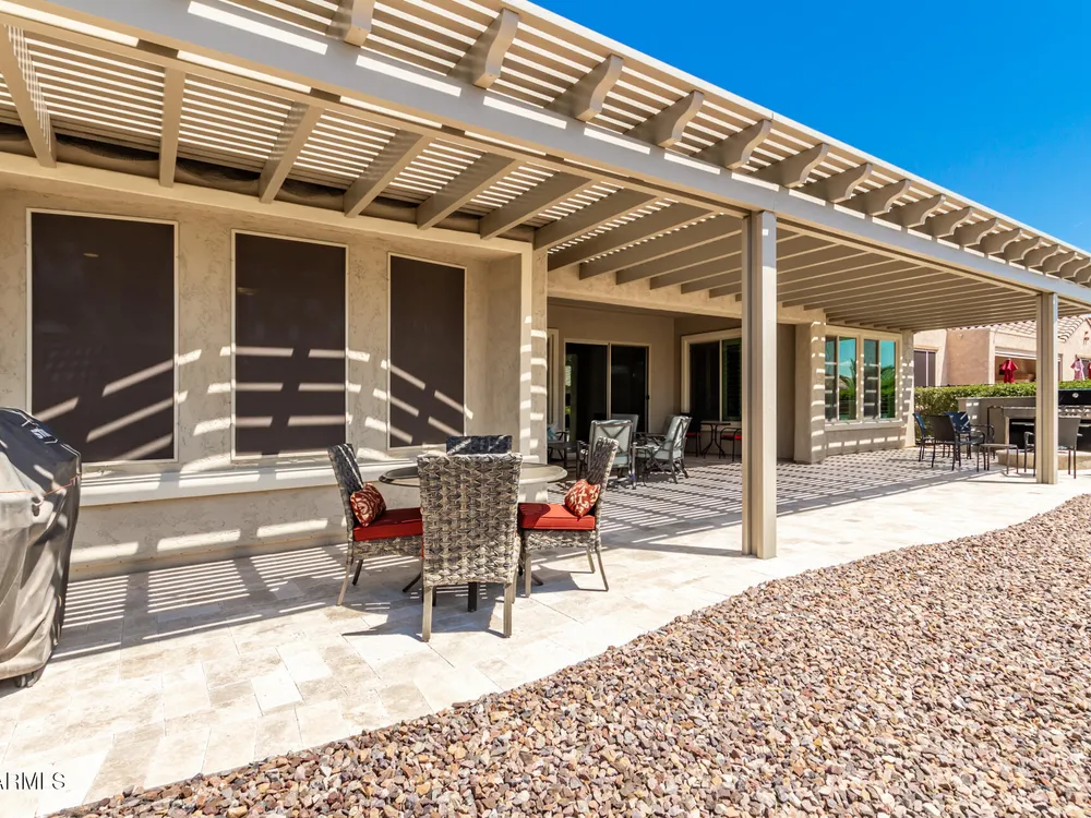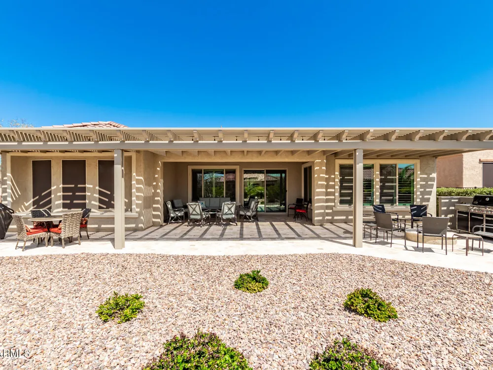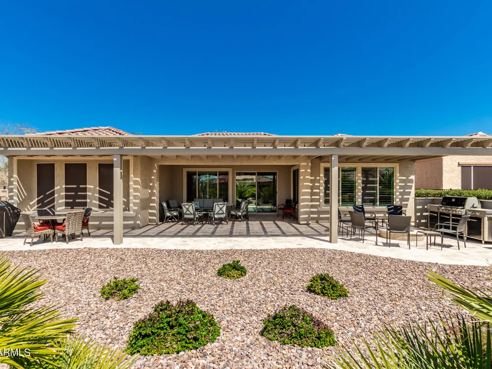 LIVING THE ARIZONA DREAM! This STUNNING Endeavor features built-in entertainment center, surround sound, Trey ceilings in DR & Entry, Plantation Shutters, 20'' designer tile/Berber carpet in bedrooms, 5'' base thru-out, walk-in tiled shower, bowed window in the Primary & closets w/ built ins. UPGRADES CONTINUE w/ Chef Lux kitchen featuring SS appliances, Quartz counters, tile backsplash, raised panel cabinets w/soft close drawers, dbl pull out shelves, U/C lighting, Butlers pantry. Travertine at courtyard & patio hi-lite Ariona living w/ Pergola, gas fire pit, built-in Grill & sun screens. EXTENDED Garage w/ cabinets & insulated garage door ++ GOLF CART GARAGE! This beautiful home is situated on the corner of a cul-de-sac. Lots of lush landscaping! IT'S A 'MUST SEE' BEAUTY-Available now!! Sun City Anthem at Merrill Ranch offers a 48,000 SF recreation center w/ craft rooms for quilting, pottery, glass works, jewelry & crafts, spacious ballroom w/ stage for dancing, theatrical productions, concerts & more. PLUS full gym, work out rooms, indoor lap pool & spa, walking track, cafe area, card rooms, poker tables, pool table, ping pong table, business center, class room for interesting seminars! Troon Poston Butte Golf Course is one of the nicest in the area. Sun City offers Pickleball, Tennis, Bocce Ball, Horseshoes, Shuffleboard, clubs for all activities.......LIVE WHERE THE SURROUNDINGS DELIGHT, INSPIRE & CHALLENGE YOU!