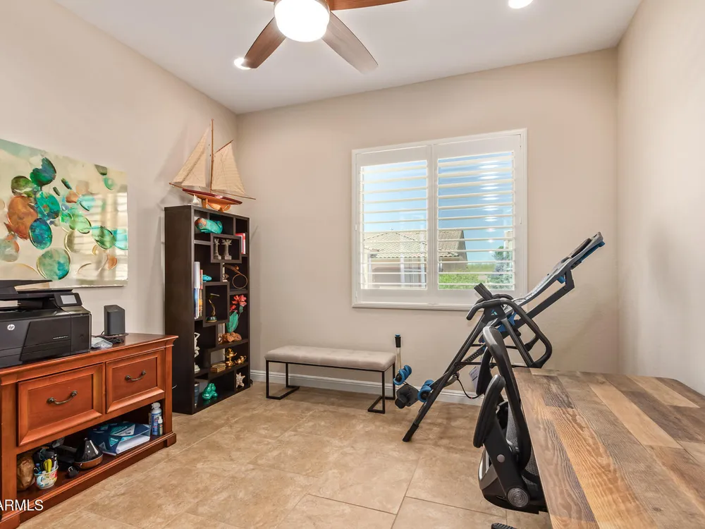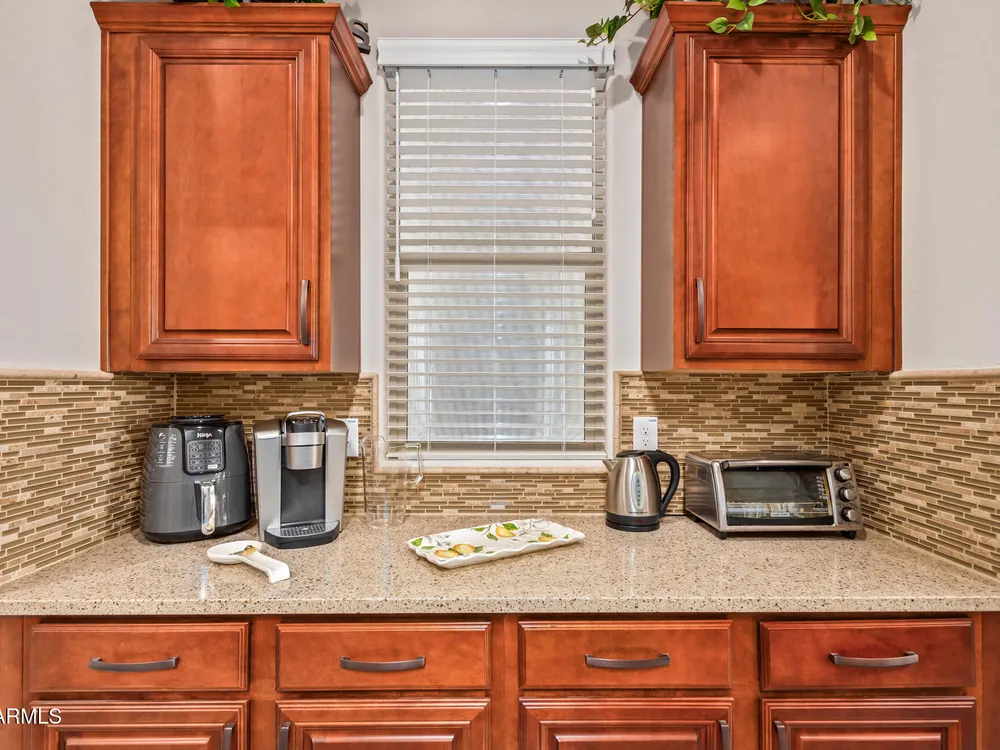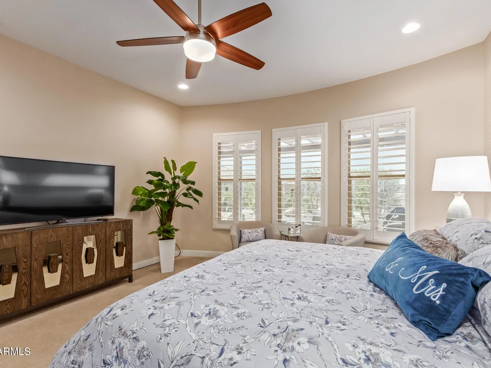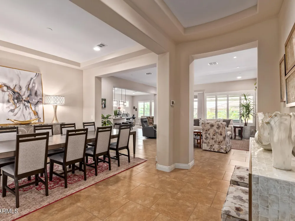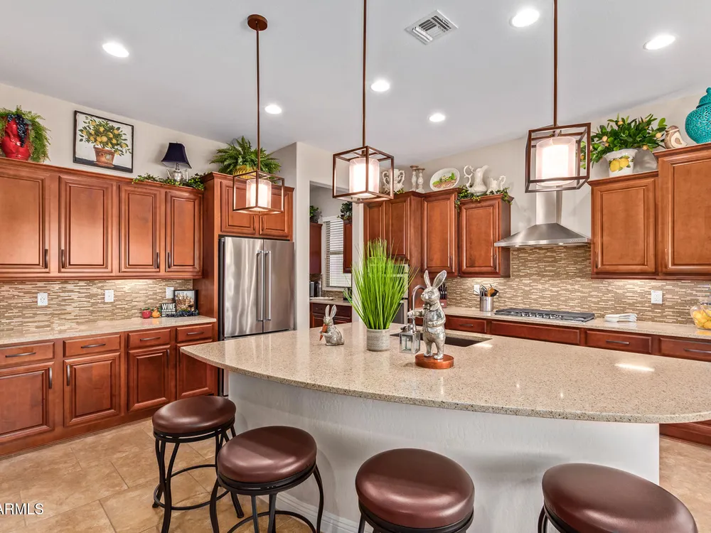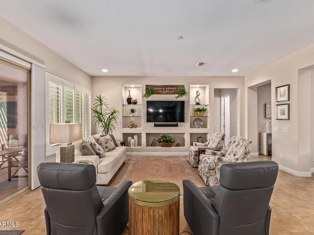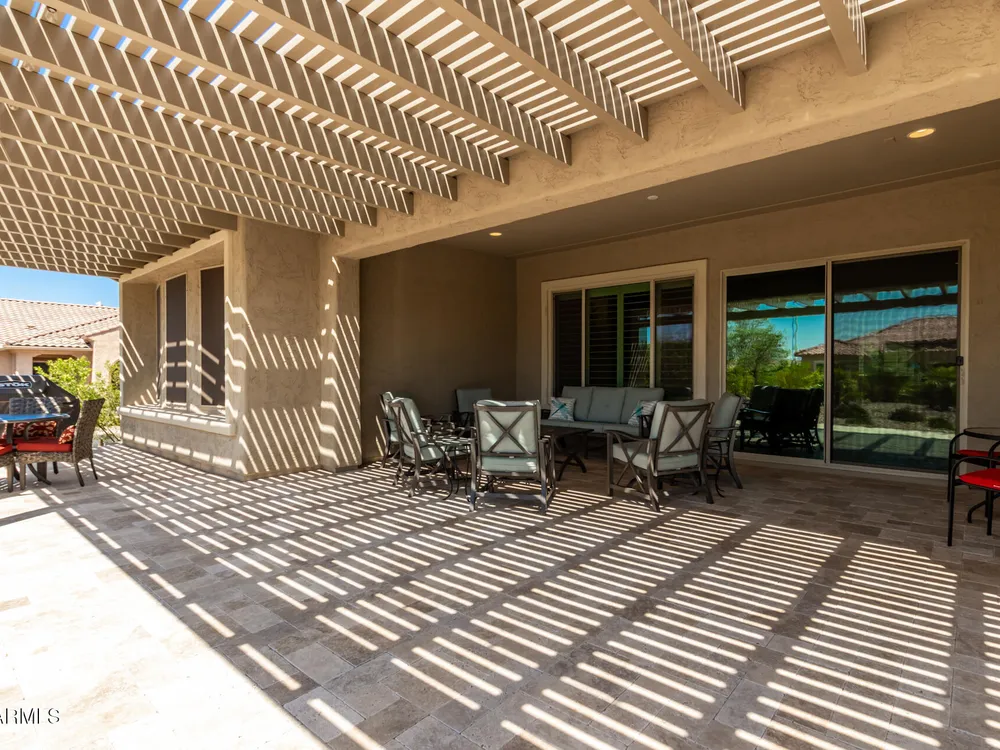 LIVING THE ARIZONA DREAM! This STUNNING Endeavor features built-in entertainment center, surround sound, Trey ceilings in DR & Entry, Plantation Shutters, 20'' designer tile/Berber carpet in bedrooms, 5'' base thru-out, walk-in tiled shower, bowed window in the Primary & closets w/ built ins. UPGRADES CONTINUE w/ Chef Lux kitchen featuring SS appliances, Quartz counters, tile backsplash, raised panel cabinets w/soft close drawers, dbl pull out shelves, U/C lighting, Butlers pantry. Travertine at courtyard & patio hi-lite Ariona living w/ Pergola, gas fire pit, built-in Grill & sun screens. EXTENDED Garage w/ cabinets & insulated garage door ++ GOLF CART GARAGE! This beautiful home is situated on the corner of a cul-de-sac. Lots of lush landscaping! IT'S A 'MUST SEE' BEAUTY-Available now!! Sun City Anthem at Merrill Ranch offers a 48,000 SF recreation center w/ craft rooms for quilting, pottery, glass works, jewelry & crafts, spacious ballroom w/ stage for dancing, theatrical productions, concerts & more. PLUS full gym, work out rooms, indoor lap pool & spa, walking track, cafe area, card rooms, poker tables, pool table, ping pong table, business center, class room for interesting seminars! Troon Poston Butte Golf Course is one of the nicest in the area. Sun City offers Pickleball, Tennis, Bocce Ball, Horseshoes, Shuffleboard, clubs for all activities.......LIVE WHERE THE SURROUNDINGS DELIGHT, INSPIRE & CHALLENGE YOU!