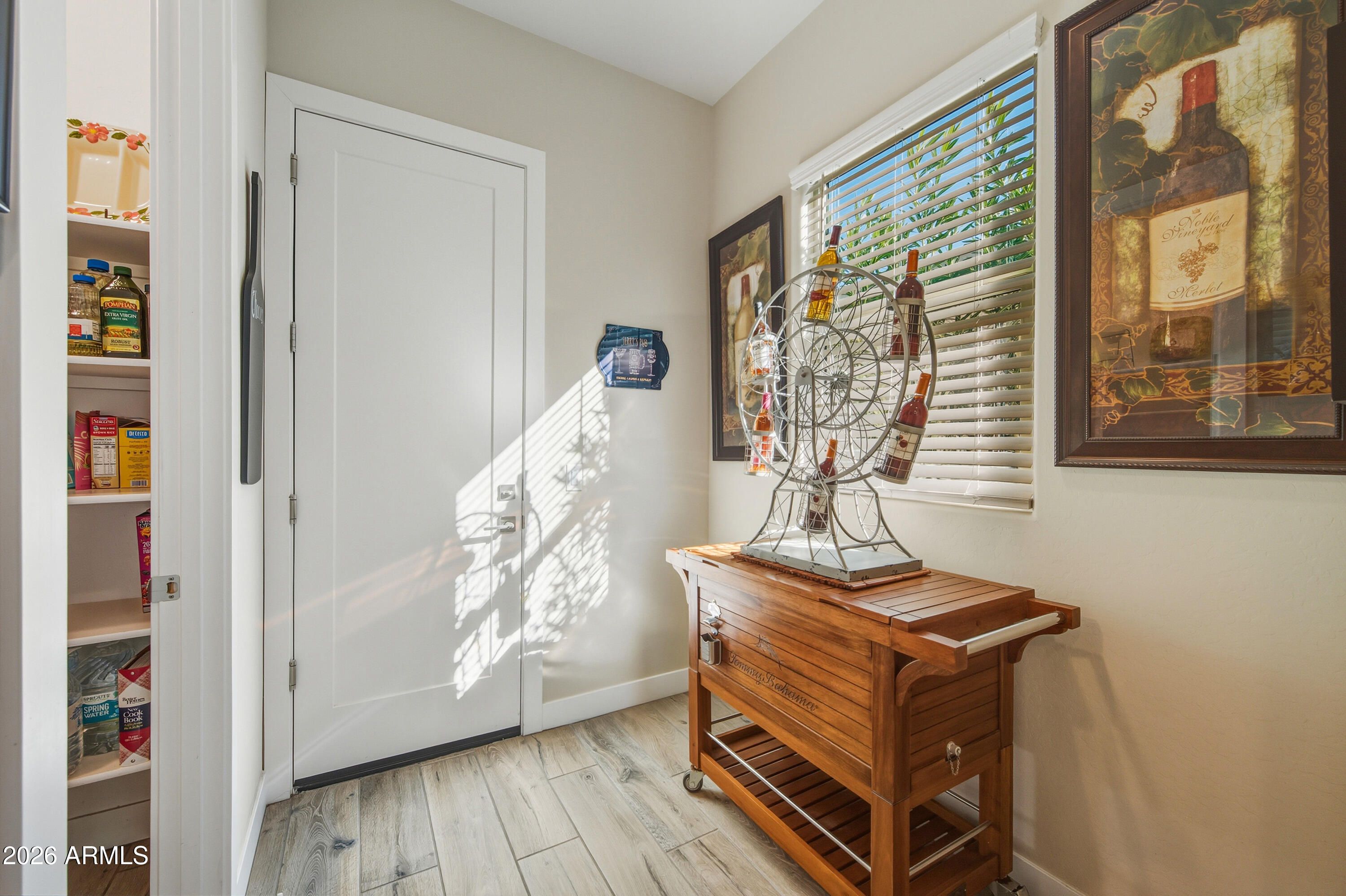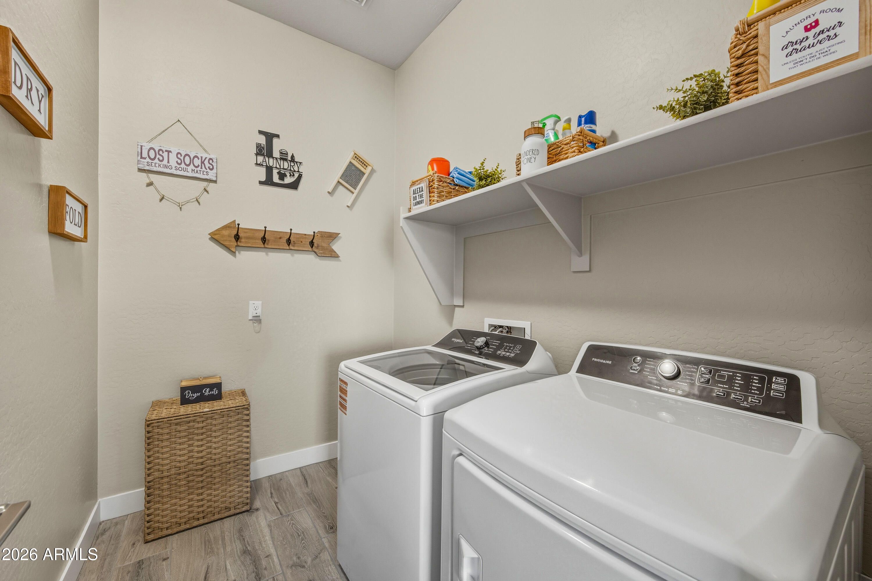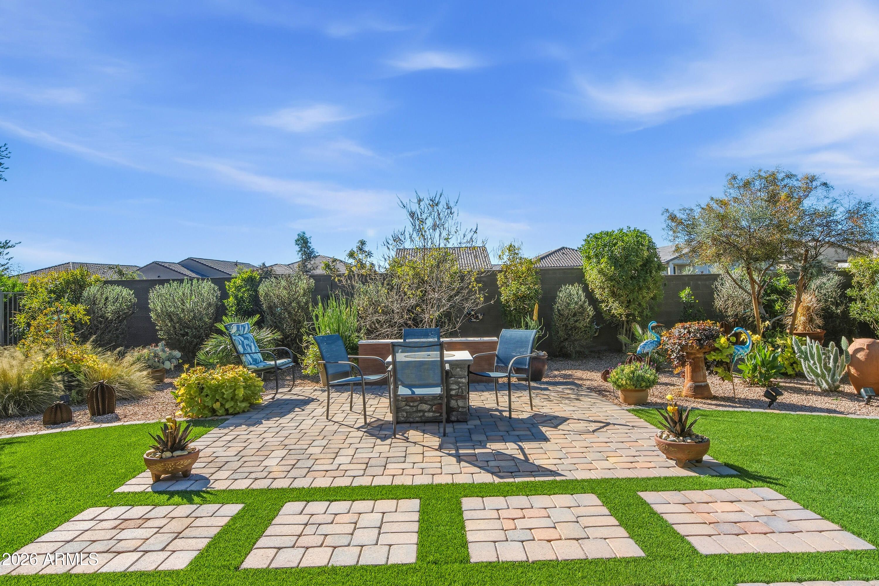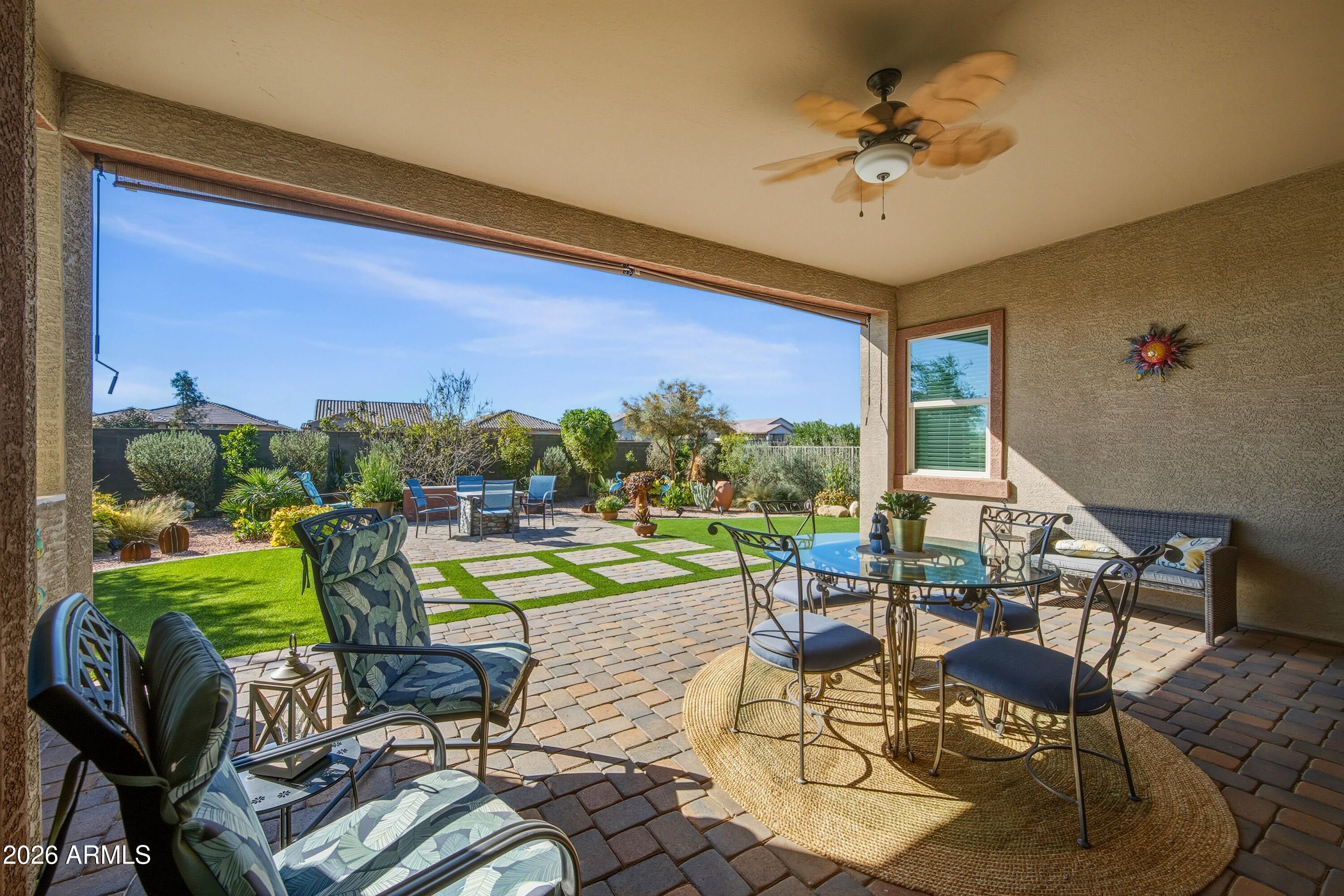 Experience elevated resort-style living in the highly sought-after Province at Maricopa, a premier active adult community offering exceptional amenities, scenic lakes, and a vibrant lifestyle. This beautifully upgraded 2-bedroom, 2.5-bath residence with a den showcases over $80,000 in seller improvements, delivering a rare blend of luxury, functionality, and thoughtful design. The open-concept layout is filled with natural light and features wide plank flooring, recessed lighting, ceiling fans, and a spacious great room ideal for entertaining or everyday comfort. The gourmet kitchen anchors the home with a large center island, granite countertops, stainless steel appliances, pendant lighting, abundant cabinetry, and a generous walk-in pantry. The kitchen flows seamlessly into the dining and living spaces and opens to the expansive covered patiocreating an effortless indoor-outdoor lifestyle. The private primary suite offers a relaxing retreat with a spa-inspired bath featuring dual vanities, an oversized walk-in shower with bench seating and glass enclosure, and excellent storage. A spacious secondary bedroom with nearby full bath and a versatile den provide flexibility for guests, hobbies, or a home office. A convenient powder bath adds functionality for entertaining. Step outside to a professionally landscaped backyard designed for year-round enjoyment, featuring a covered patio with ceiling fan, paver walkways and seating areas, low-maintenance artificial turf, mature desert plantings, accent lighting, and a built-in firepitperfect for relaxing evenings or hosting guests. The oversized garage is a standout feature with extensive custom cabinetry, work surfaces, overhead storage racks, and exceptional organization, ideal for hobbies, storage, or projects. Residents enjoy access to Province's impressive amenities including a clubhouse, fitness center, indoor and outdoor pools, pickleball and tennis courts, walking trails, lakes, dining options, and a full calendar of social and recreational activities. Conveniently located near shopping, dining, medical services, and commuter routes, this move-in-ready home offers comfort, quality, and an exceptional lifestyle opportunity. Truly a must-see property showcasing pride of ownership and outstanding upgrades throughout.