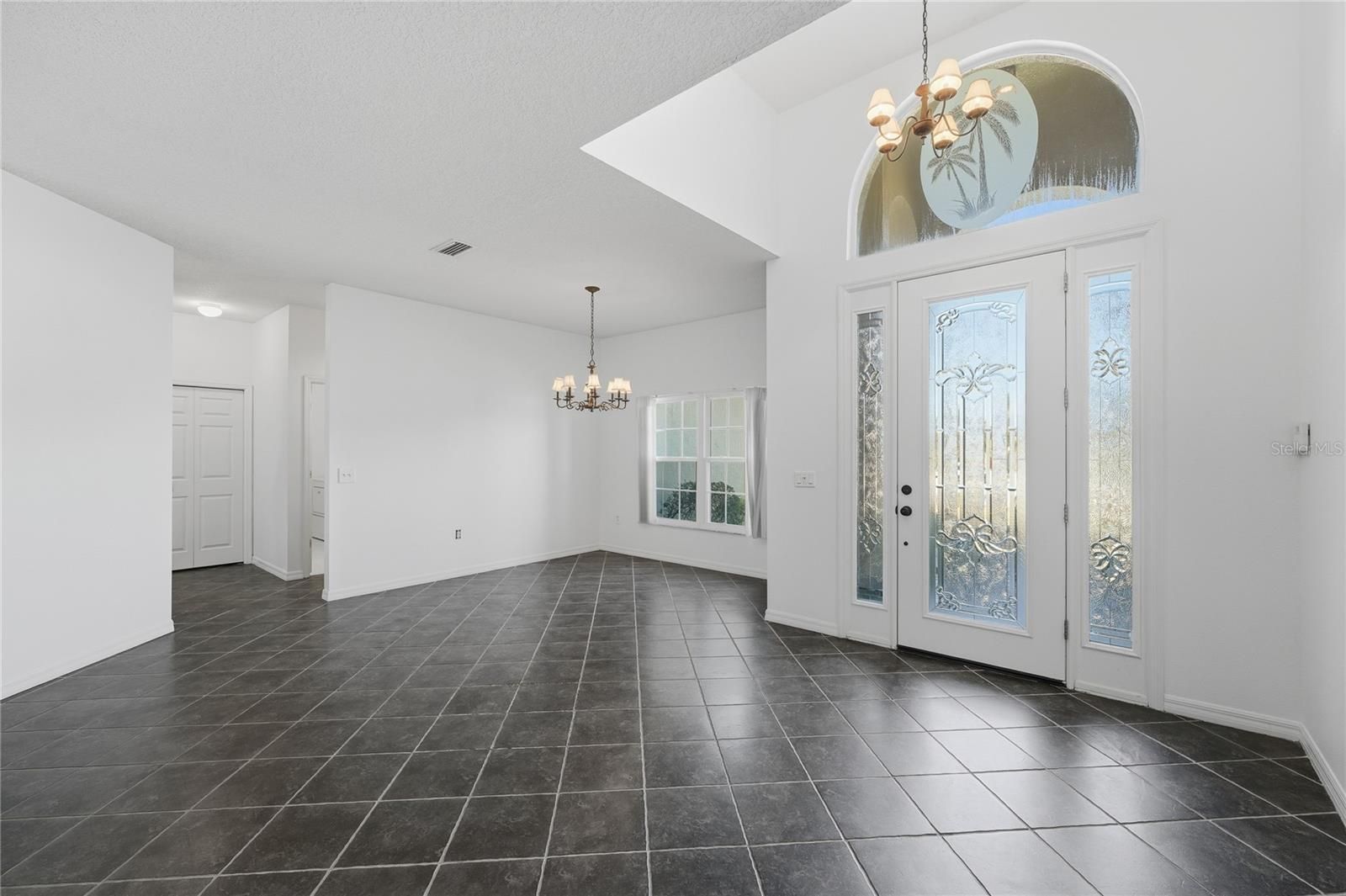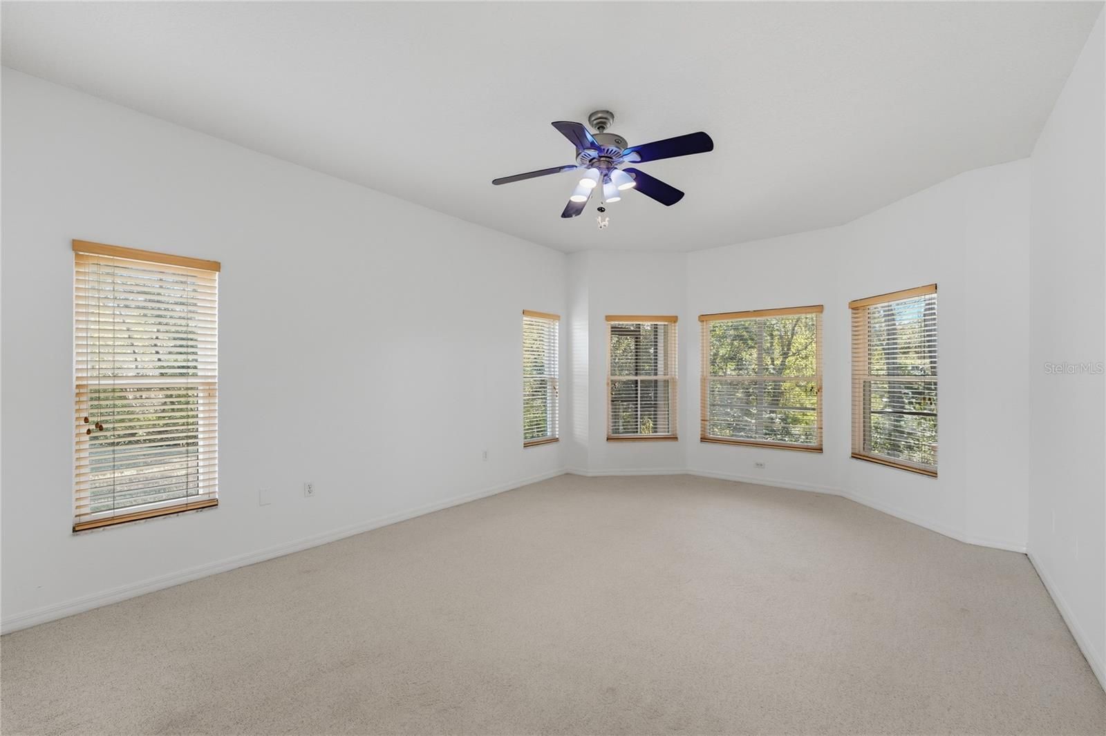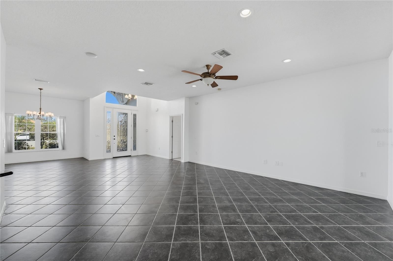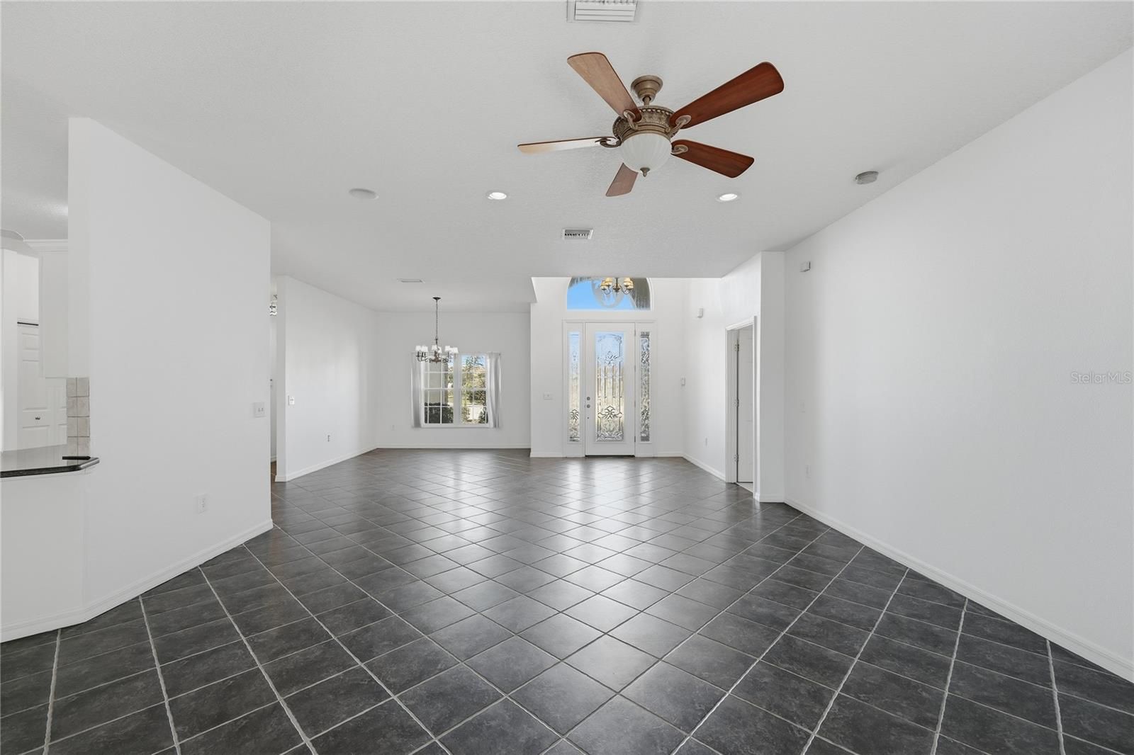 - Ceiling Fan(s), Eat-in Kitchen, High Ceilings, Kitchen/Family Room Combo, Living/Dining Room, Open Floorplan, Solid Surface Counters, Split Bedrooms, Stone Counters, Thermostat, Walk-In Closet(s)