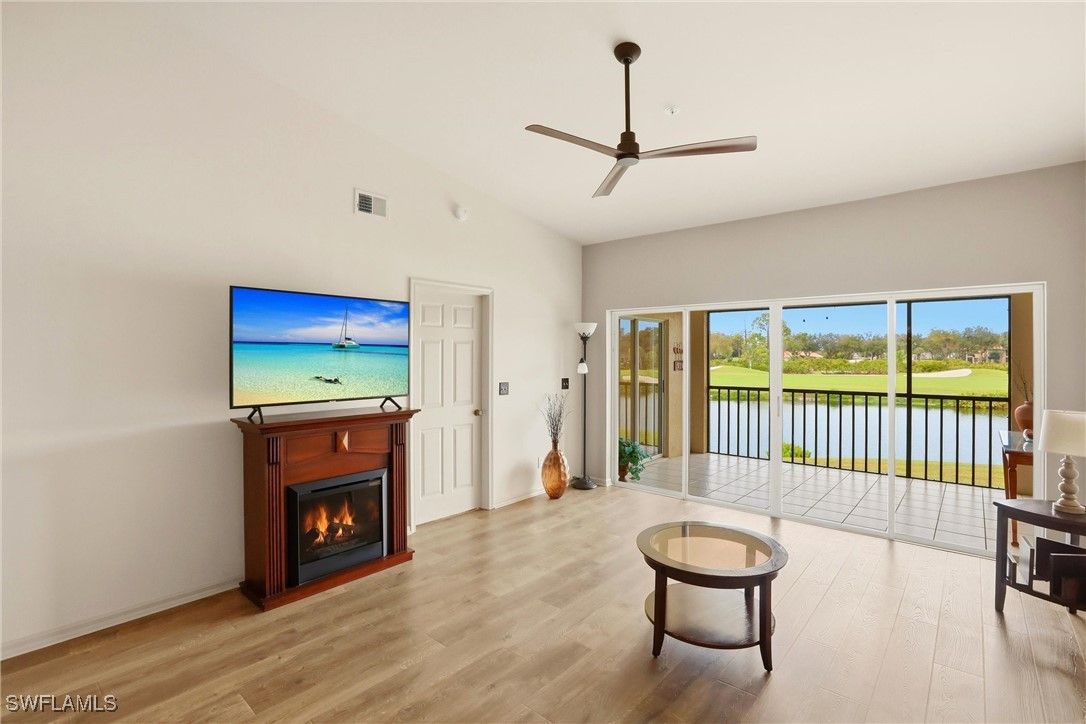 Welcome to your tropical paradise! This beautiful, light-filled second floor unit features an amazing view of both a peaceful lake and the golf course beyond. Lovingly maintained by long-term owners, this 2 bedroom + den, 2 bath condo is the ideal launching point for all your SW Florida adventures. The perfect combination of indoor and outdoor living, this property is only steps from the community pool and spa with a grilling area and room for outdoor entertaining. Located within the highly sought-after Pelican Landing community, residents have free access to the amazing 134 acre private beach, kayaking/canooing, fishing, bocce, 12 Har-Tru tennis courts, pickleball and work-out facility. 3 Golf courses are also available as are numerous social activities within the community. Centrally located off 41, this property has amazing access to retail, restaurants and entertainment options. Come find out why so many people love calling Pelican Landing home!