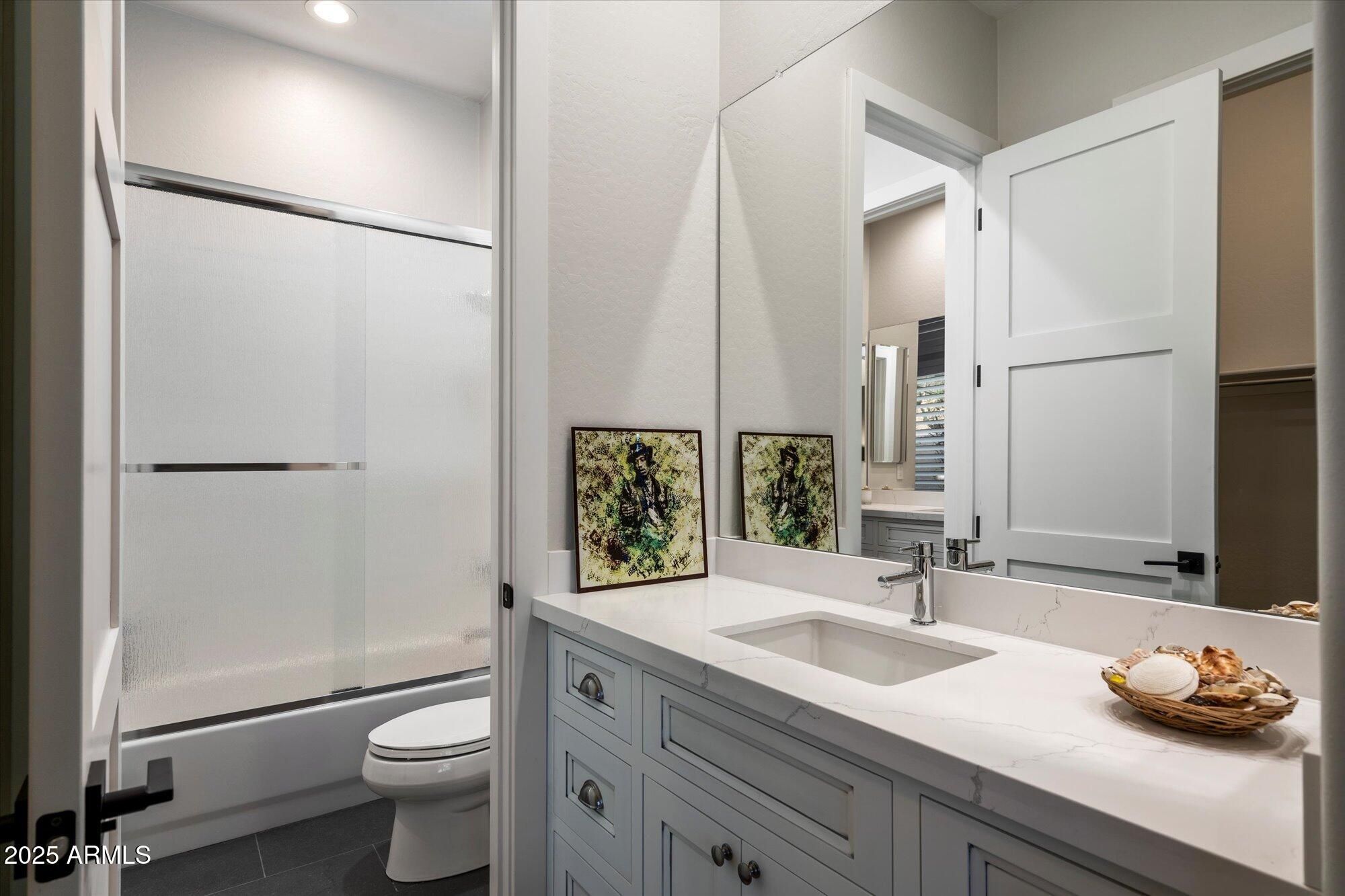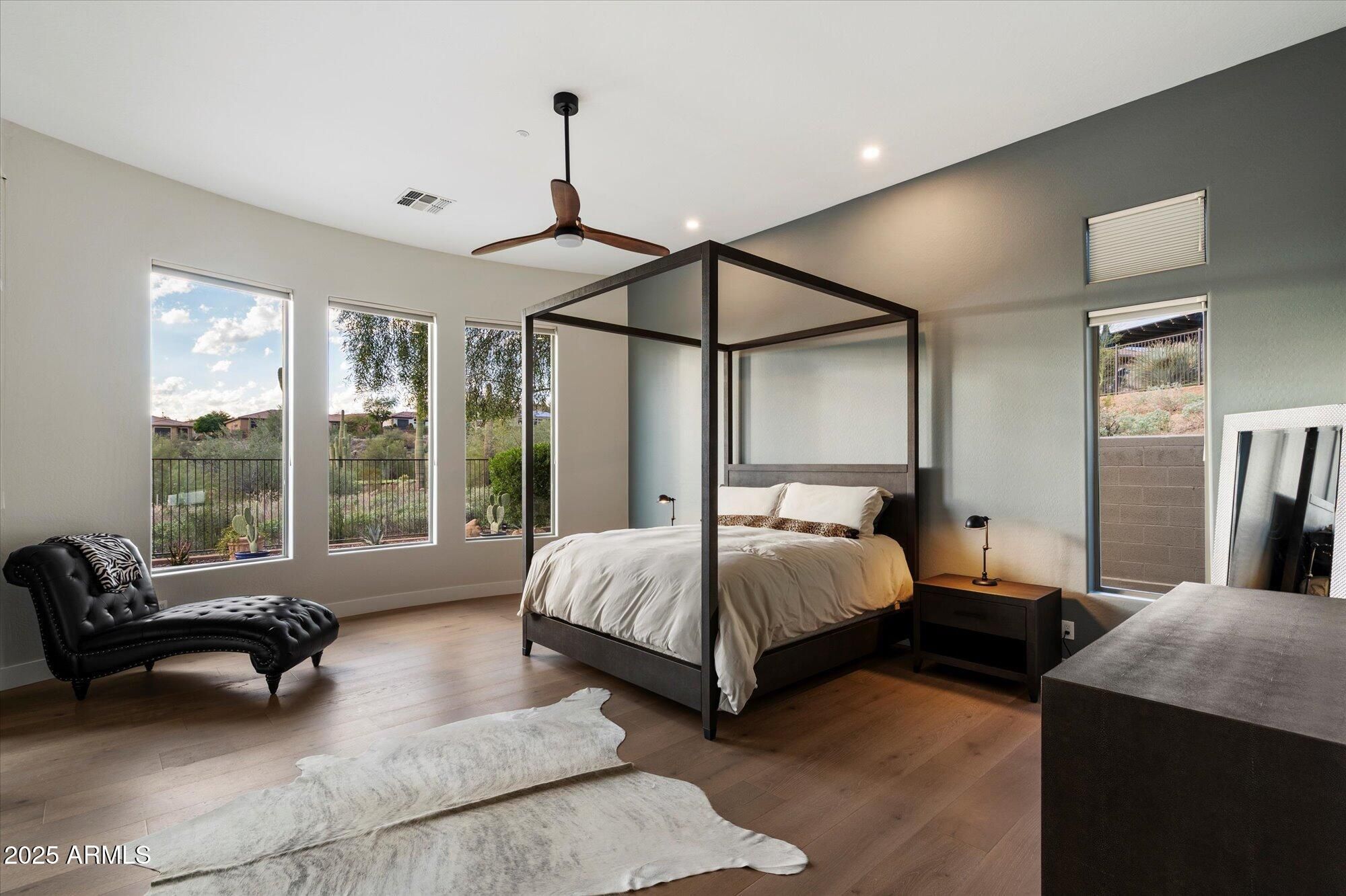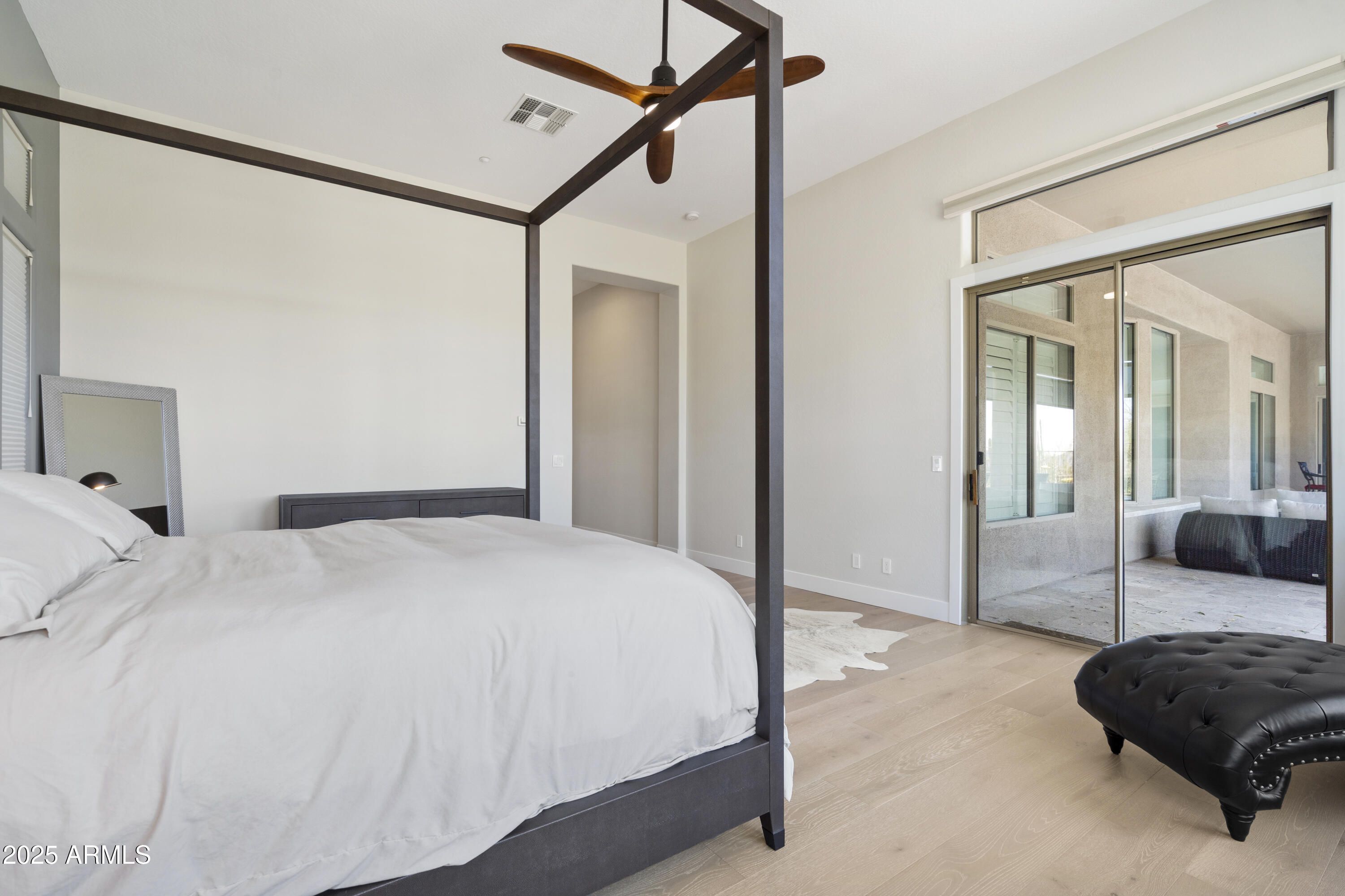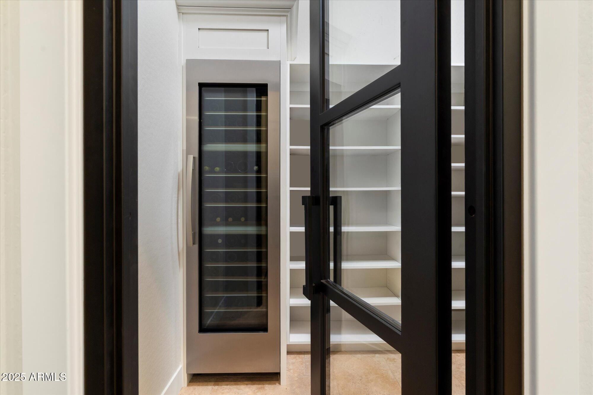Nestled within the prestigious gated community of Anthem Country Club, this reimagined Hampton model has been completely redesigned by a luxury custom home builder—seamlessly blending timeless elegance with modern sophistication. Showcasing a comprehensive, high-end renovation (itemized list available upon request), this single-level residence offers 4,016 sq. ft. of thoughtfully designed living space. A grand custom iron-and-glass entry door opens to expansive formal living and dining areas with 12-foot ceilings and large picture windows that frame serene backyard, pool with multiple water features and multicolored lighting, and sweeping mountain and golf course views. At the heart of the home lies a chef's dream kitchen, featuring bespoke custom cabinetry, granite and quartz countertops, professional-grade stainless steel appliances, three ovens, a six-burner gas range, built-in espresso machine, under-counter microwave, double-drawer dishwasher, and an oversized 6' x 7' island with seating for five and abundant storage below. Additional highlights include a commercial-grade side-by-side refrigerator and freezer, pull-out trash and recycle drawers, a walk-in pantry with custom iron-and-glass door, a Miele wine fridge that accommodates over 70 bottles, and elegant custom shelving that balances function and flair. Separate coat and utility closets add extra convenience. The adjoining open-concept family room offers a warm, inviting atmosphere with seamless access to the outdoor living area, perfect for both relaxing and entertaining. The primary suite serves as a true private retreat, encompassing approximately 900 sq. ft. and featuring a sitting area with pool, mountain, and golf course views, direct patio access, and a spa-inspired ensuite with dual vanities and backlit mirrors, a freestanding soaking tub, oversized tile-and-glass shower, and an impressive 9' x 19' custom walk-in closet system. Additional bedrooms are thoughtfully placed for privacy, each with an ensuite or nearby bath, ideal for guests or family. Step outside to enjoy a resort-style backyard designed for year-round enjoyment. The covered patio includes custom roll-up sun shades, while the sparkling pool and spa are surrounded by low-maintenance desert landscaping and view fencing that capture stunning golf course and Daisy Mountain vistas. A four-car garage with insulated doors provides generous storage and convenience. Select designer furnishings, curated to complement the homes' aesthetic, are included with a full price offer-providing a truly Turnkey experience! This home perfectly embodies Anthem's resort lifestyle, graceful, functional, and ideally suited for both quiet living and elegant entertaining. You won't find a more complete or highly upgraded home within the community.