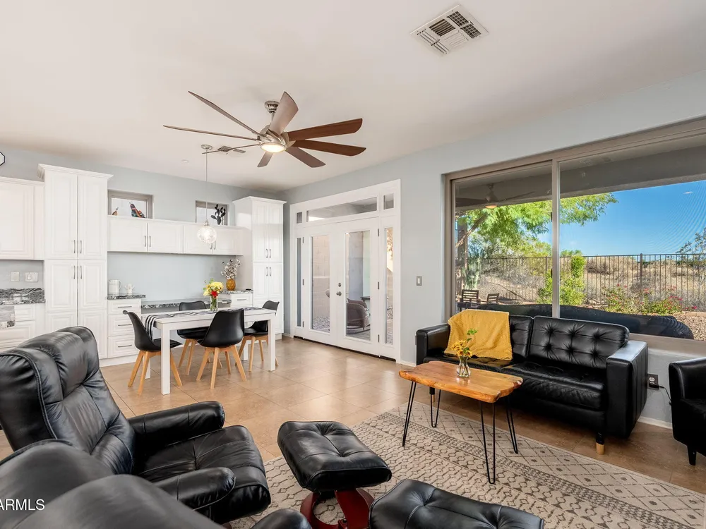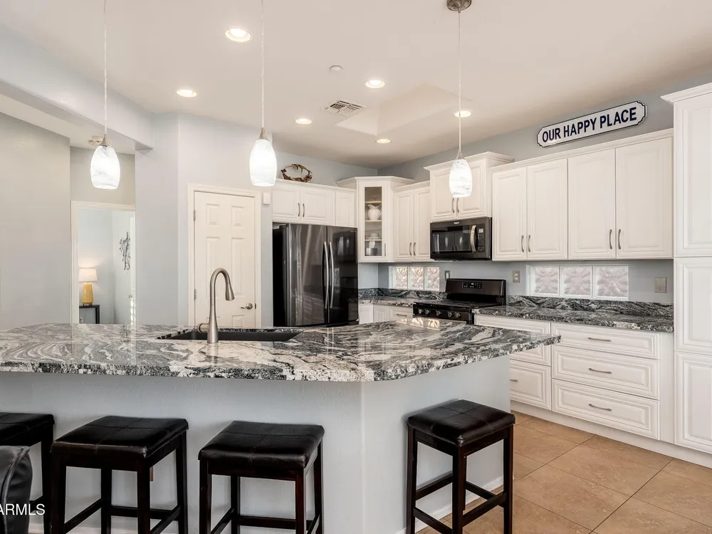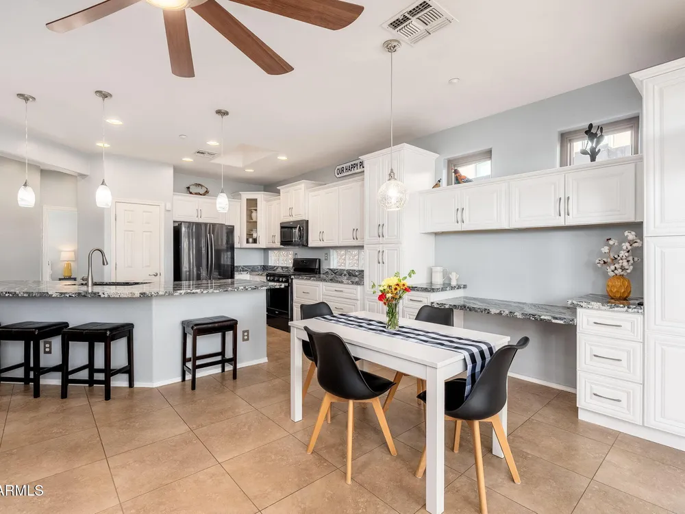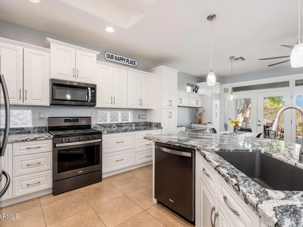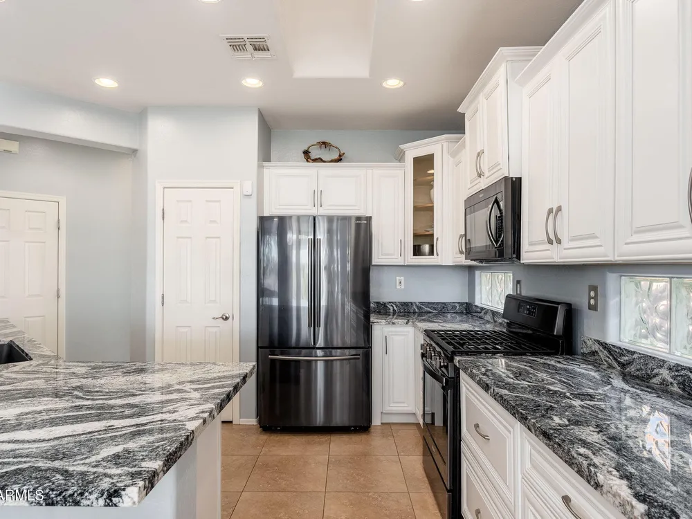 Impeccably maintained, highly upgraded GEM in guard gated Anthem Country Club! The heart of the home is the open chef's kitchen, featuring staggered-height, soft-close cabinetry, Viscount White granite countertops and new stainless-steel appliances. There is a new 2023 AC, new high-quality Renewal by Anderson windows, and a new 2024 roof totaling $50K in value, ensuring comfort, efficiency and peace of mind for the lucky new buyer. Outside, the shaded, private patio is a wonderful place to relax or entertain. Experience luxury living with two champion golf courses, tennis, pickle ball, two heated pools, a state of the art fitness center, casual & fine dining! Perfectly combining style, function and turnkey convenience, this home offers the complete package for today's discerning buyer!