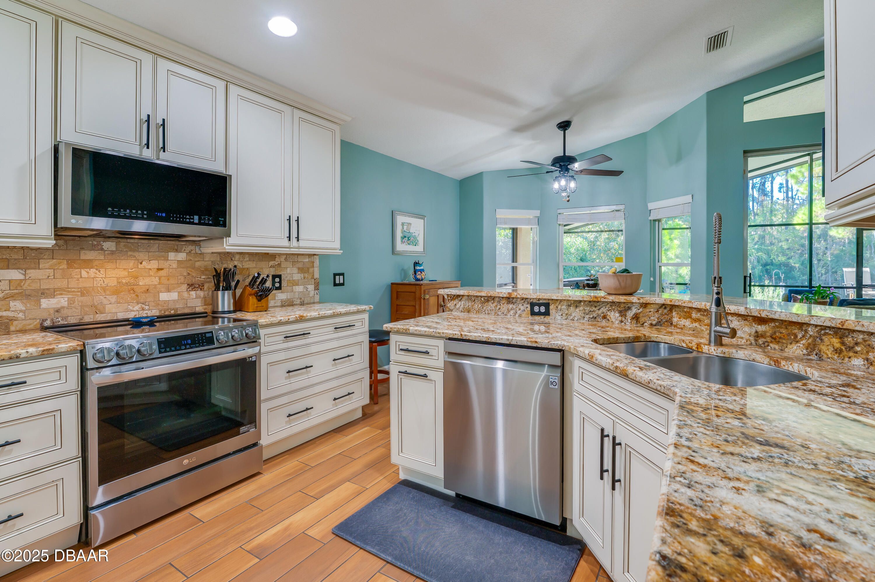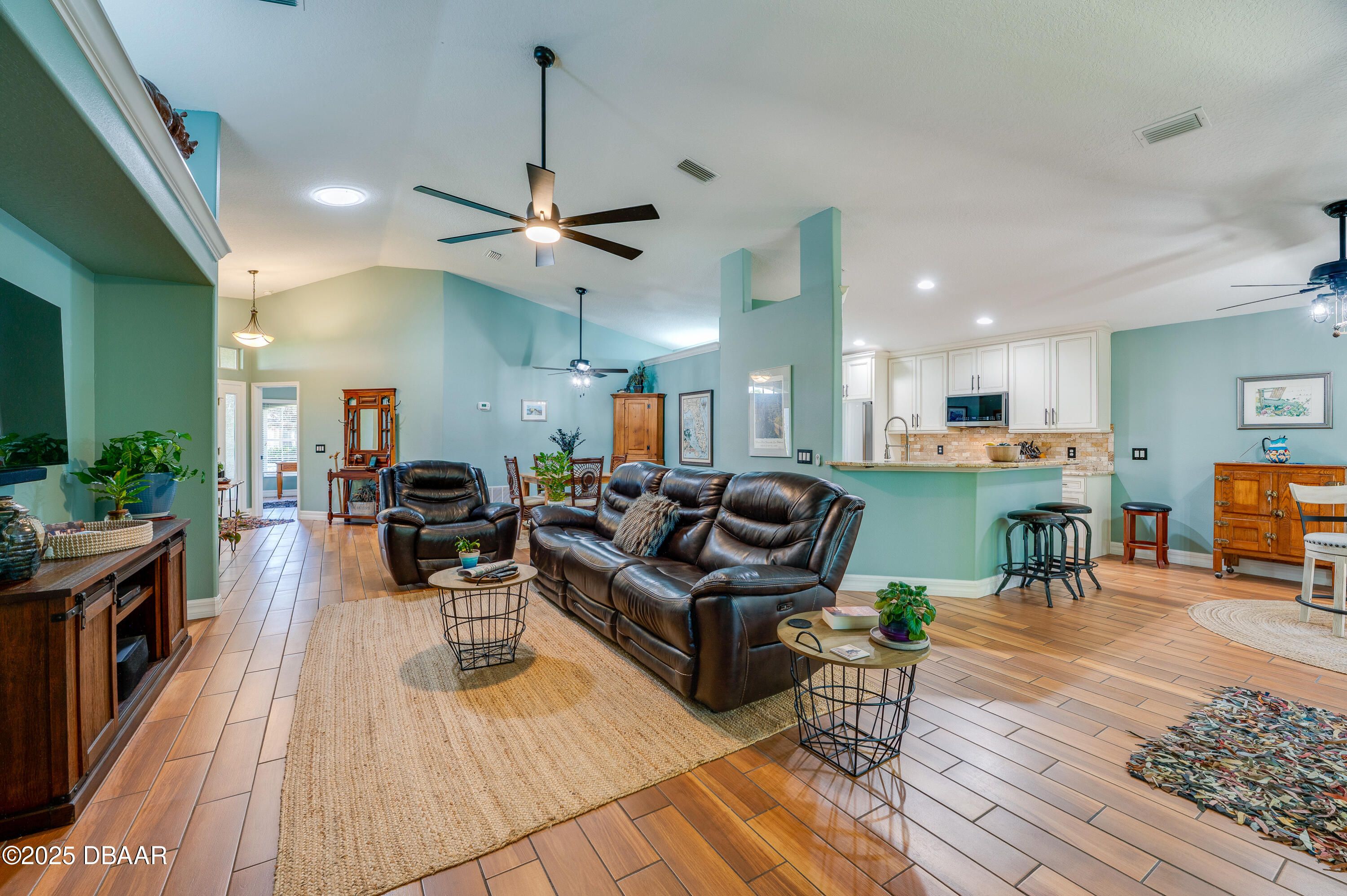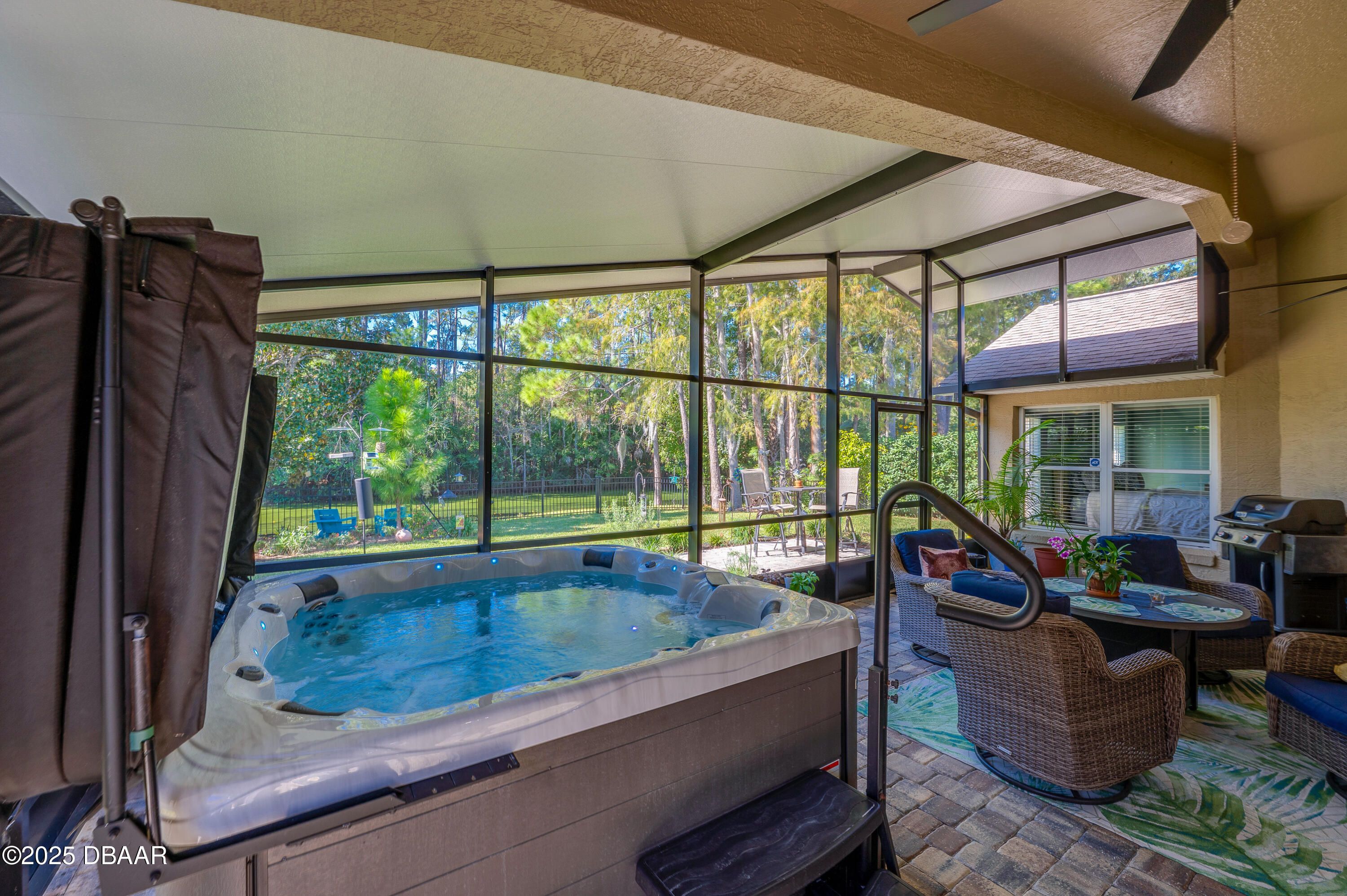 This beautifully updated 4-bedroom, 2-bathroom home in the sought-after gated community of Pelican Bay offers spacious living, thoughtful upgrades, and serene outdoor spaces all just minutes from coastal attractions and golf. No flooding. With over 1,800 square feet of living space, the open-concept layout features vaulted ceilings, wood-look tile flooring, and a sun tunnel providing abundant natural light throughout the main living areas. The remodeled kitchen showcases granite countertops, cream-toned cabinetry, and stainless steel appliances, flowing seamlessly into the breakfast nook with bay-style windows and tranquil backyard views. The private primary suite includes plush carpet, vaulted ceilings, and a spa-inspired remodeled bath with granite double-sink vanity, soaking tub, and walk-in glass shower. Additional bedrooms offer flexible space for guests, work-from-home setups, or hobbies...Continued... The huge screened patio features an insulated roof, paver flooring, a vaulted ceiling, ceiling fans and a hard-wired Master Spa hot tub, creating a year-round haven for relaxation. Step outside to enjoy the spacious fenced backyard backing to a peaceful canal, enhanced by lush landscaping, and mature trees, Extensive upgrades include a new roof in 2022, fresh interior and exterior paint, new carpet in the bedrooms, new hurricane shutters, updated landscaping, solar attic fan, a french drain, epoxy-finished garage with overhead storage, and a Ring doorbell. Pelican Bay residents enjoy access to a community pool, clubhouse, and optional golf membership all within a secure, beautifully maintained neighborhood close to major interstates, Daytona International Speedway, Embry-Riddle Aeronautical University, Tanger Outlets, and the Atlantic coast. All information recorded in the MLS is intended to be accurate but cannot be guaranteed.
